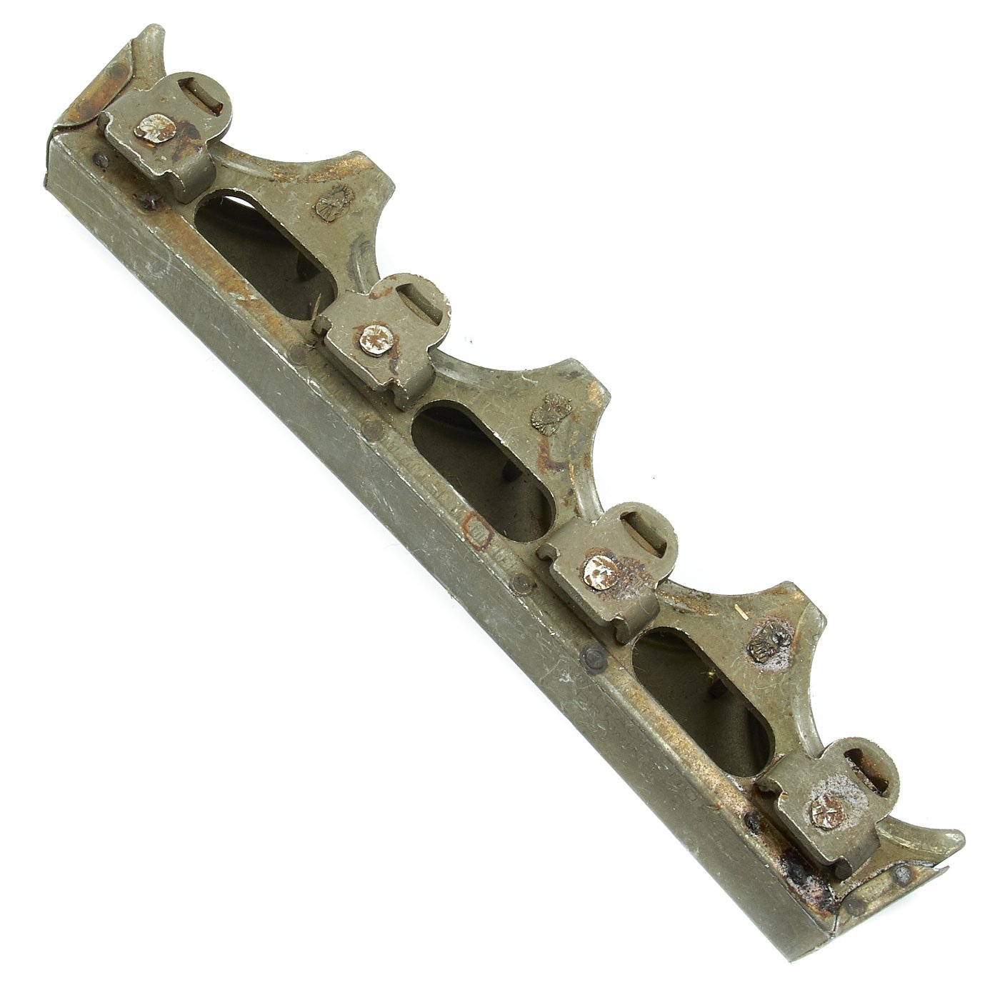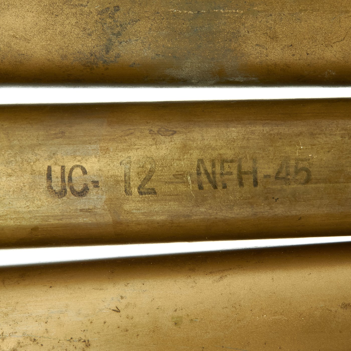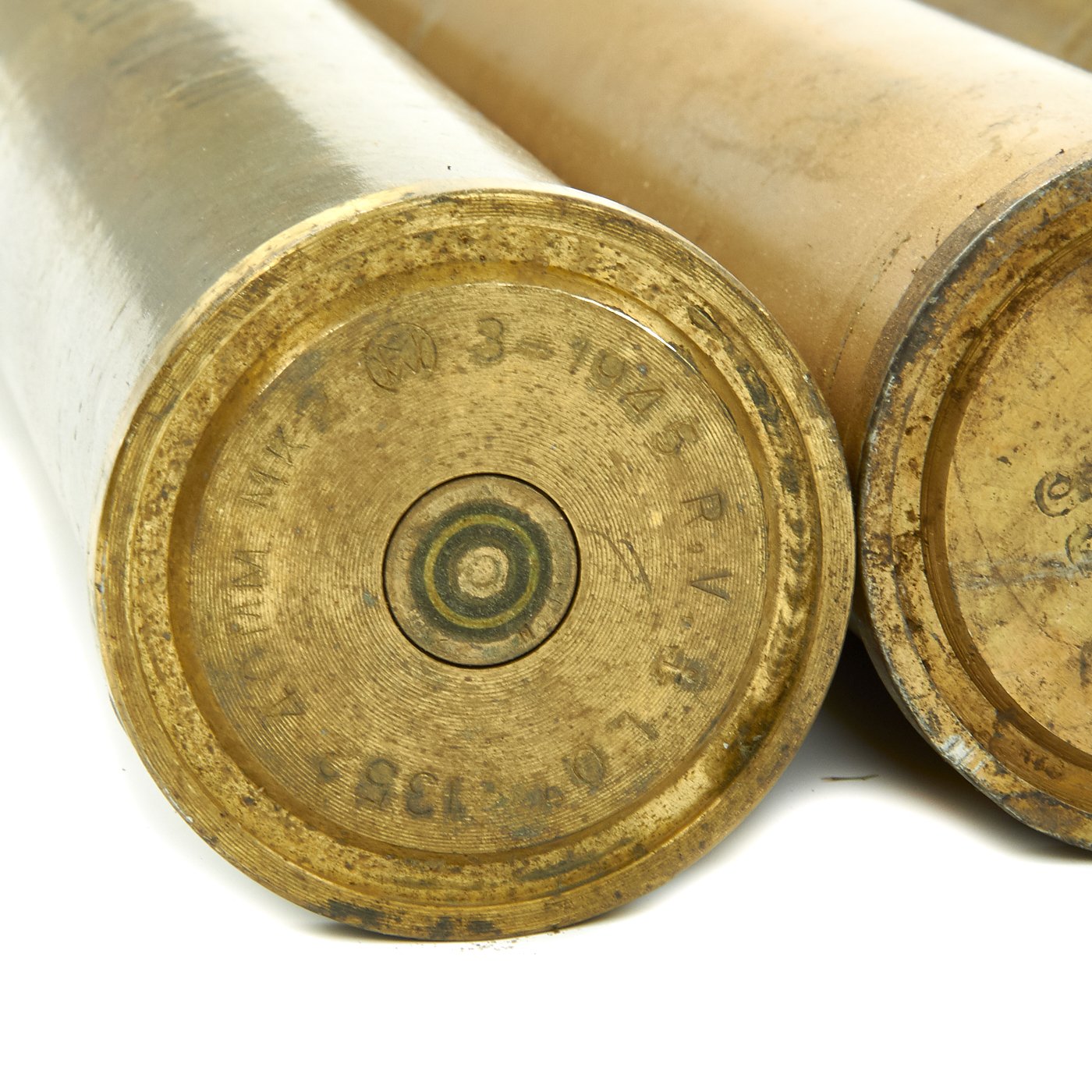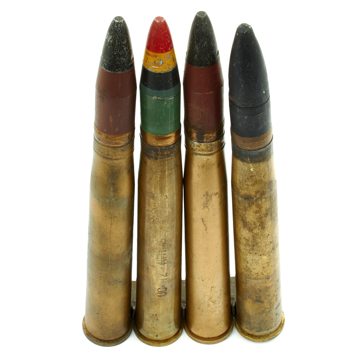 These are genuine World War Two dated 40mm Bofors gun rounds in a clip. Each round bears a "45" (1945) date and are offered in very good condition.