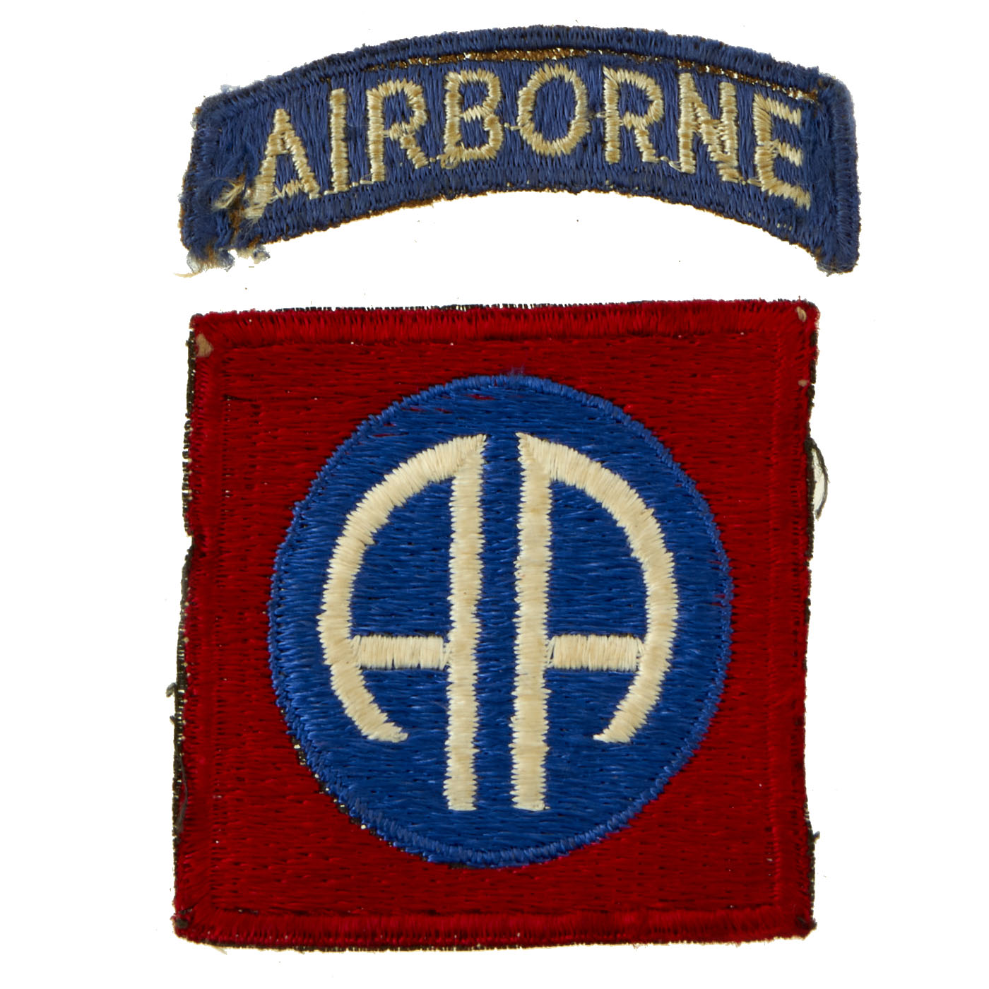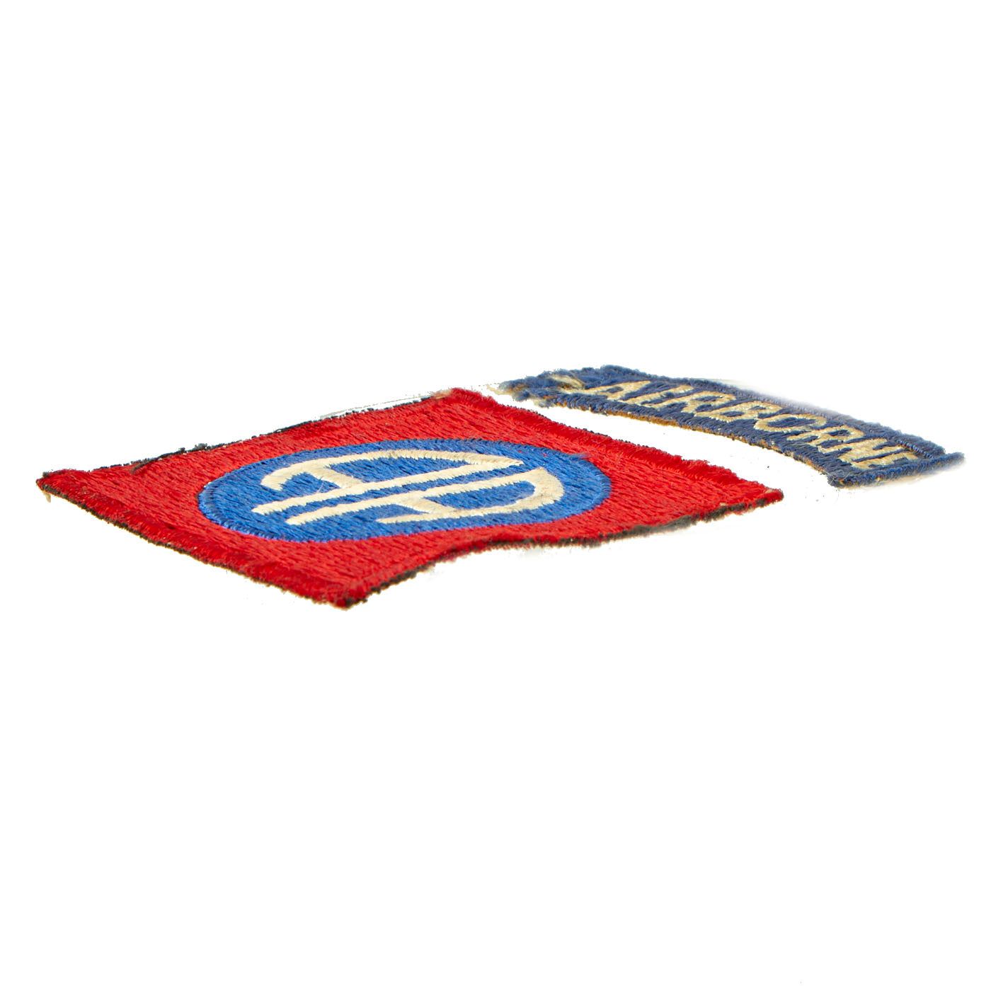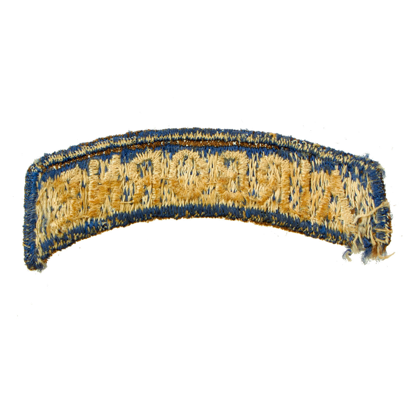 This shoulder sleeve insignia with separate rocker appears to have been removed from a uniform, more than likely when the soldier left the service after the war. The items are in really good condition but there is some age toning present and minor fraying.