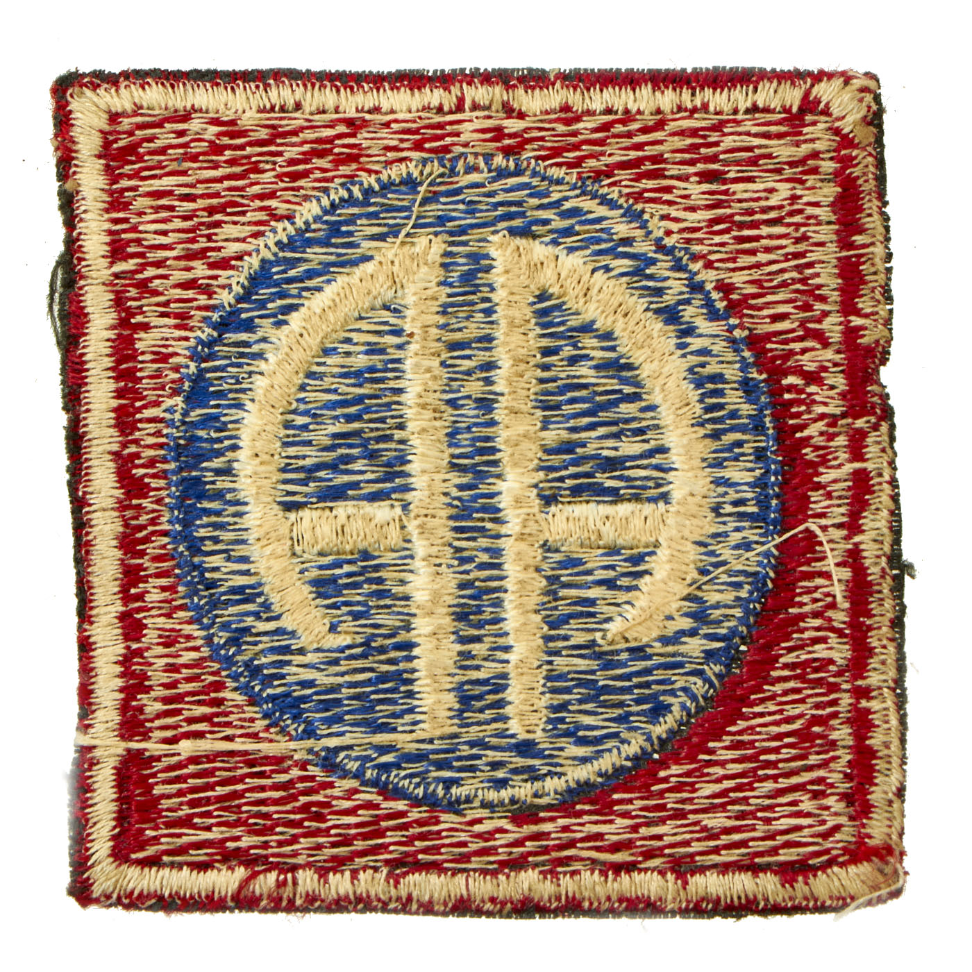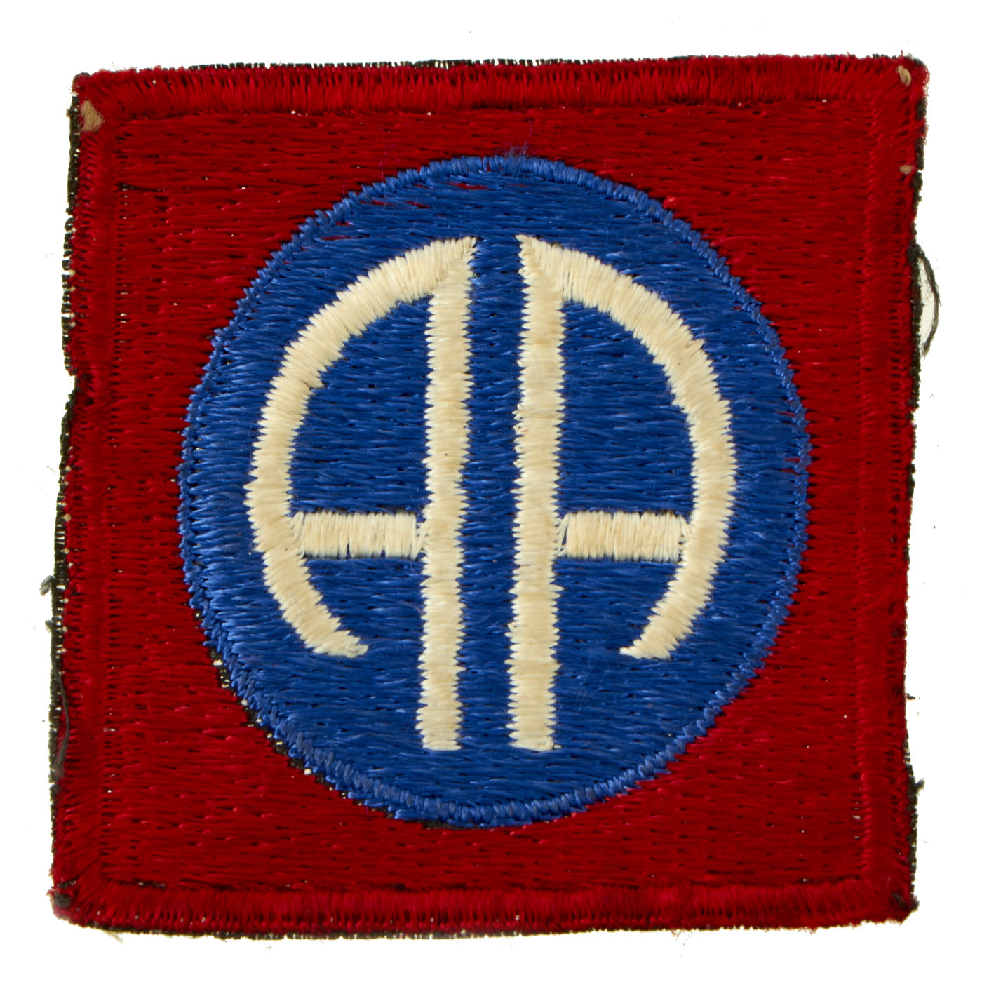 Thousands of people submitted names, but eventually, Mrs. Vivienne Goodwyn’s, “The All American Division” was selected on April 6, 1918. Vivienne felt like the Soldiers of the 82nd represented the best attributes and values of America. To pay tribute to their nickname, 82nd Soldiers began sewing the blue circle that was in the middle of their red square shoulder patch, with the double “AA” for “All American.” Originally, some thought the “AA” on the patch stood for “All Aboard”. When the patch was first authorized, full gold patches were used for officers. Eventually the patch was standardized with the red, white and blue that you can see on this example.