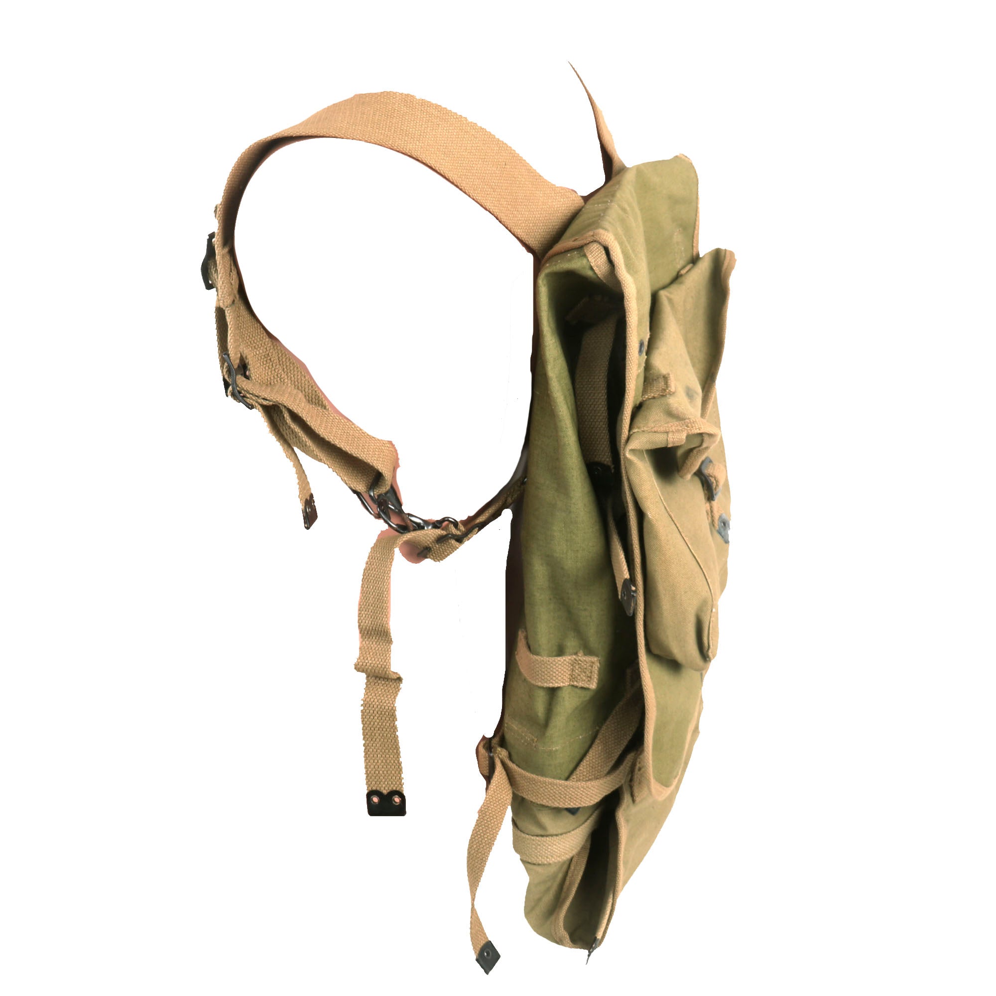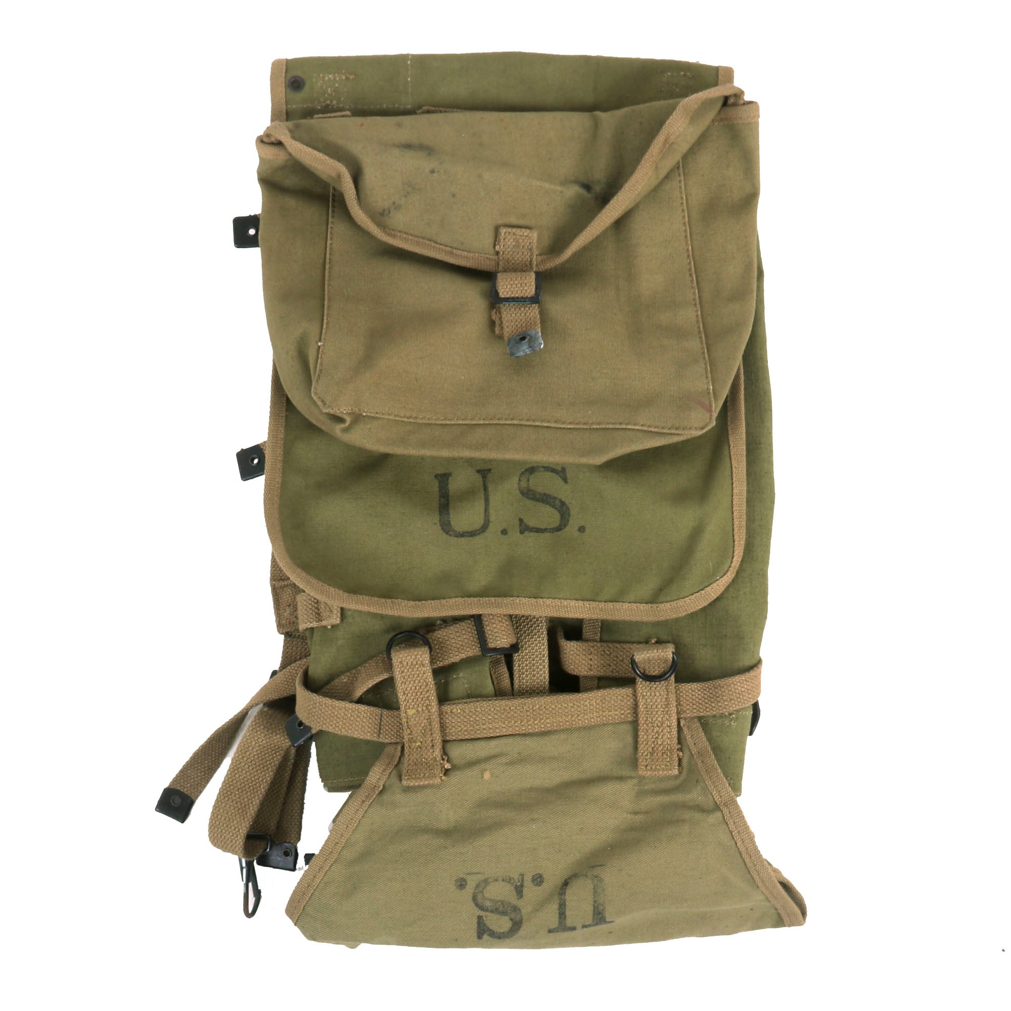 Original Item. Only One Available. This is an excellent example of a U.S. WWII British-made haversack with its original meat can pouch and pack tail. This is one of if not the best examples we have ever offered.