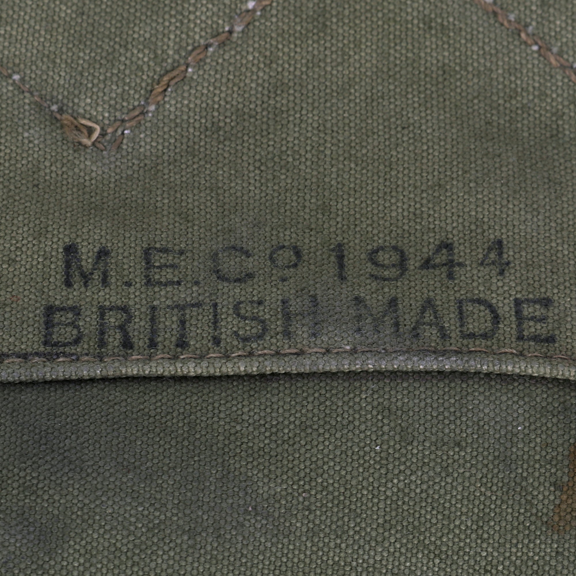Mills Equipment Company was the British Arm of the American Mills Company, which had introduced Cotton Webbing based equipment for the U.S. Army. In 1908 they had worked with the British Army to introduce the 1908 Pattern equipment, and worked with the British Military ever since. During WWII, they also started making equipment for U.S. forces, who were based in Britain prior to the D-Day Invasion.