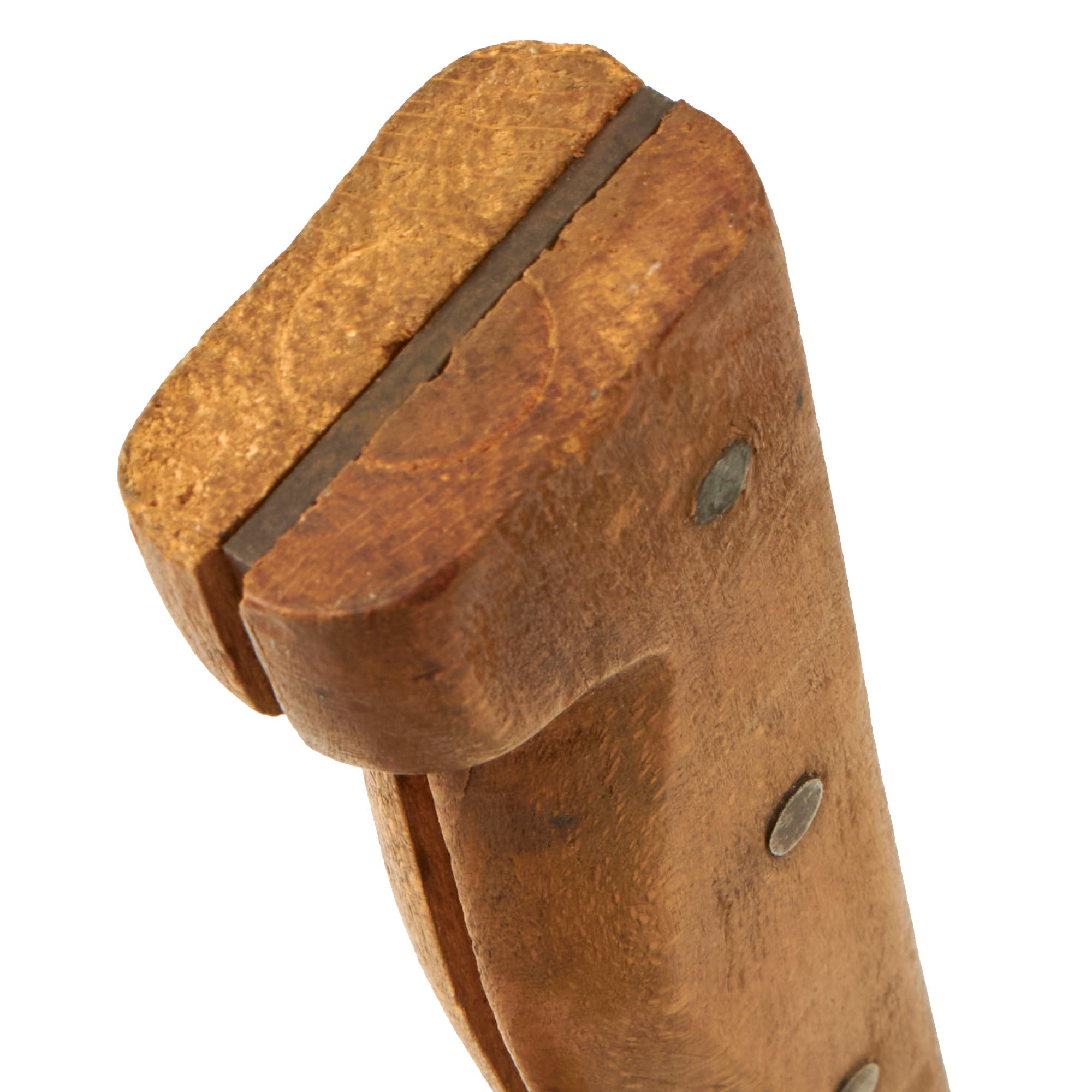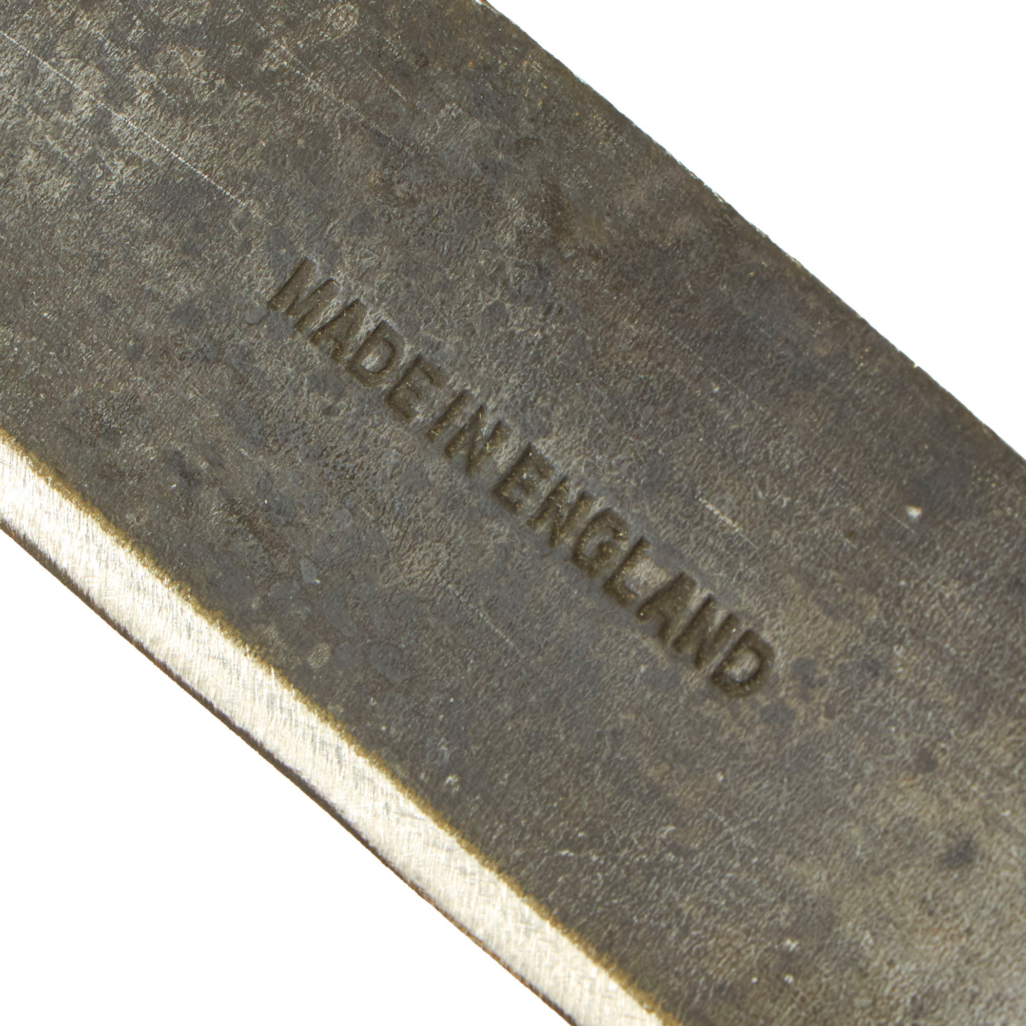 The machete is in fair shape and has been sharpened a few times. It is marked MADE IN ENGLAND and has a 2-piece wooden handle which is in good shape overall. The sheath is in amazing condition and is marked