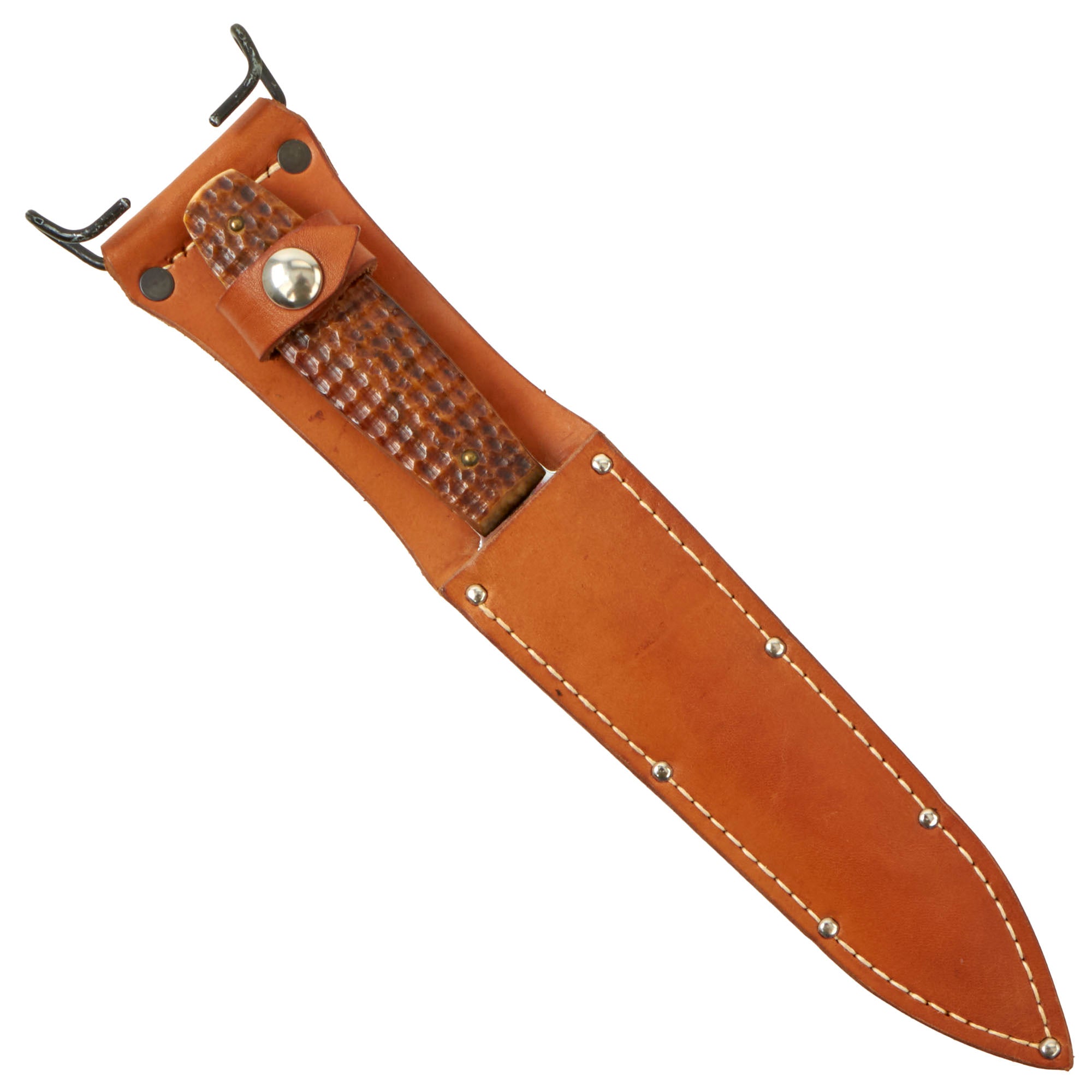 Overall this is a great chance to own wonderful condition rare variant of the Case "pig sticker" Knife, complete with an original correct scabbard. This would be a fantastic way to fill out a World War II US military knives. Ready to display!