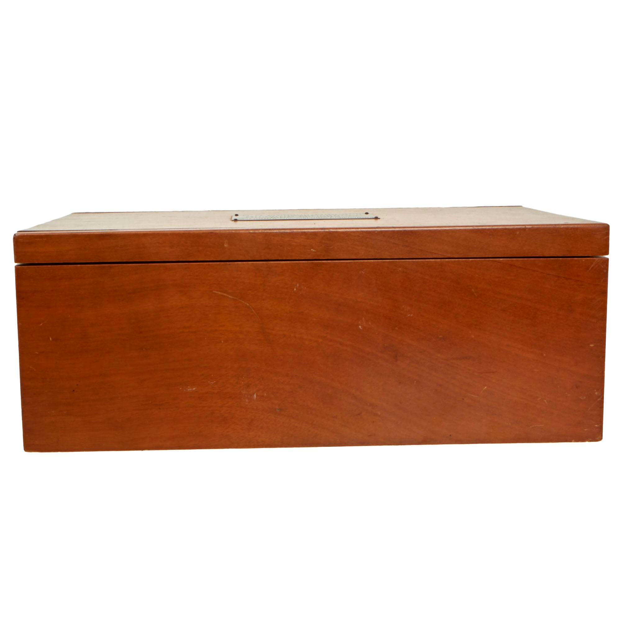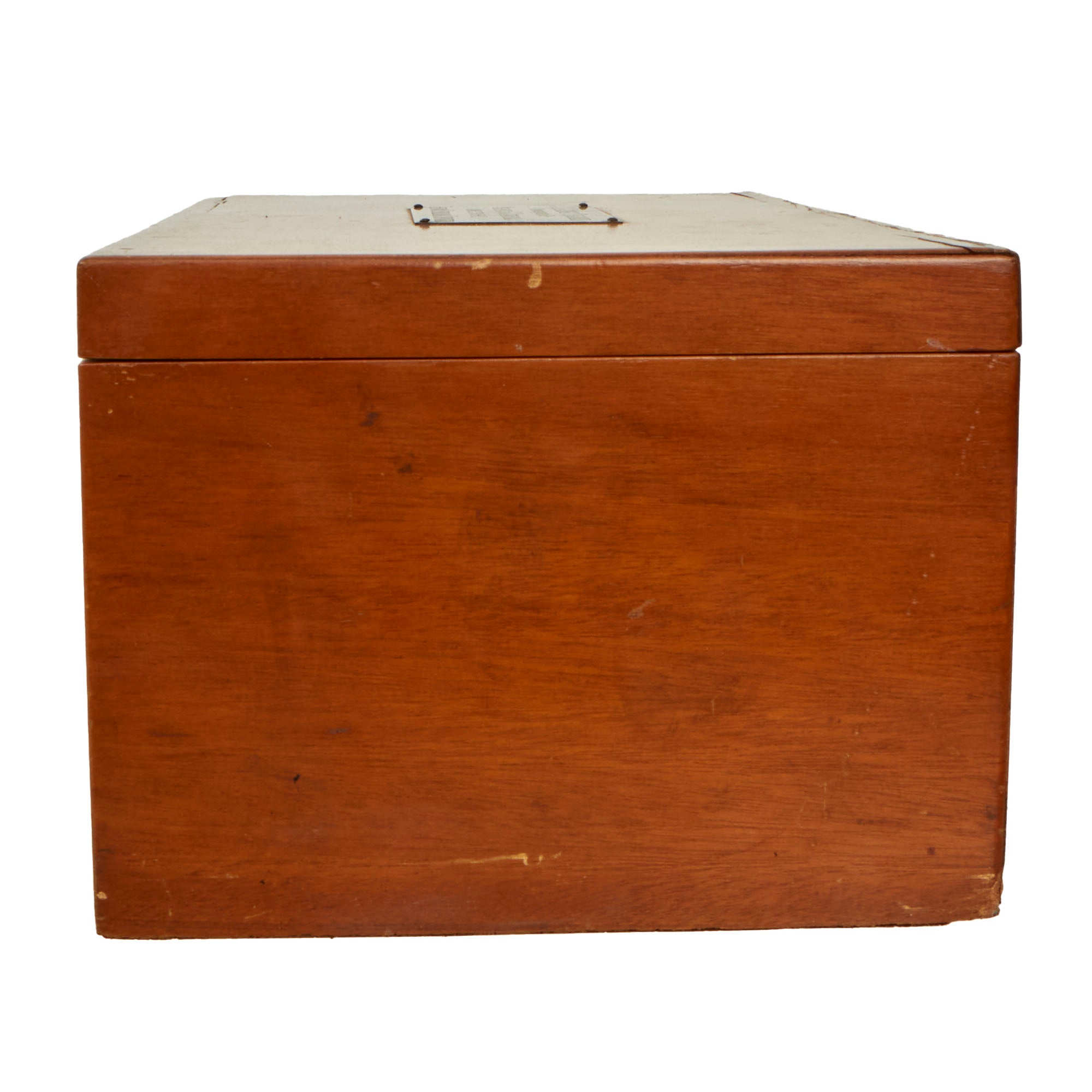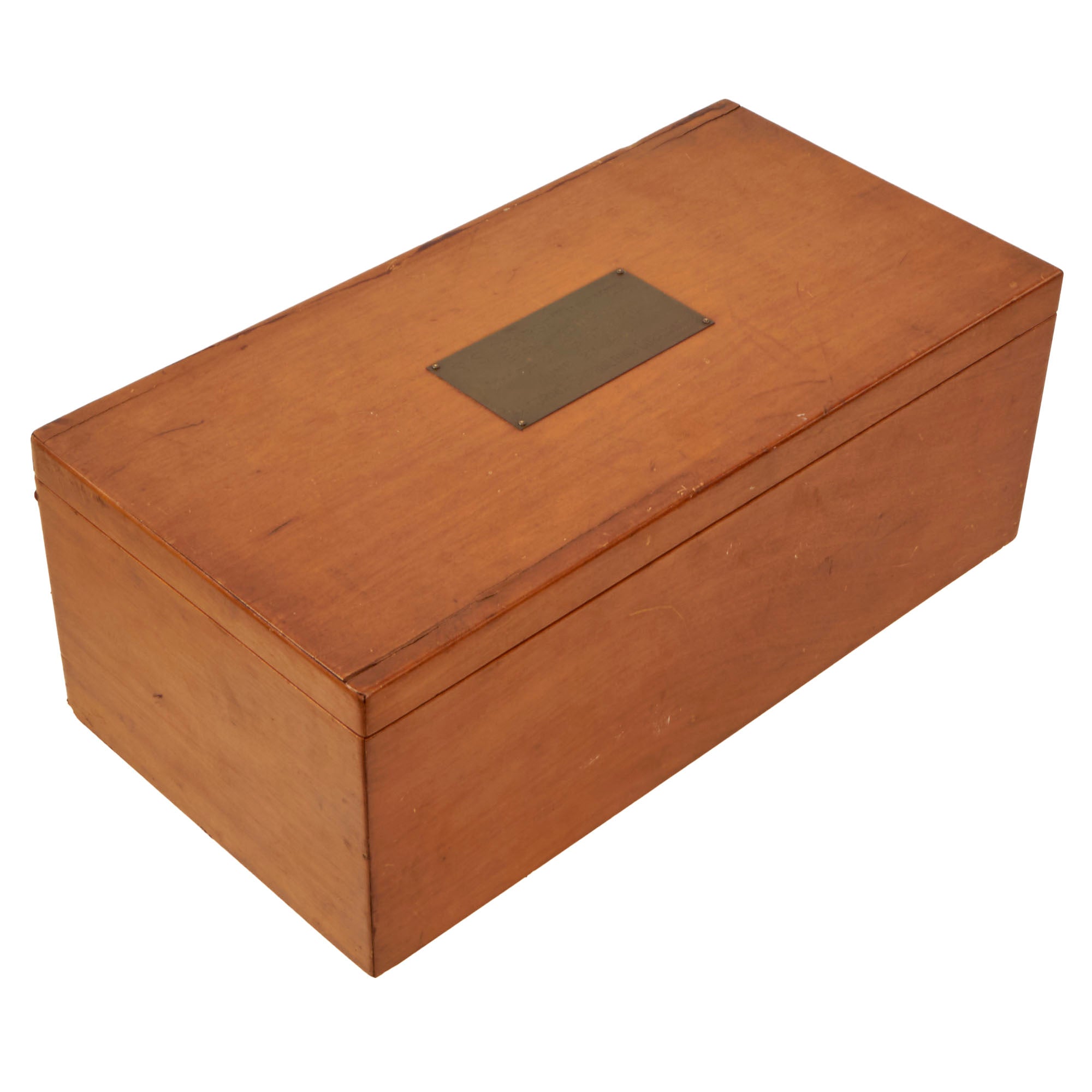 The bottle is contained within a case measuring 14¼ x 7¼ x 5½”, with a plaque affixed to the top of the lid reading: