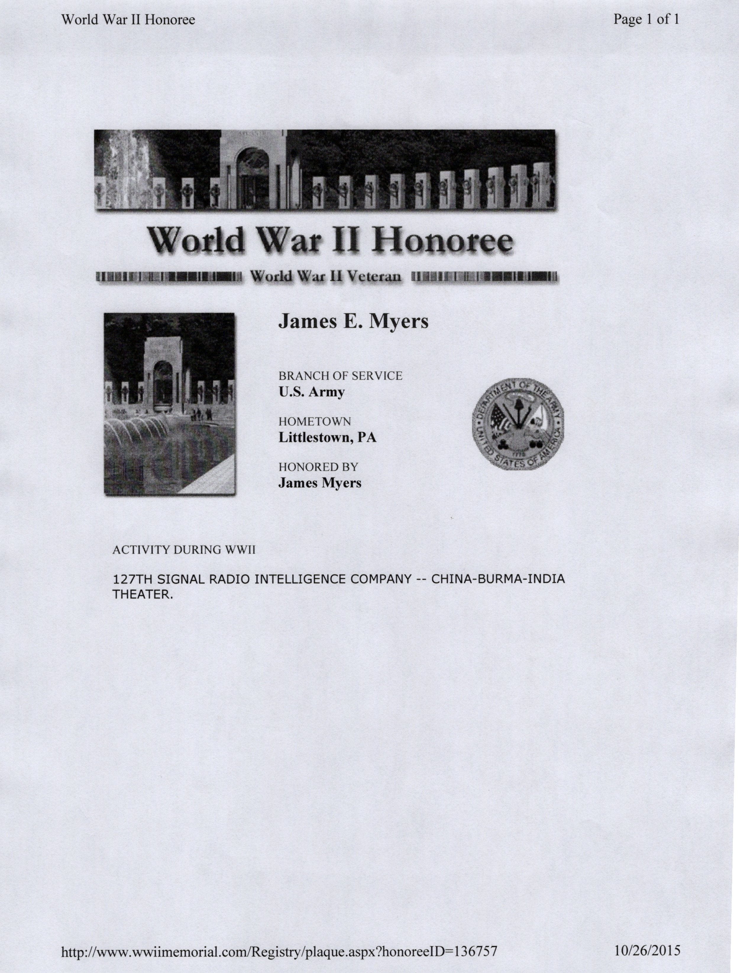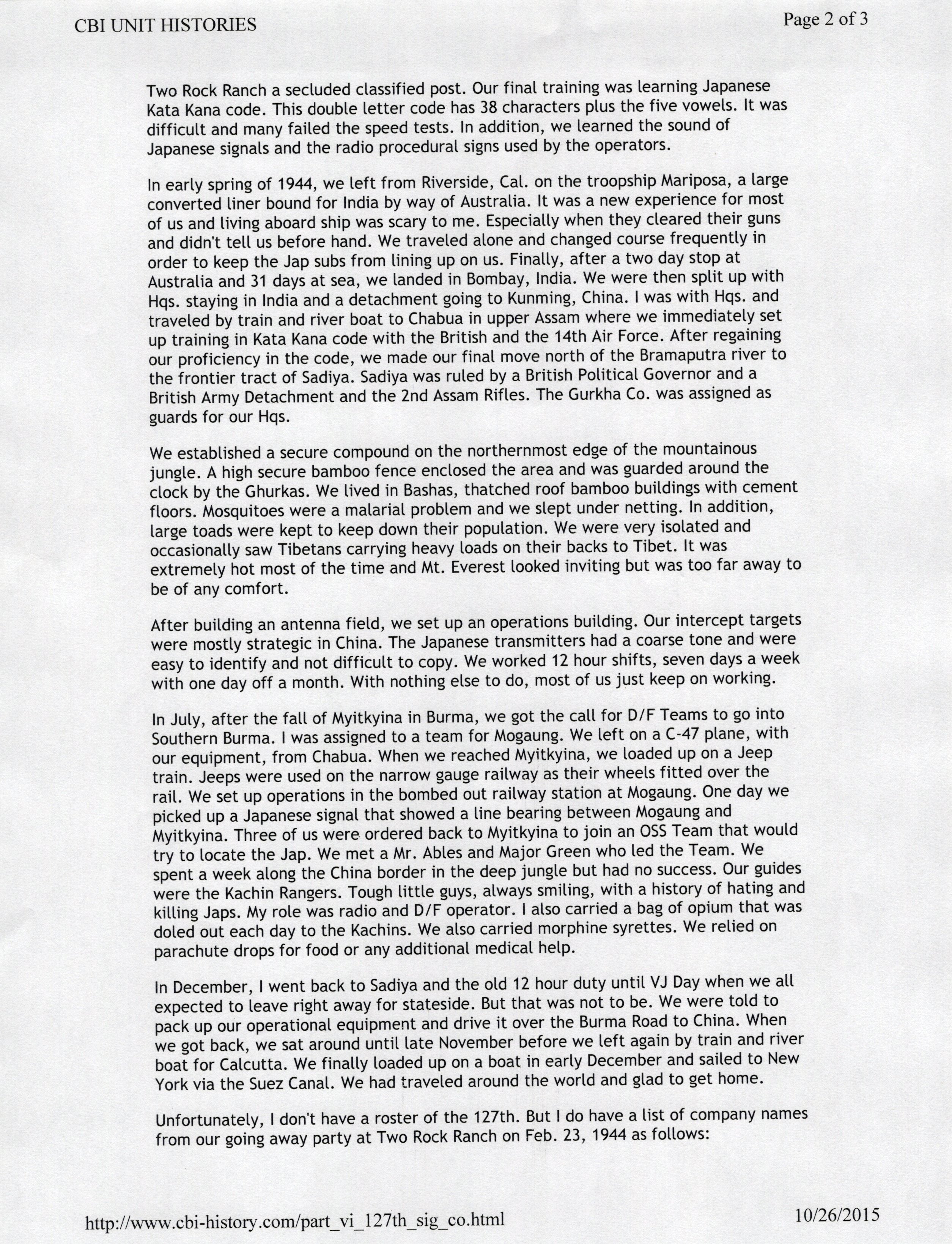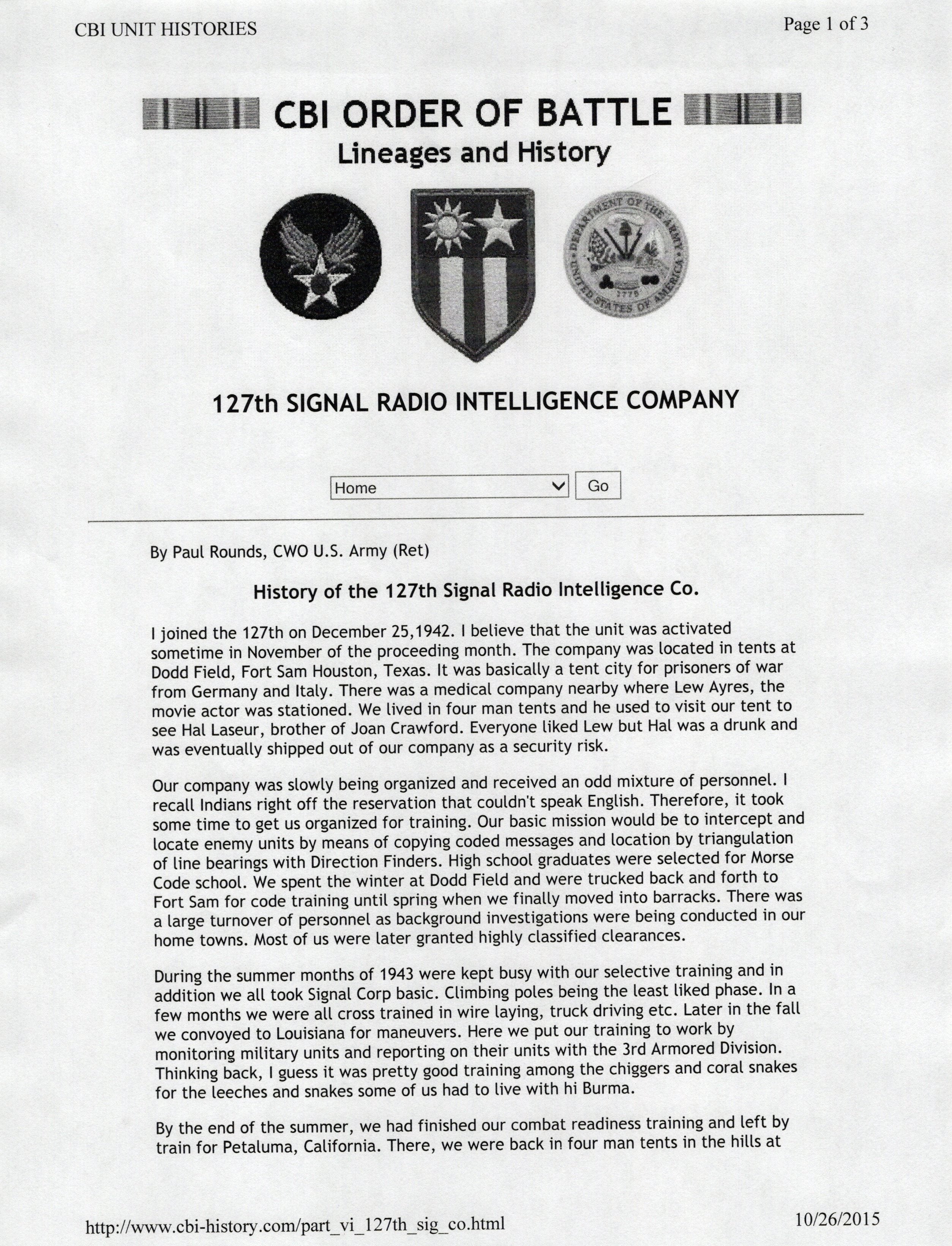 Original Items. One-of-a-Kind. This is a tremendous CBI (China, Burma, India) grouping named to James E. Meyers, Serial #33563967, of the 127th Signal Radio Intelligence Company. The grouping consists of his theater-made identification bracelet, his CBI patch, his multi-piece American flag leather patch, and his China-Burma-India leather blood chit.