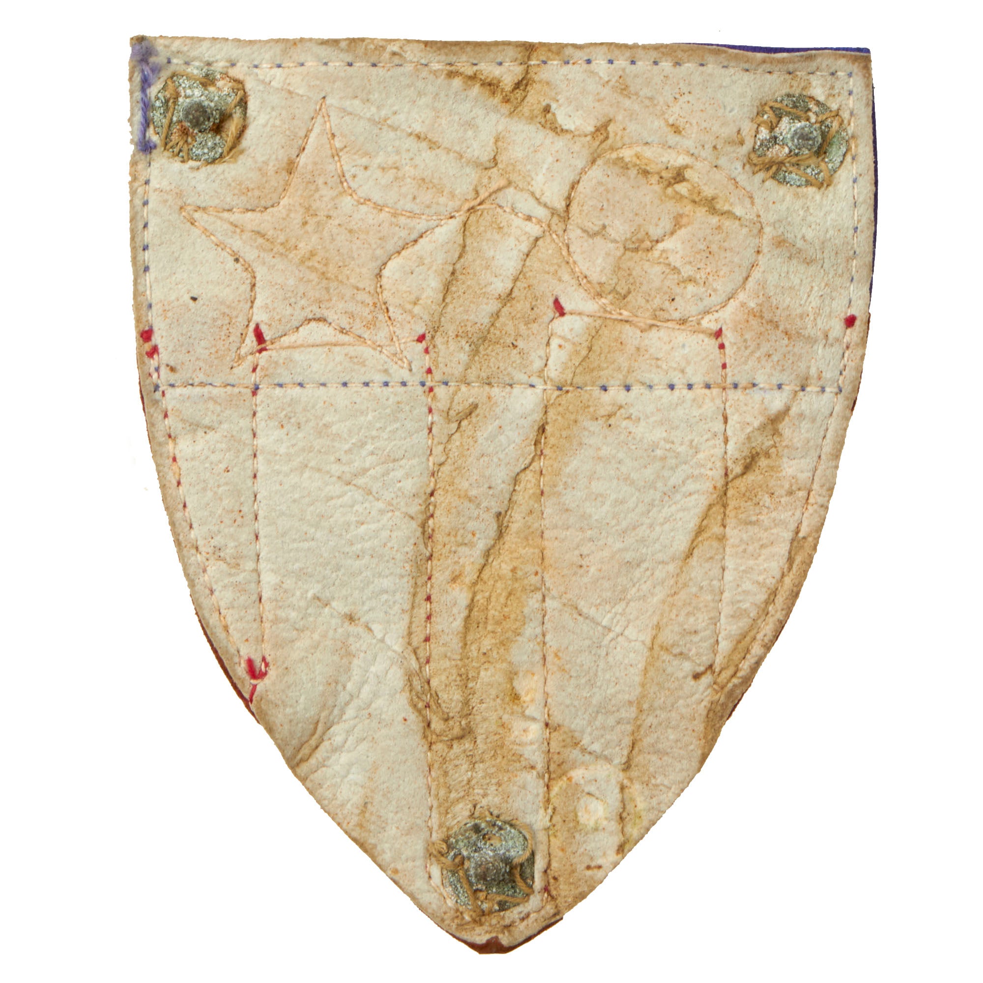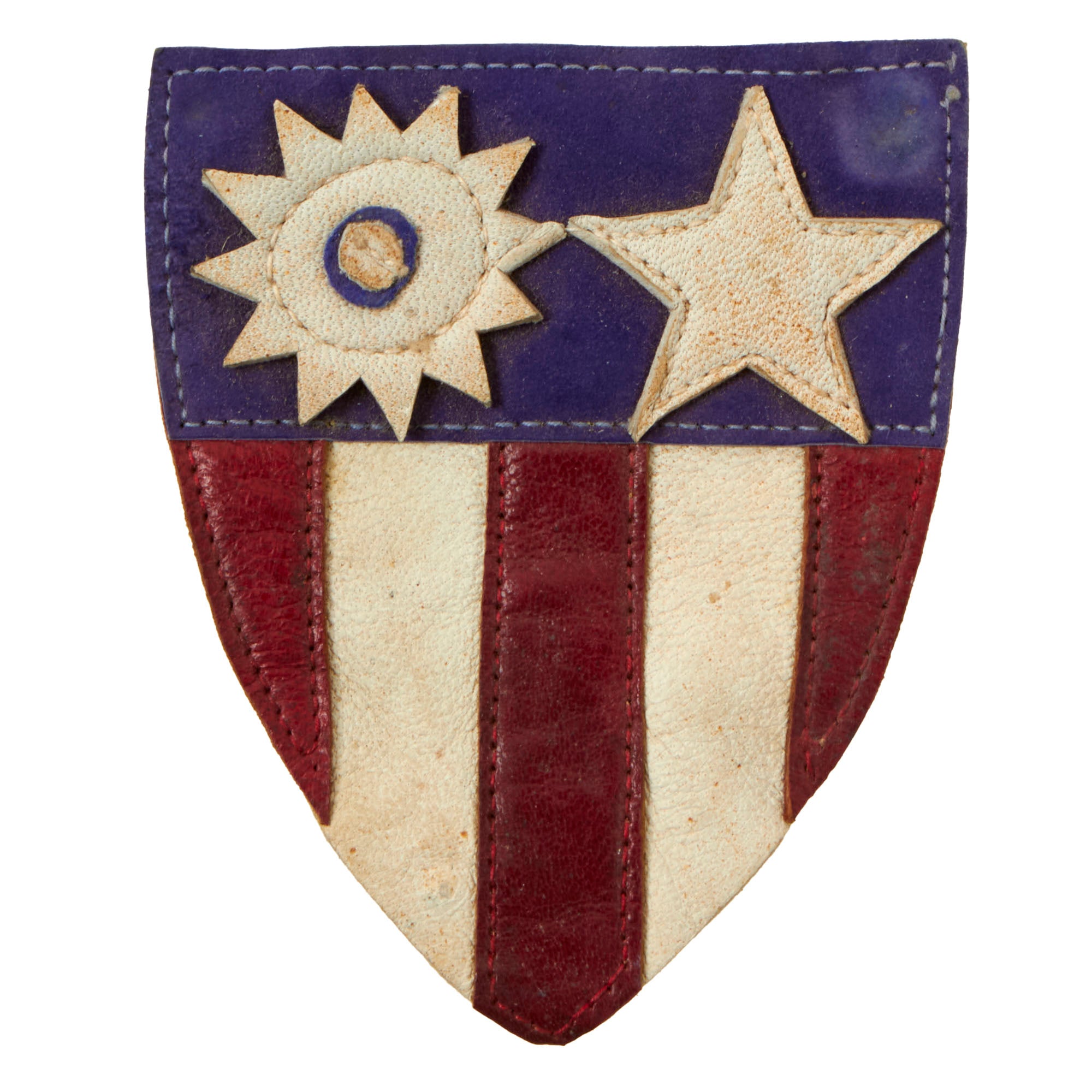 - Army Air Forces China-Burma-India Theater Leather Blood Chit in great shape, measures 9½ x 7” with great Chinese characters. A very scarce piece.