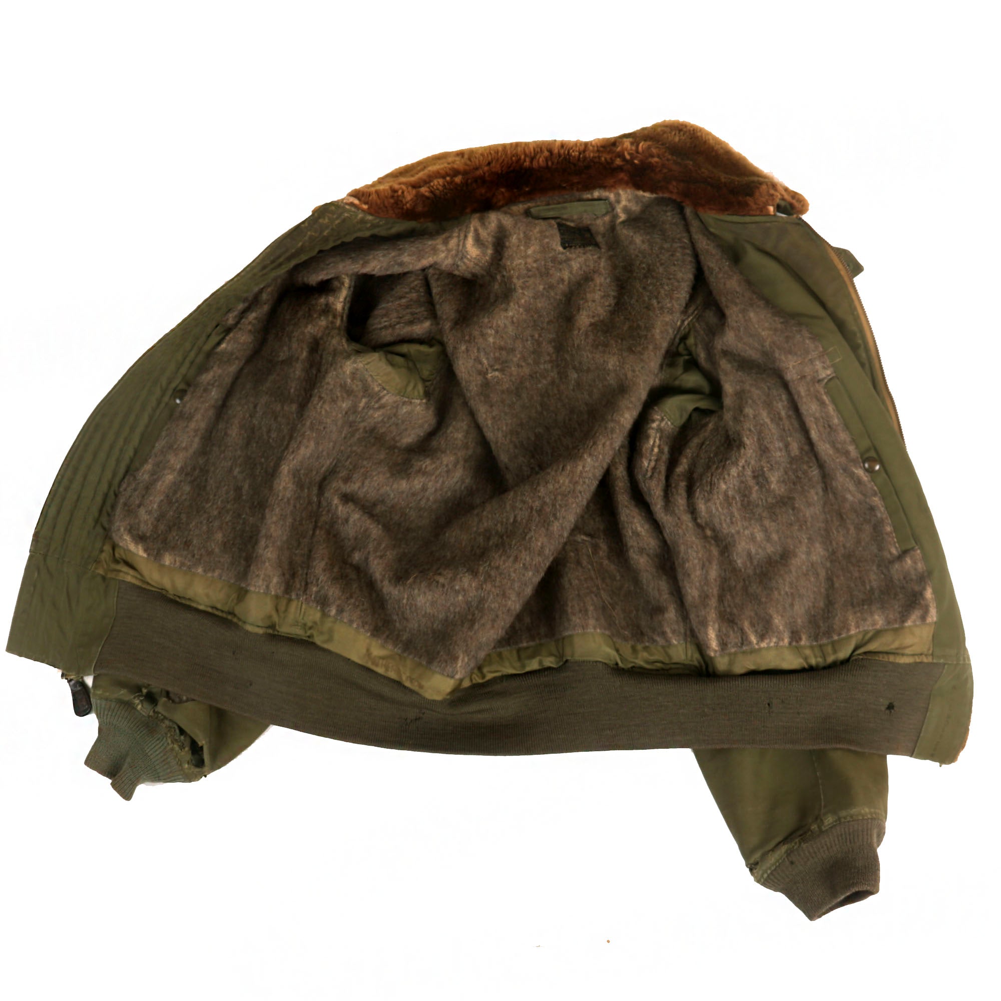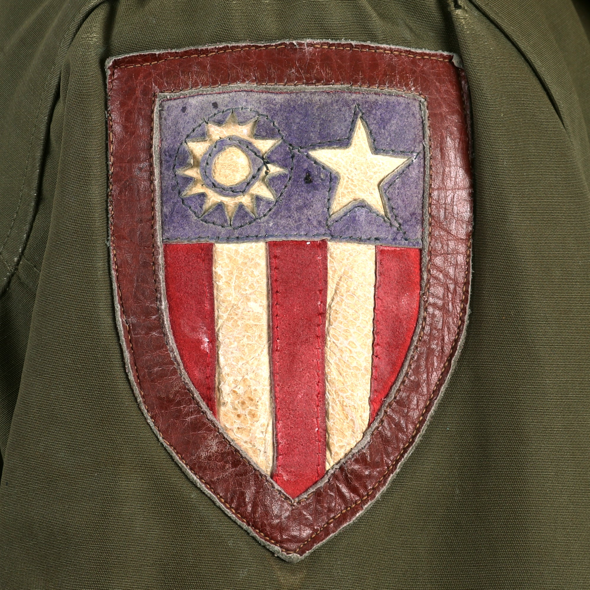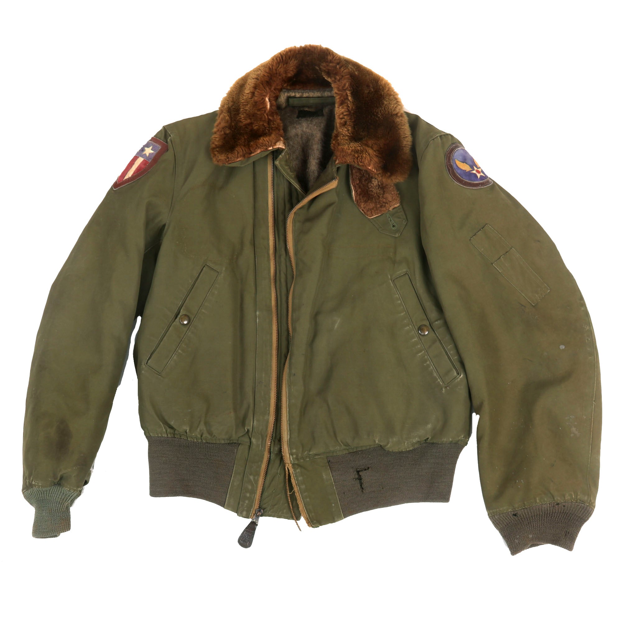 - CBI Patched B-15 Intermediate Flight Jacket: The U. S. Army Air Force Type B-15 Intermediate Flight Jacket was developed from lessons learned in field use of the highly popular B-10 Flight Jacket of 1943. As early as 1942, the Materiel Division of the US Army Air Forces was seeking an alternative material to sheepskin for producing flying suits, and by October of that same year development had begun at Wright Field on the Intermediate Flying Jacket, Type B-10. Originally constructed of an outer shell made from a fine, cotton twill, and lined with an alpaca-and-wool pile lining, the B-10 Flight Jacket was standardized on July 22,1943, though it was superseded less than 9 months later by the B-15 Flight Jacket. Both the B-10 and B-15 Flight Jackets were designed as replacements for the sheepskin flight jackets of the 1930s and early 1940s, and represented the first cloth-shelled, alpaca fur-lined flight jackets of the USAAF. These flight jackets were an instant success with just about every aviator who encountered one, being much lighter and more versatile than the flight jackets they replaced. Intended for wear in climates between 25 degrees and 55 degrees Fahrenheit, the B-15 Flight Jacket was ideally suited for early spring and late fall and winter.