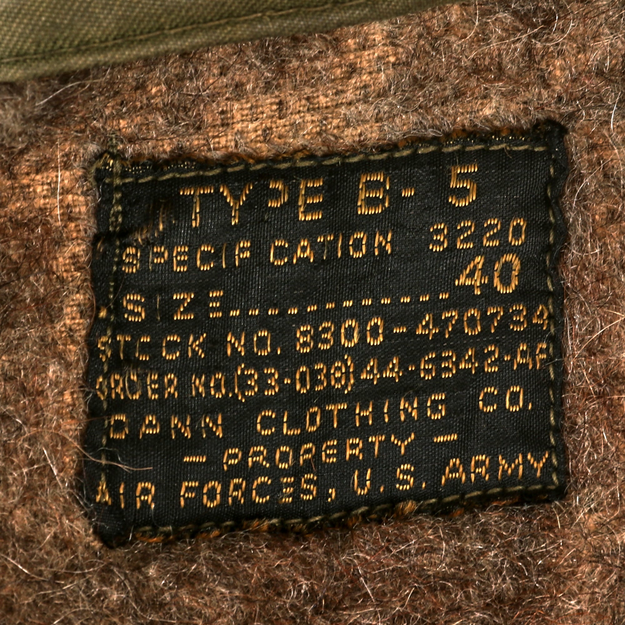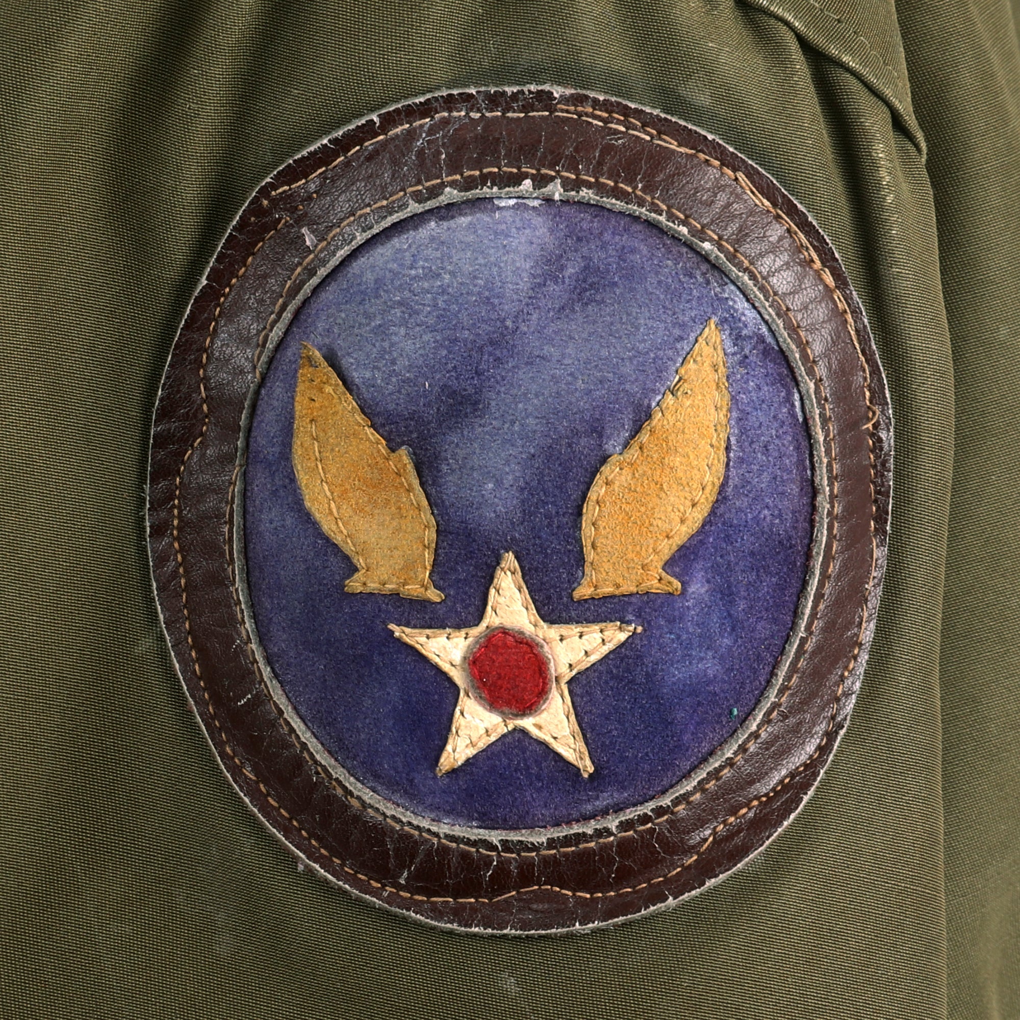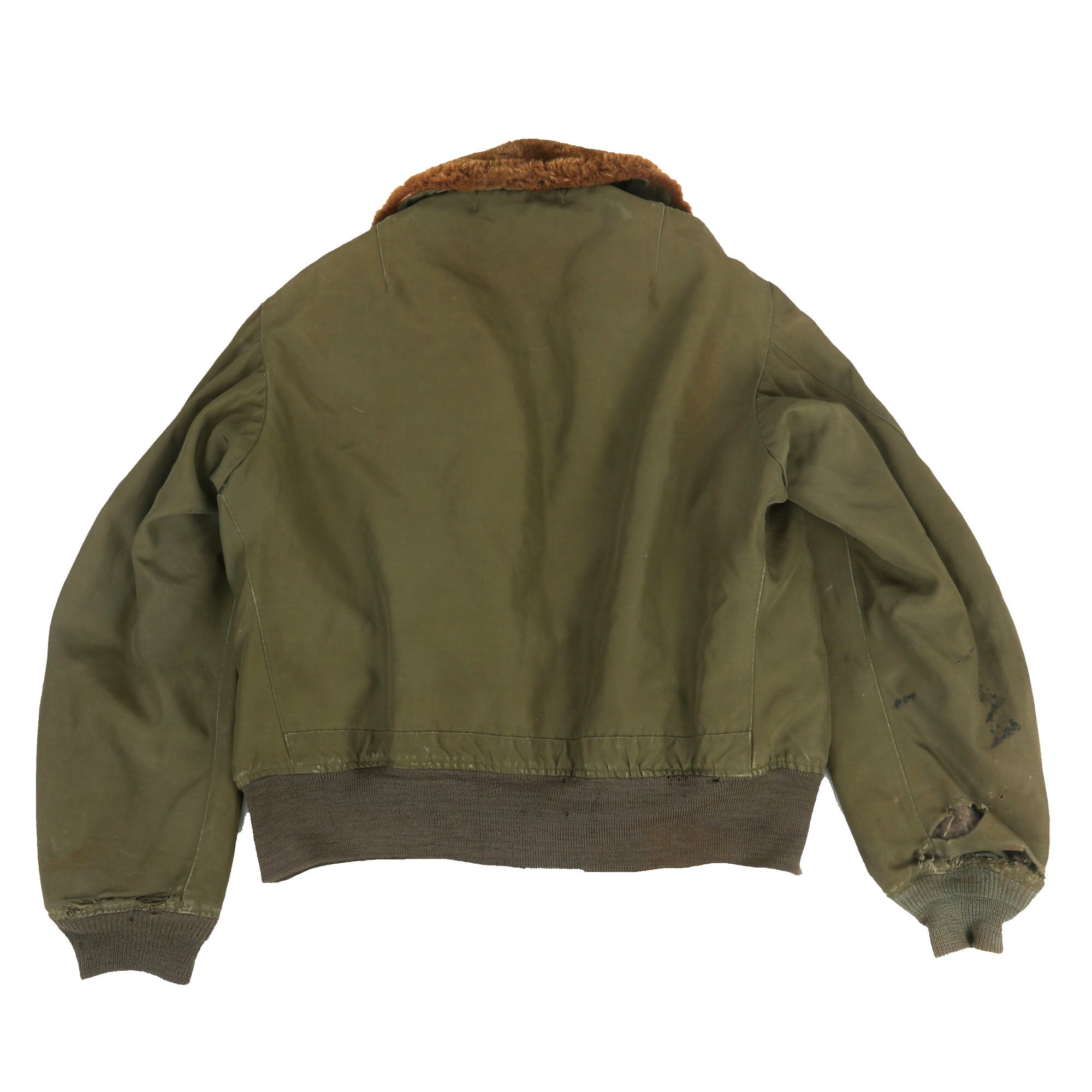 - CBI Patched B-15 Intermediate Flight Jacket: The U. S. Army Air Force Type B-15 Intermediate Flight Jacket was developed from lessons learned in field use of the highly popular B-10 Flight Jacket of 1943. As early as 1942, the Materiel Division of the US Army Air Forces was seeking an alternative material to sheepskin for producing flying suits, and by October of that same year development had begun at Wright Field on the Intermediate Flying Jacket, Type B-10. Originally constructed of an outer shell made from a fine, cotton twill, and lined with an alpaca-and-wool pile lining, the B-10 Flight Jacket was standardized on July 22,1943, though it was superseded less than 9 months later by the B-15 Flight Jacket. Both the B-10 and B-15 Flight Jackets were designed as replacements for the sheepskin flight jackets of the 1930s and early 1940s, and represented the first cloth-shelled, alpaca fur-lined flight jackets of the USAAF. These flight jackets were an instant success with just about every aviator who encountered one, being much lighter and more versatile than the flight jackets they replaced. Intended for wear in climates between 25 degrees and 55 degrees Fahrenheit, the B-15 Flight Jacket was ideally suited for early spring and late fall and winter.