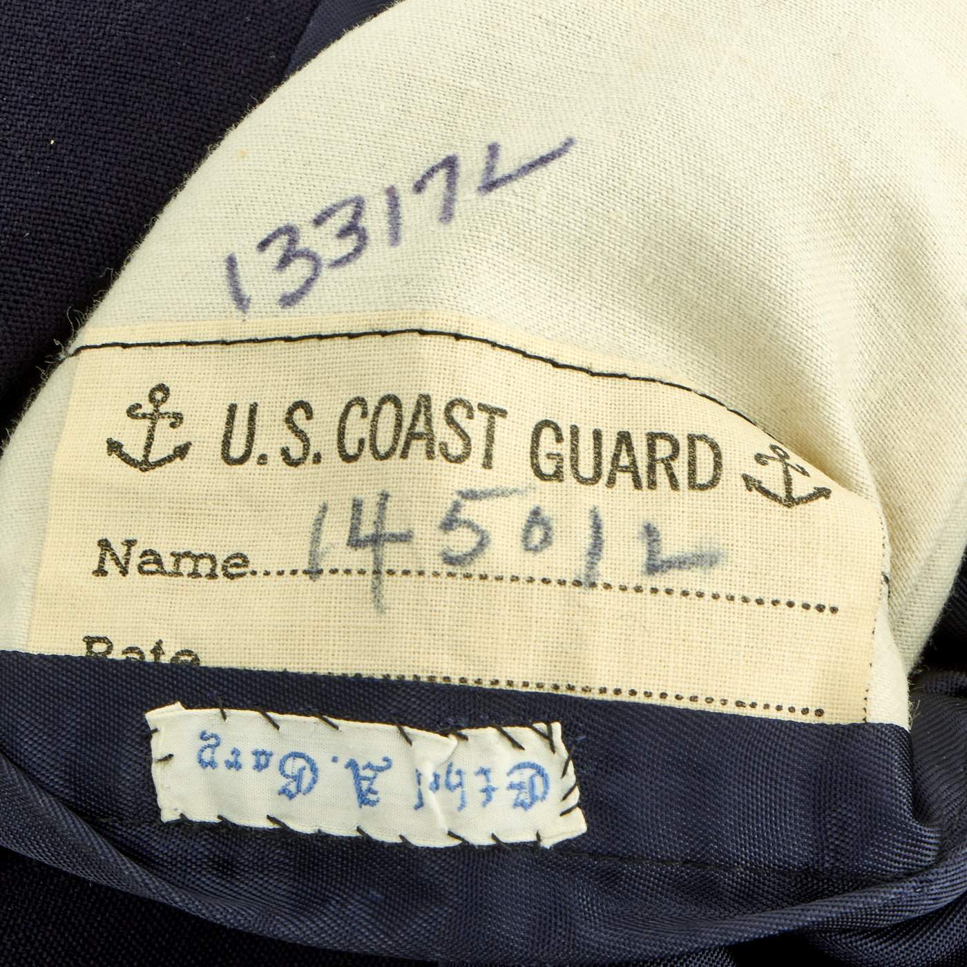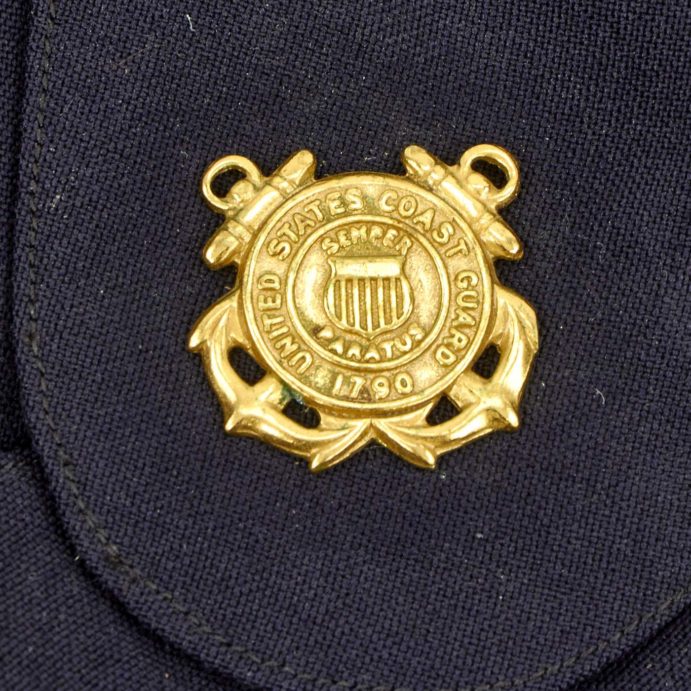 - Original Items:Only Ones Available. Scarce WWII U.S. Coast Guard S.P.A.R.S.. Service uniform; complete with Service Coat with insignia (Has USCG label inside), Matching Skirt, Matching White Dress Shirt with USCG Label, Issue WAVES purse with name embossed in gold of the original owner and “USCGR (W)” (U.S. Coast Guard Reserves (Women), neckerchief, and SPARS hobby hat with USCG Device (Cap is US Navy W.A.V.E.S Marked). Comes with display mannequin.