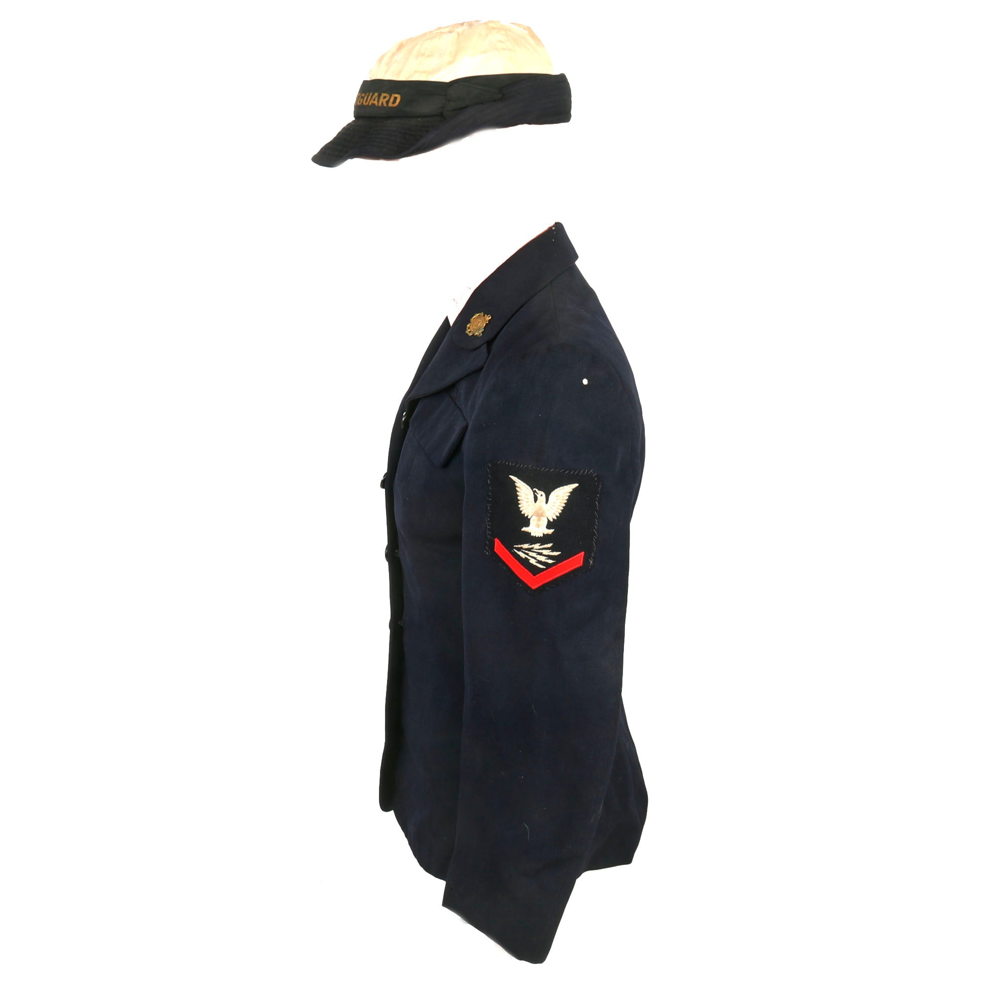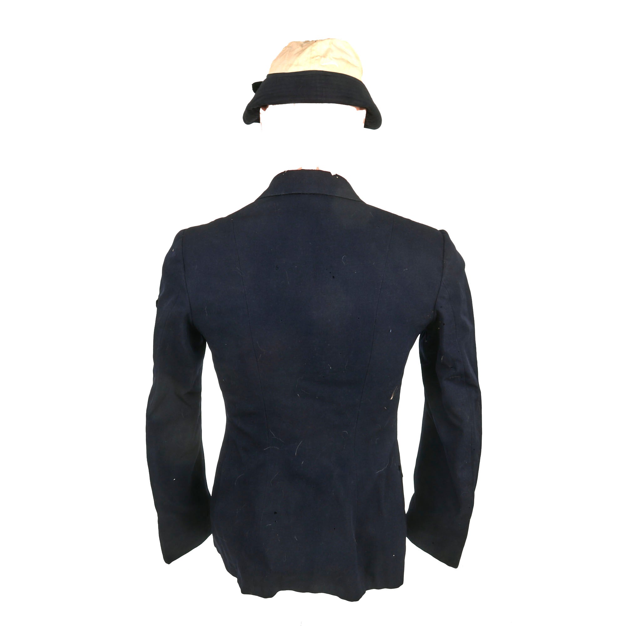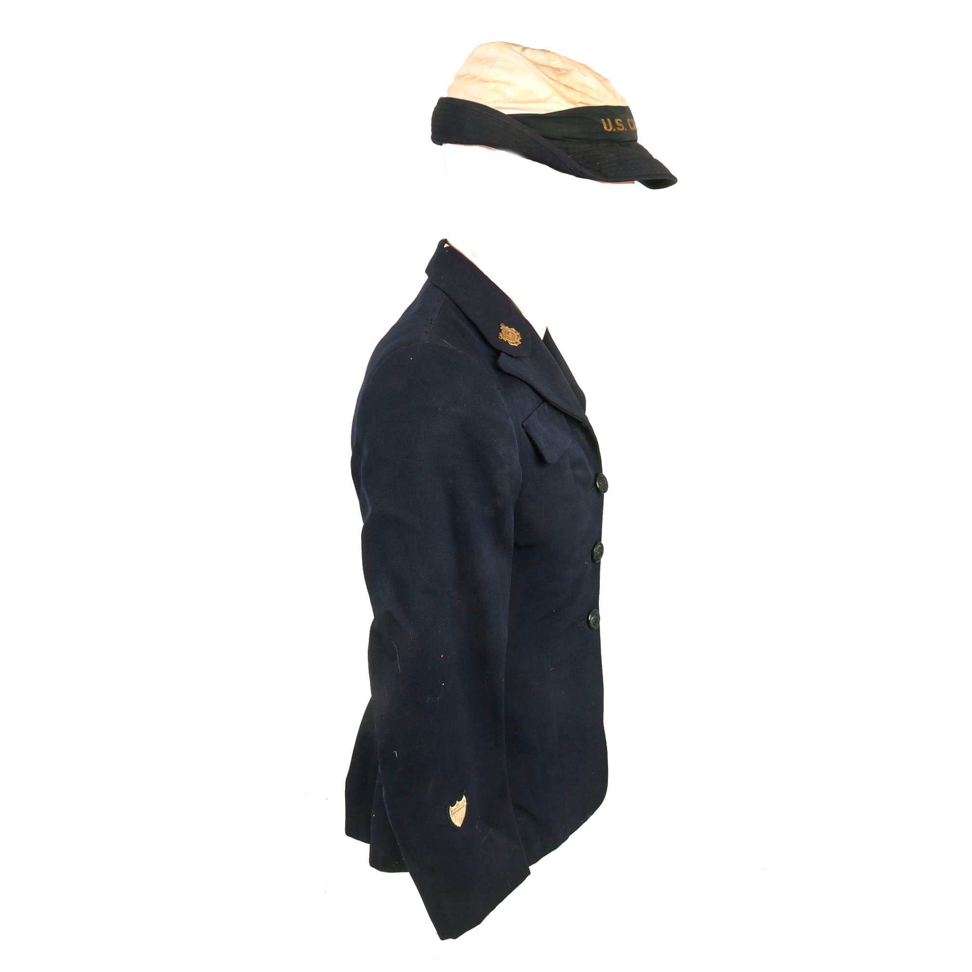 Original Grouping. One-of-a-Kind. This is a phenomenal & extensive Coast Guard Female S.P.A.R.S. uniform grouping identified to Lottie Mae Caldwell-Reynolds, one of the first 30 “Spars” to be training as a radio technician. The grouping includes several extremely scarce SPARS uniform pieces including a very rare bathrobe, bathing suit, and a rare SPARS purse which appears “untouched”, with many of the small bits and pieces still inside. This is a really tremendous collection with tons of research and display potential. Some of the uniform pieces have great period tags which may be early museum tags, with some information on the uniforms and Caldwell.