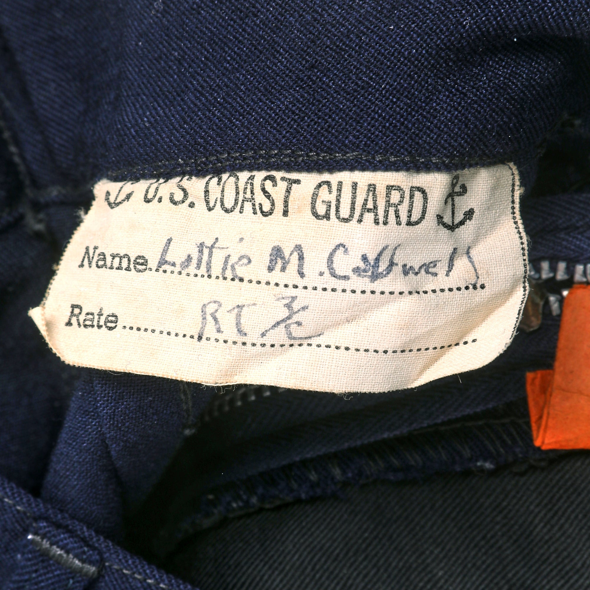 - One set of SPARS trousers with a US Coast Guard nametag under the collar with Lottie M. Caldwell written on.