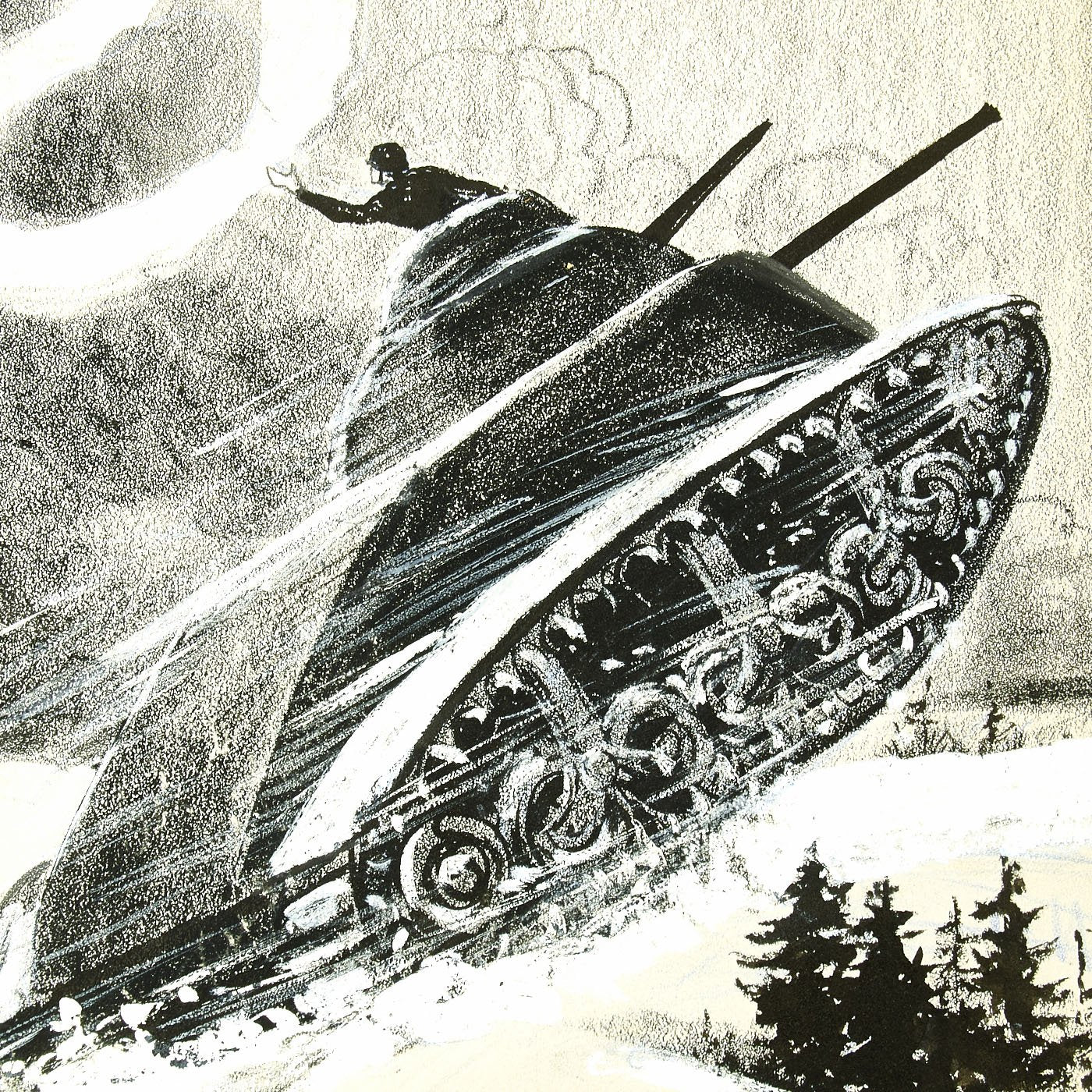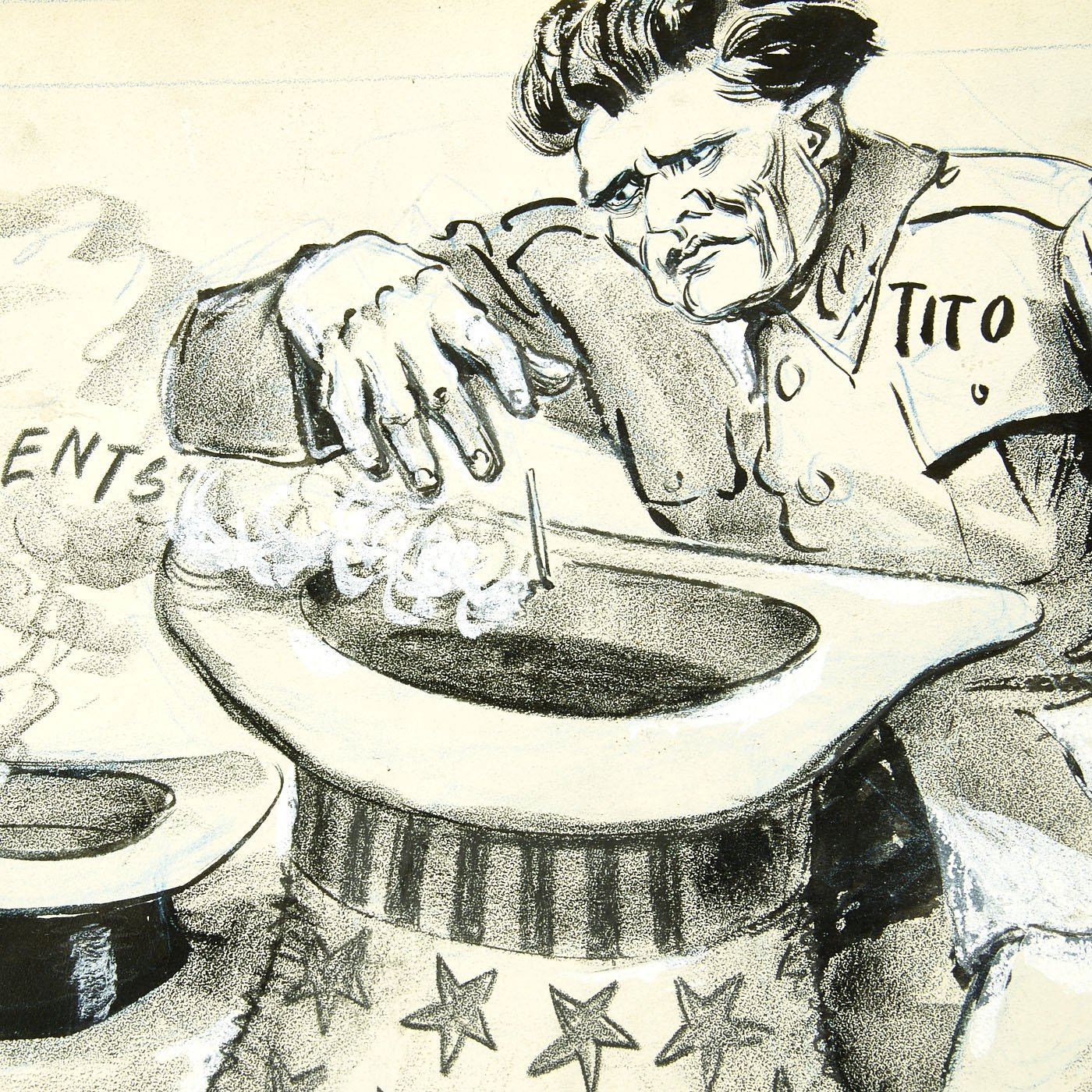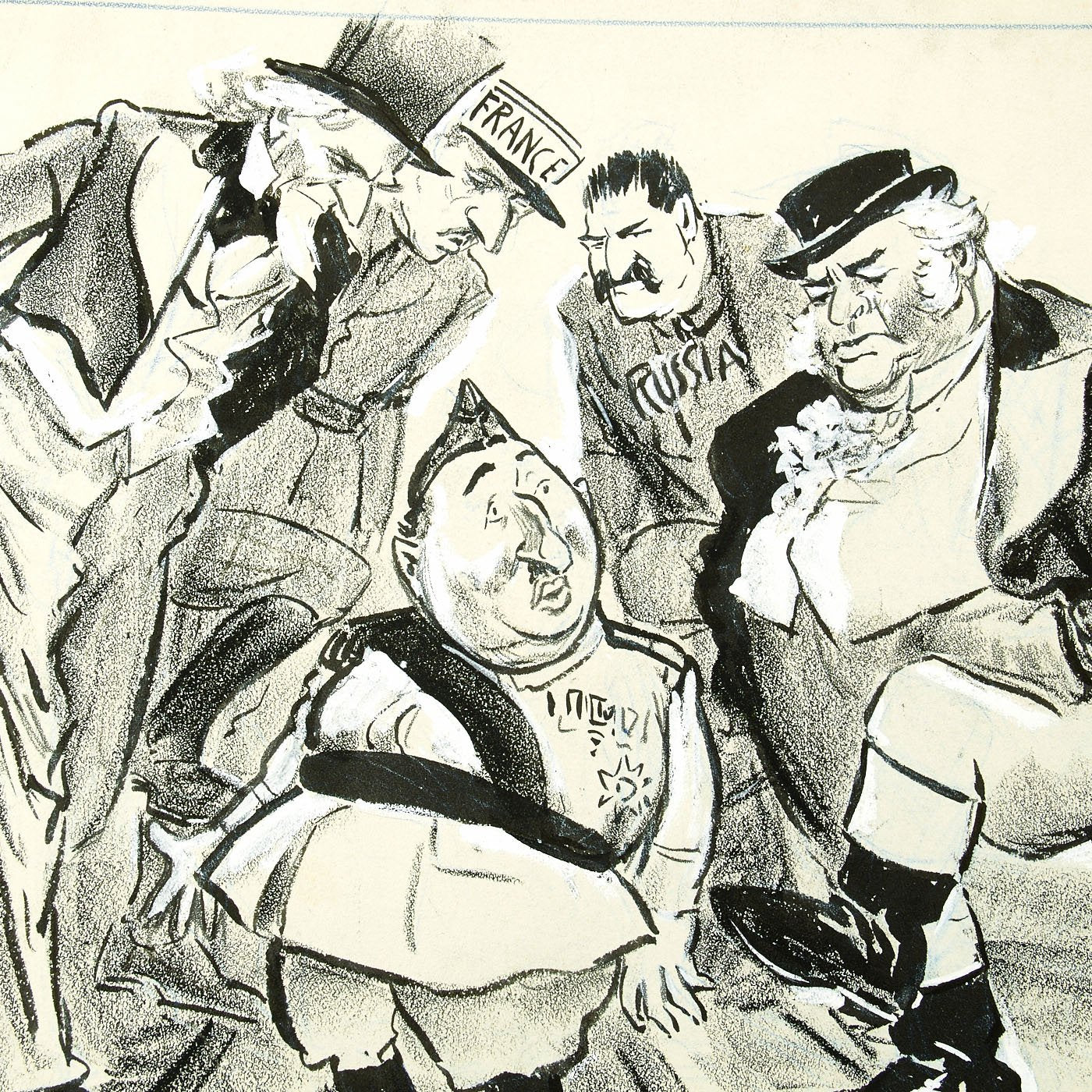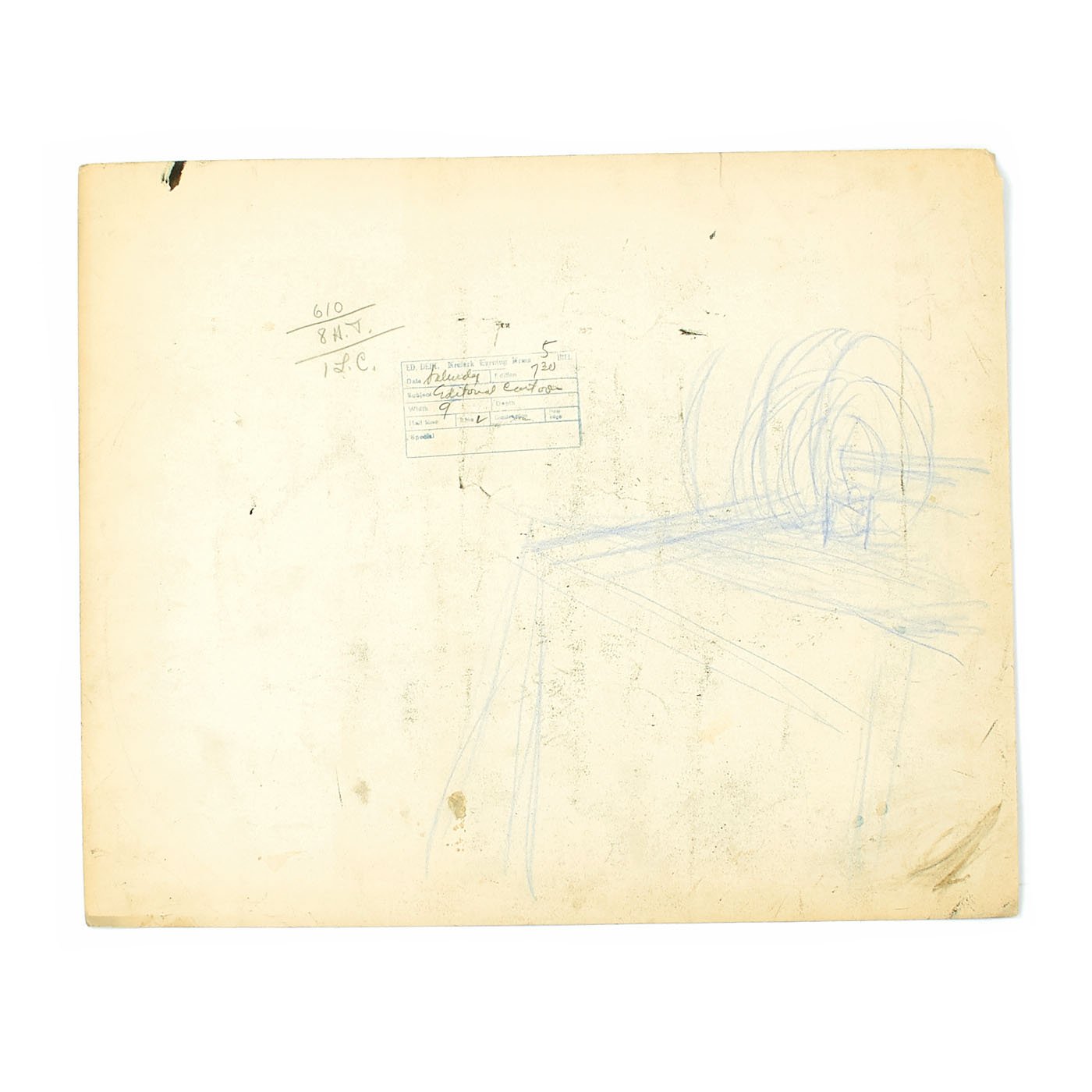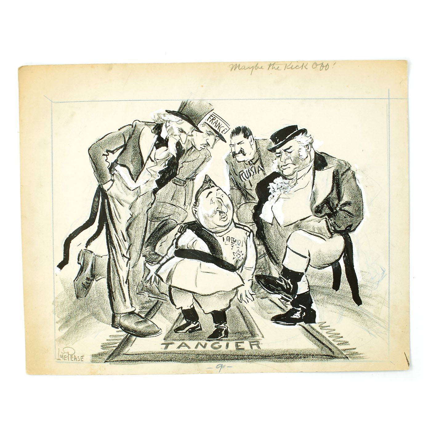 Original Item: One of a Kind Set. LUCIUS CURTIS PEASE JR., known as "LUTE", lived from 1869 until 1963. He was Nationally known as the Political Cartoonist for THE NEWARK EVENING NEWS from 1914 until 1954. The archive is made up of EIGHT original pieces of pencil Art Work published during WWII and into the Cold war era. These are totally original, covered in whiteout corrections, and each is titled. Most are officially stamped with a 3 1/2" X 2" Newark Evening News stamp to rear, indicating the Day of the Week and Edition time they were to be featured in.