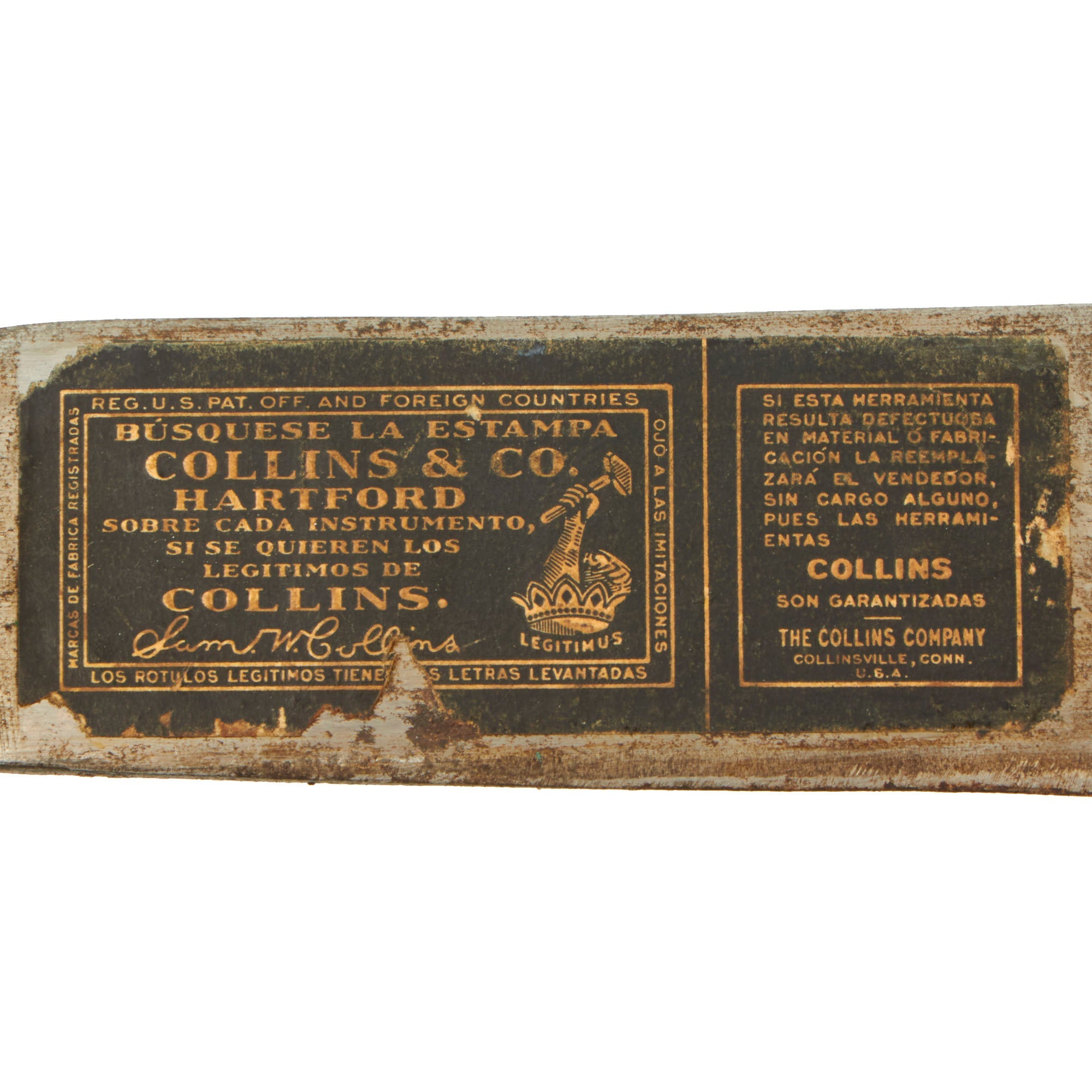 Original Item: Only One Available. In 1826, two brothers, Samuel Watkinson Collins (age 24) and David Collins (age 21) along with their wealthy cousin, William Wells, purchased the old Humphrey gristmill along the Farmington River in South Canton with the intention to produce high quality ground axes. The Collins Company line of products would grow over the years to include not only axes, but also machetes, hatchets, adzes, brush hooks, picks, shovels, knives, swords, bayonets and plows, making them the world’s leading manufacturer of edge tools.