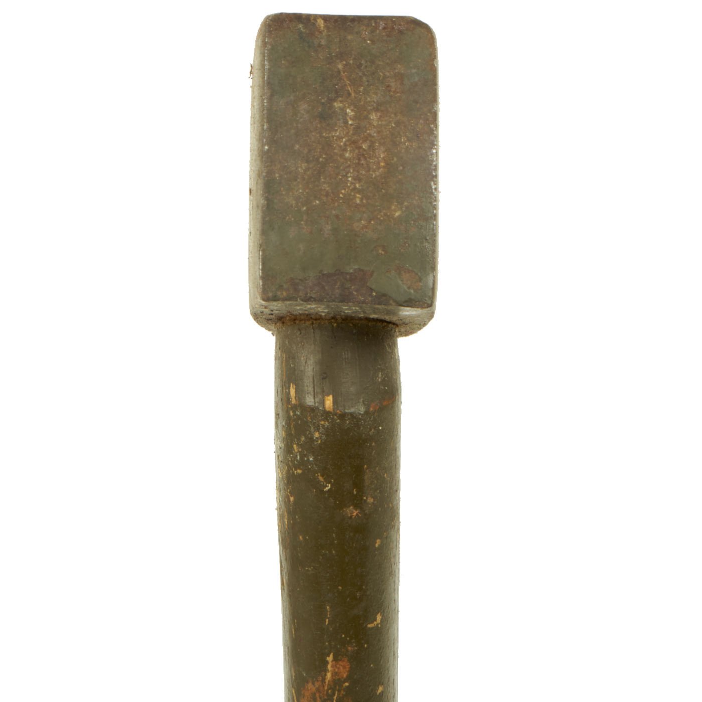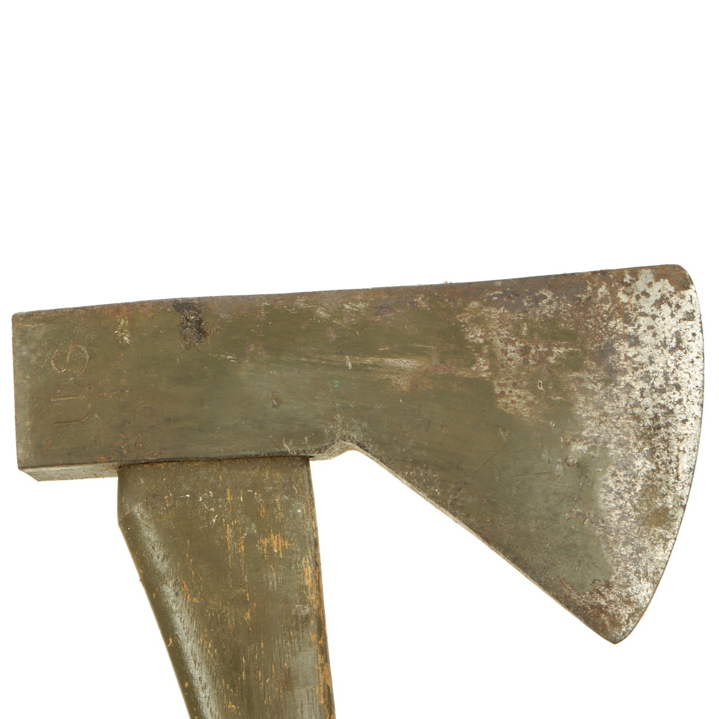 The other side of the butt is marked with a large U.S.. The head is in good used condition, still retaining a lot of the original OD green paint, with wear around the edge from use. The edge is somewhat dull, but shows no major dents or other defects.