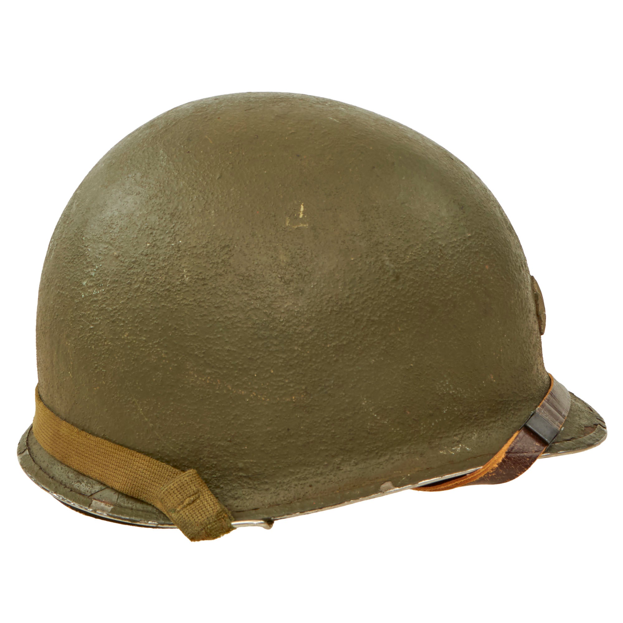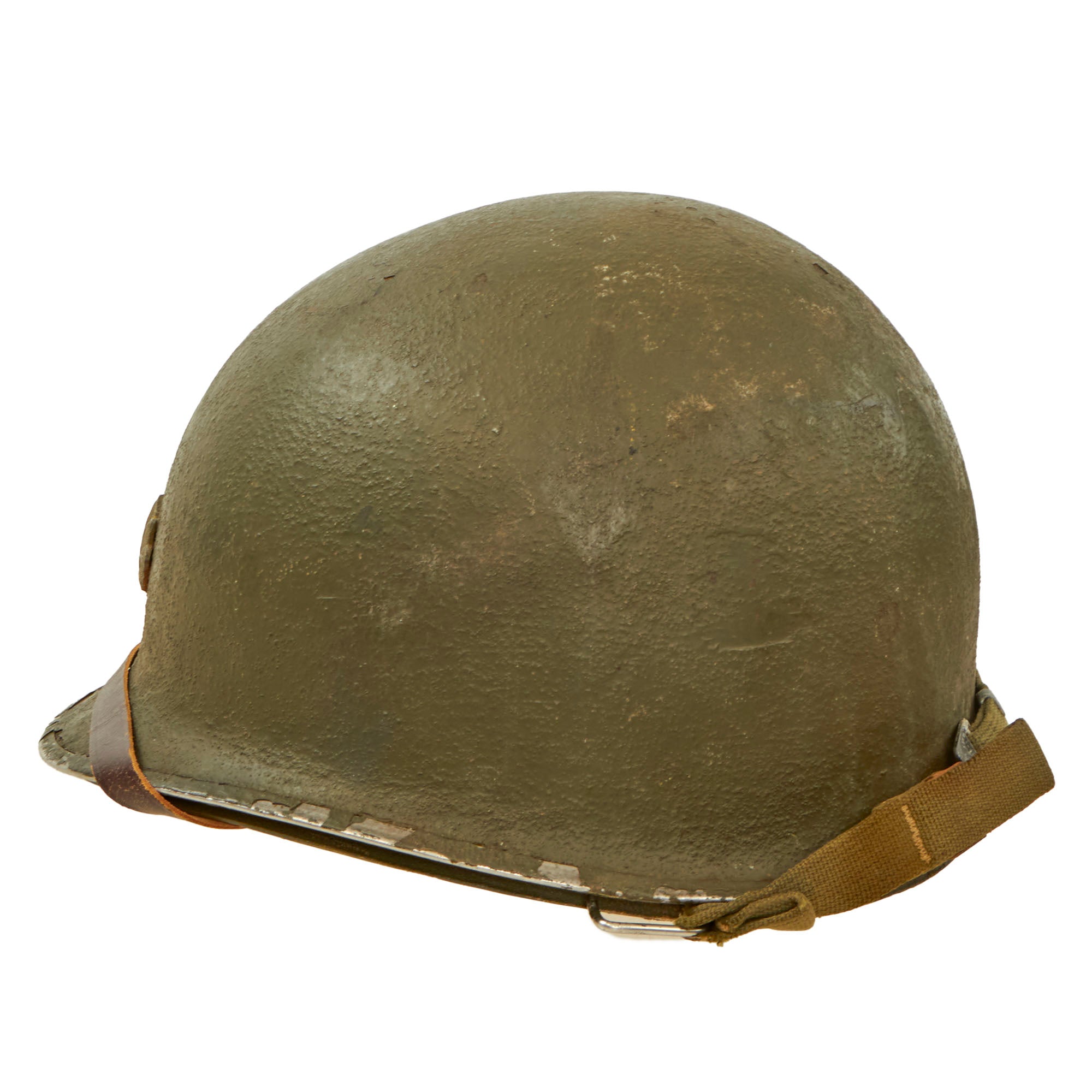 Original Item: Only One Available. The U.S. WWII M-1 helmet was only produced from 1941 to 1945. The first production batch resulted with over 323,510 M-1 helmets before the start of the American involvement in the war. This helmet is faintly stamped 980F, which indicates a 1944 manufacture date.