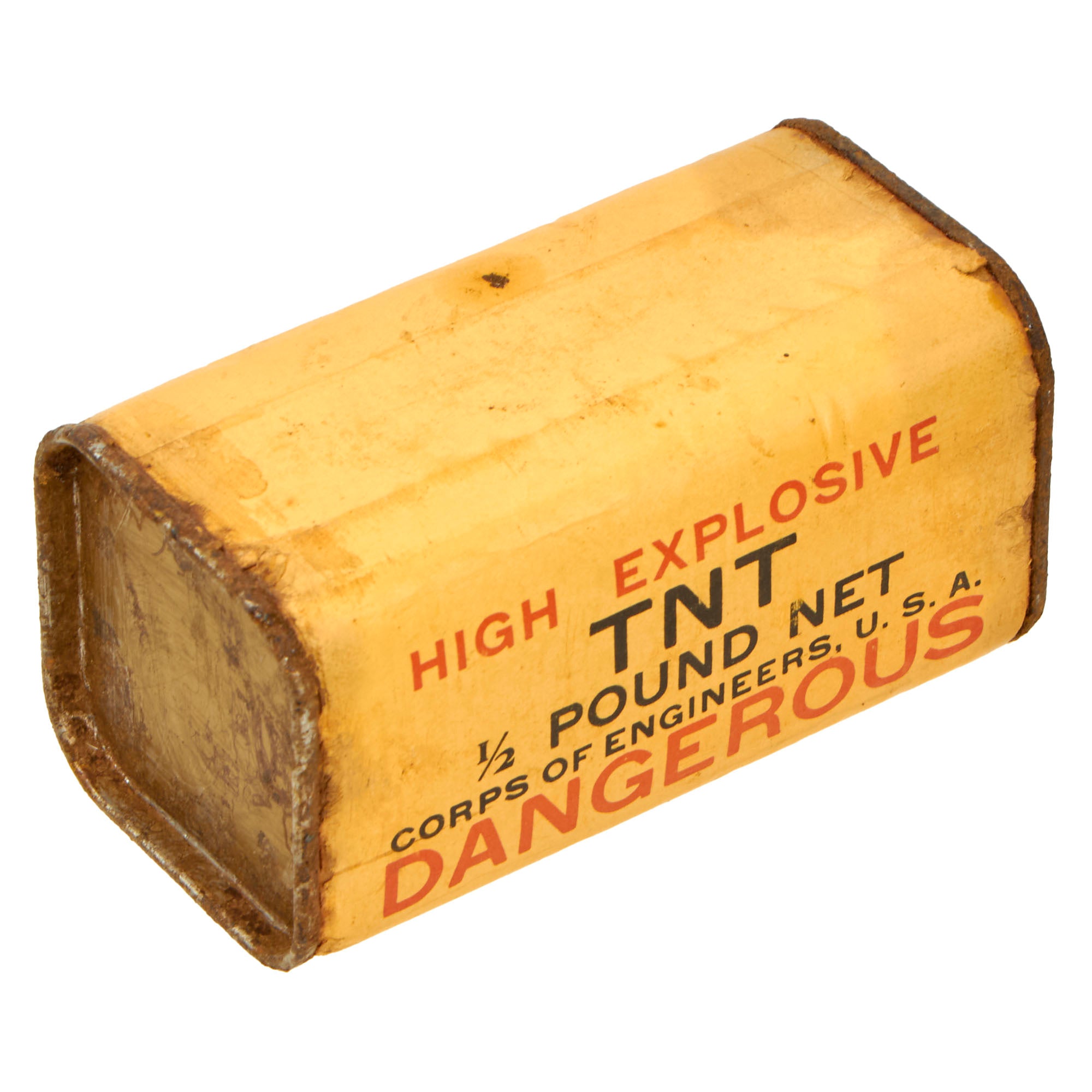 Original Item: Only One Available. These 1/2 lb TNT bricks were used by various Army, Navy, and Marine engineers and demolitions units. FM 5-31, Boobytraps and Landmines, explains the use of the half-pound TNT block with several fuses, including how to arm and disarm them. The TNT block could be used with the delay fuse, release fuse, or pressure fuse.
