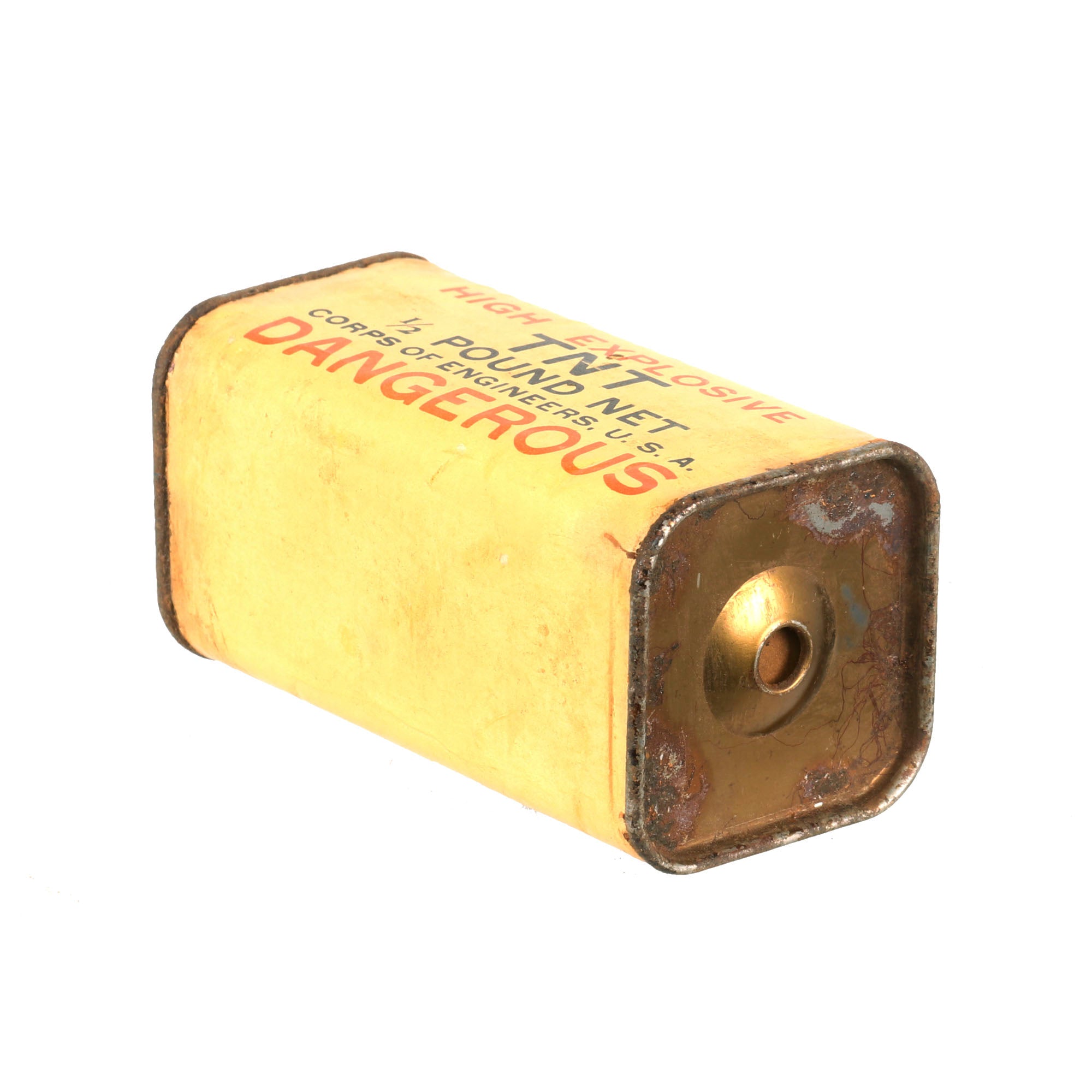 Original Item: Only One Available. These 1/2 lb TNT bricks were used by various Army, Navy, and Marine engineers and demolitions units. FM 5-31, Boobytraps and Landmines, explains the use of the half-pound TNT block with several fuses, including how to arm and disarm them. The TNT block could be used with the delay fuse, release fuse, or pressure fuse.