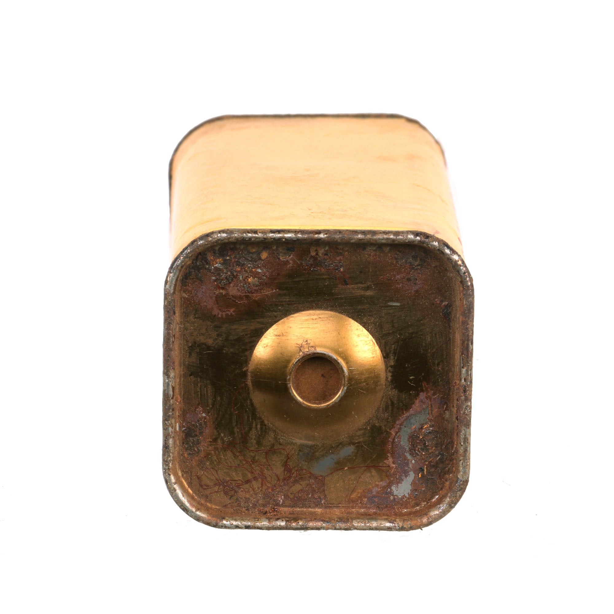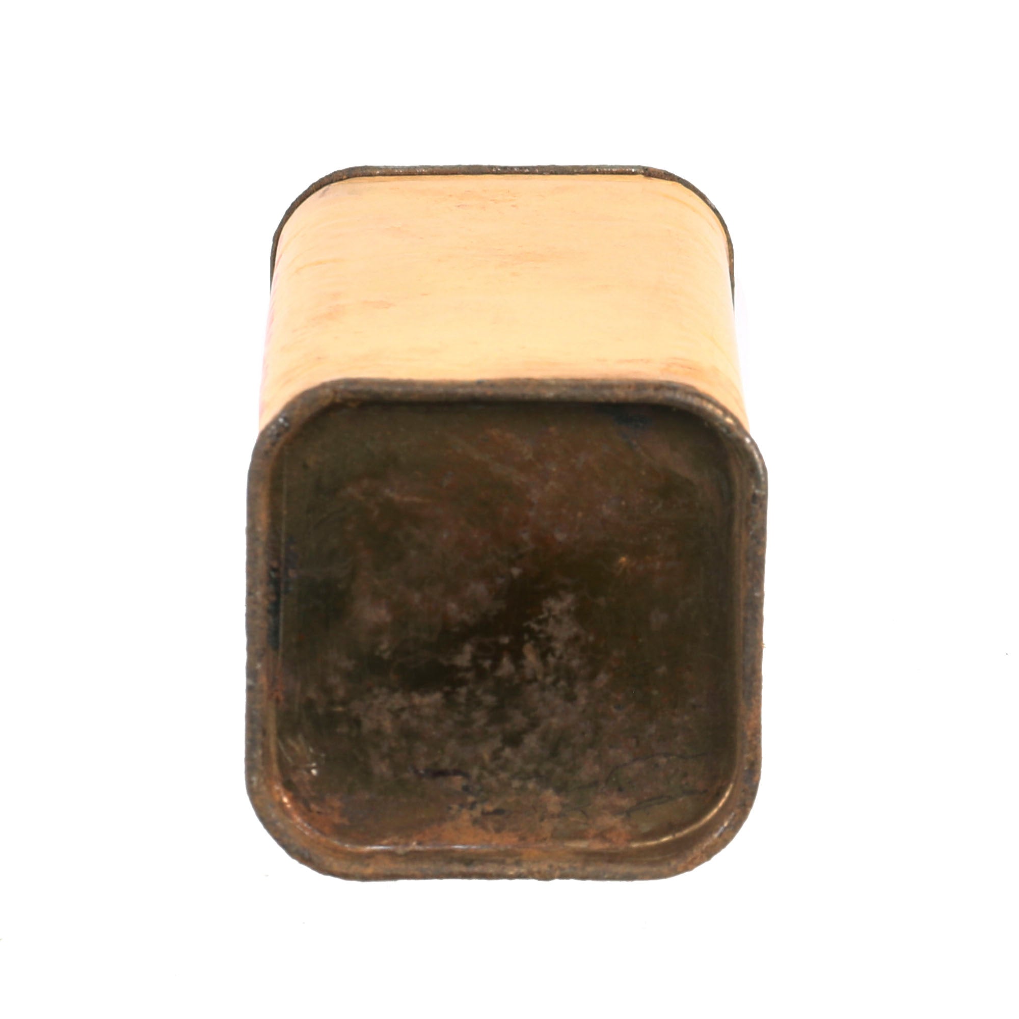 This thick cardboard block is complete with both end caps present. This example appears to have never been used or rigged to be used. Both end caps are still attached firmly, so after the explosives were removed, the removed cap was re-attached or glued.
