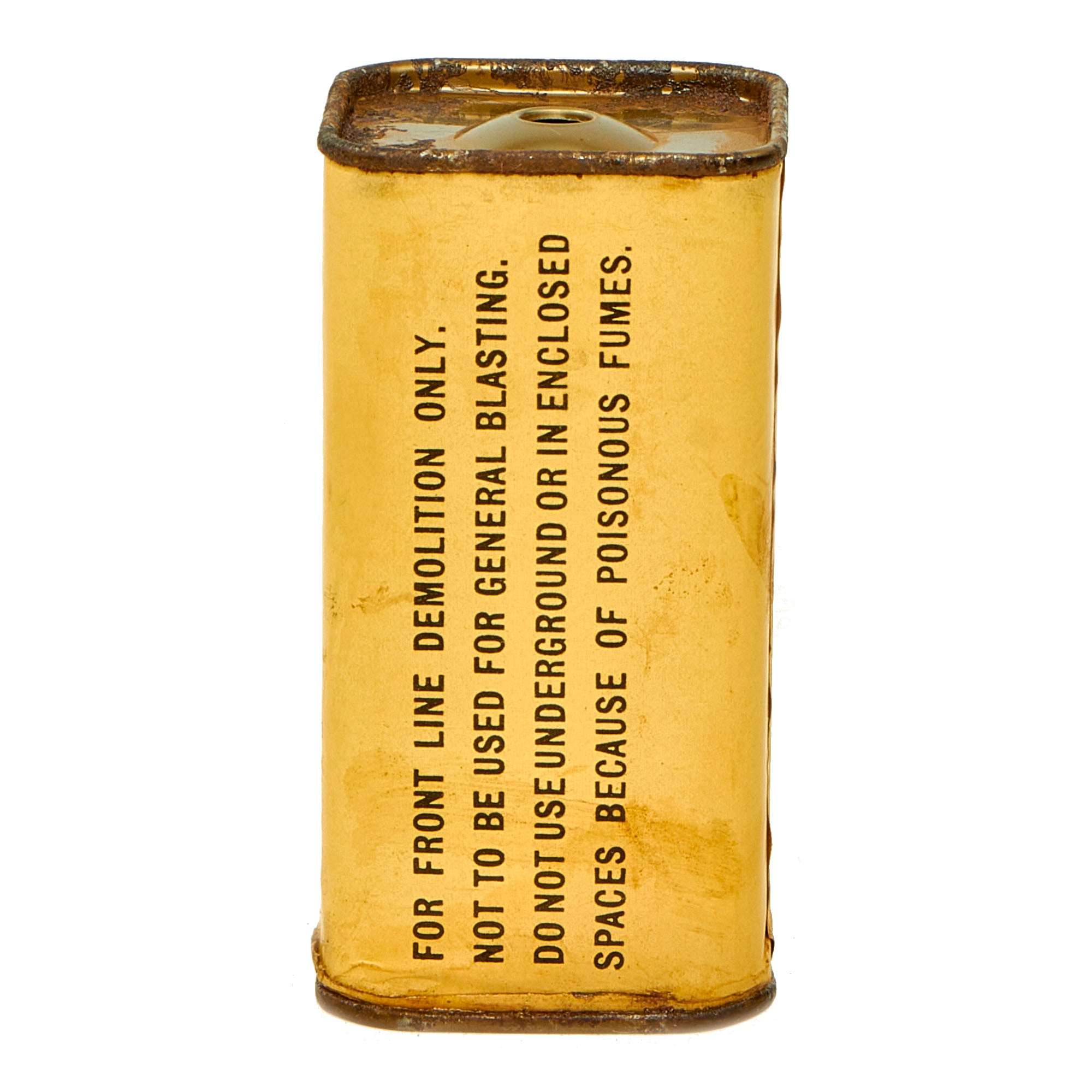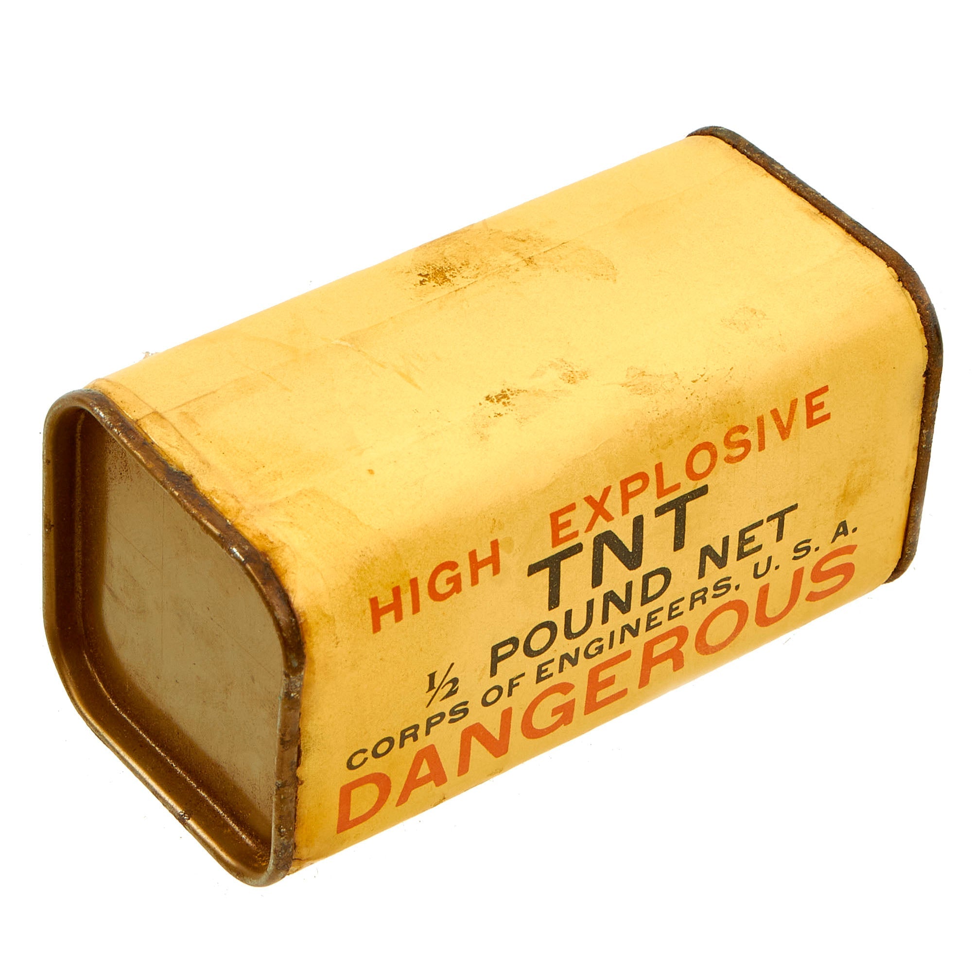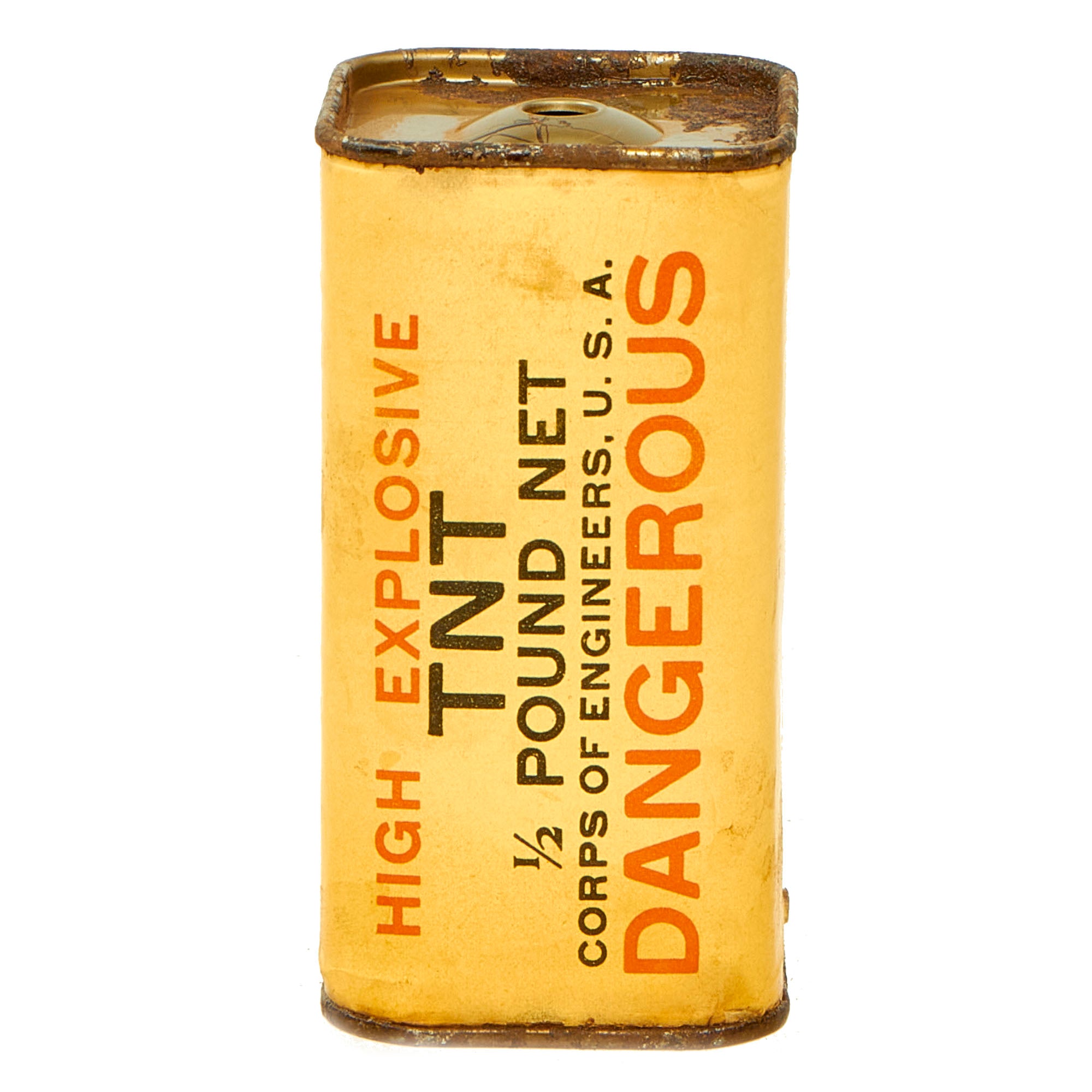 Original Item: Only One Available. These 1/2 lb TNT bricks were used by various Army, Navy, and Marine engineers and demolitions units. FM 5-31, Boobytraps and Landmines, explains the use of the half-pound TNT block with several fuses, including how to arm and disarm them. The TNT block could be used with the delay fuse, release fuse, or pressure fuse.
