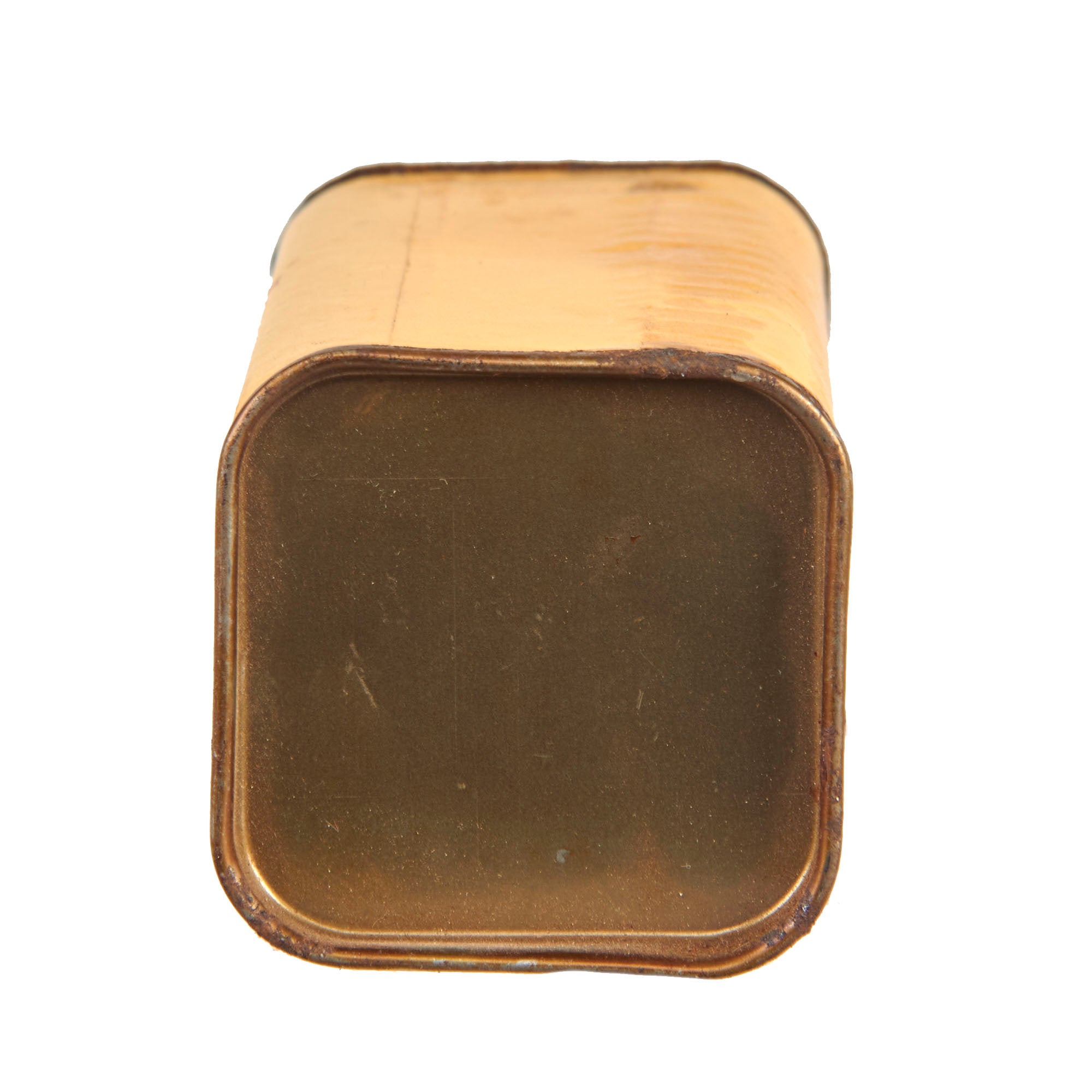 This thick cardboard block is complete with both end caps present. This example appears to have never been used or rigged at some point to be used. The right end cap is cut almost completely off from the body, which was done when the explosive contents were removed.