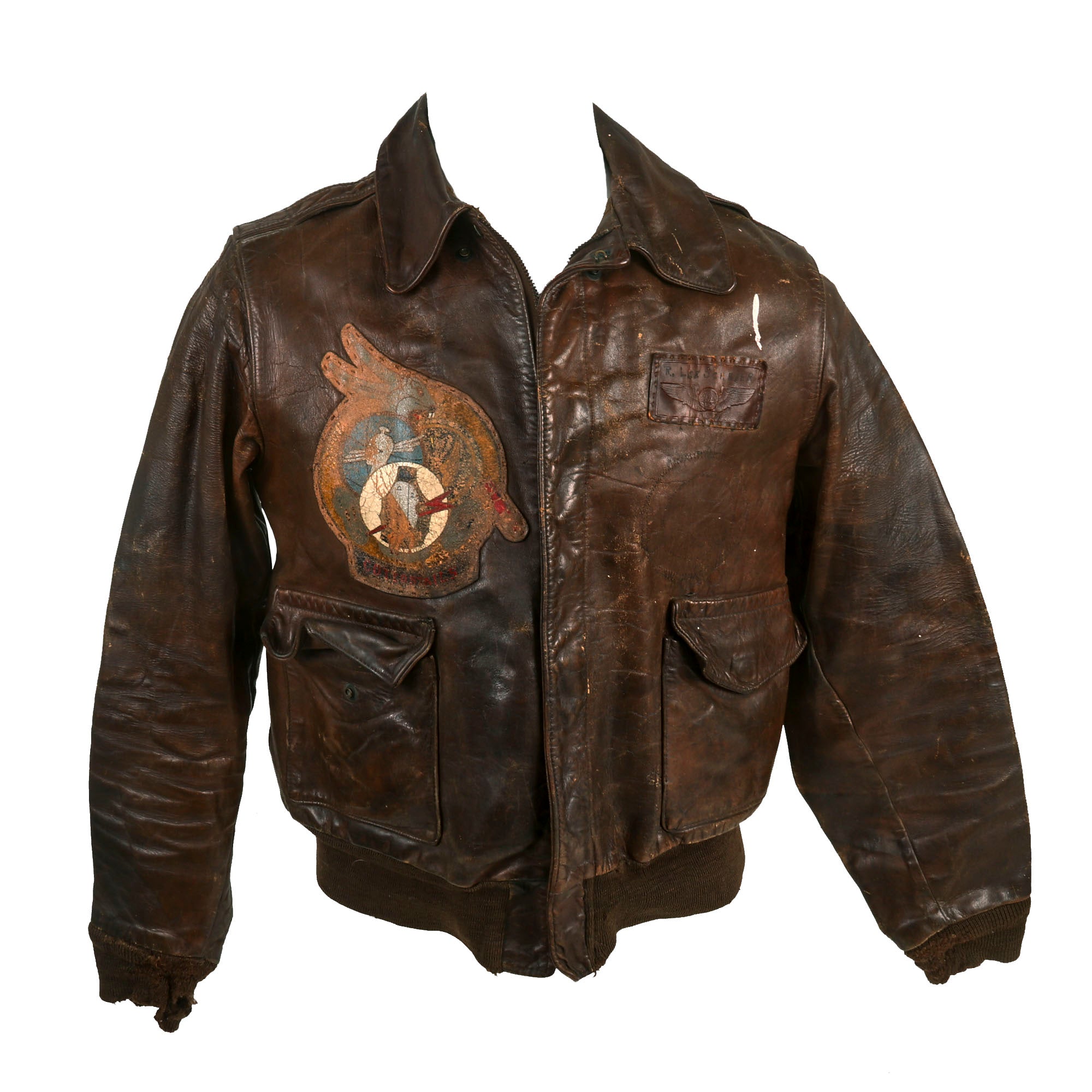 Painted WWII American A-2 Flight Jackets have realized unprecedented prices in the past year. For example jackets at Rock Island Auctions sold in 2022 for $32,000+ and $23,000+ respectively they can be found at this link and this link. When comparing the Rock Island Auction jackets with the one offered here, one can easily see that our offering is an exceptional value!