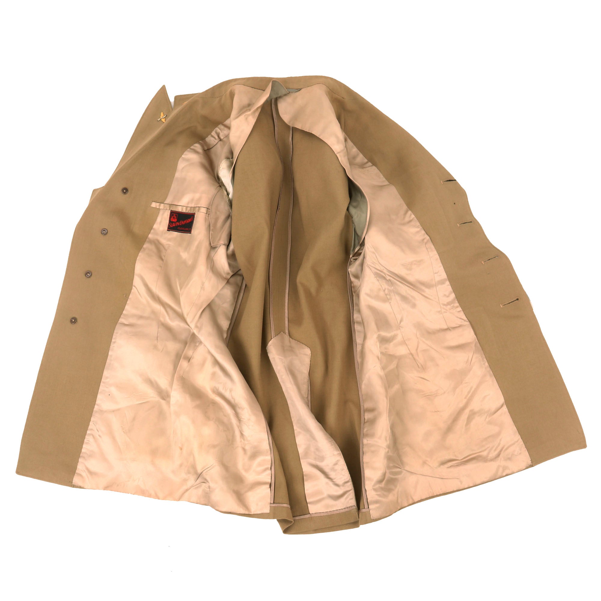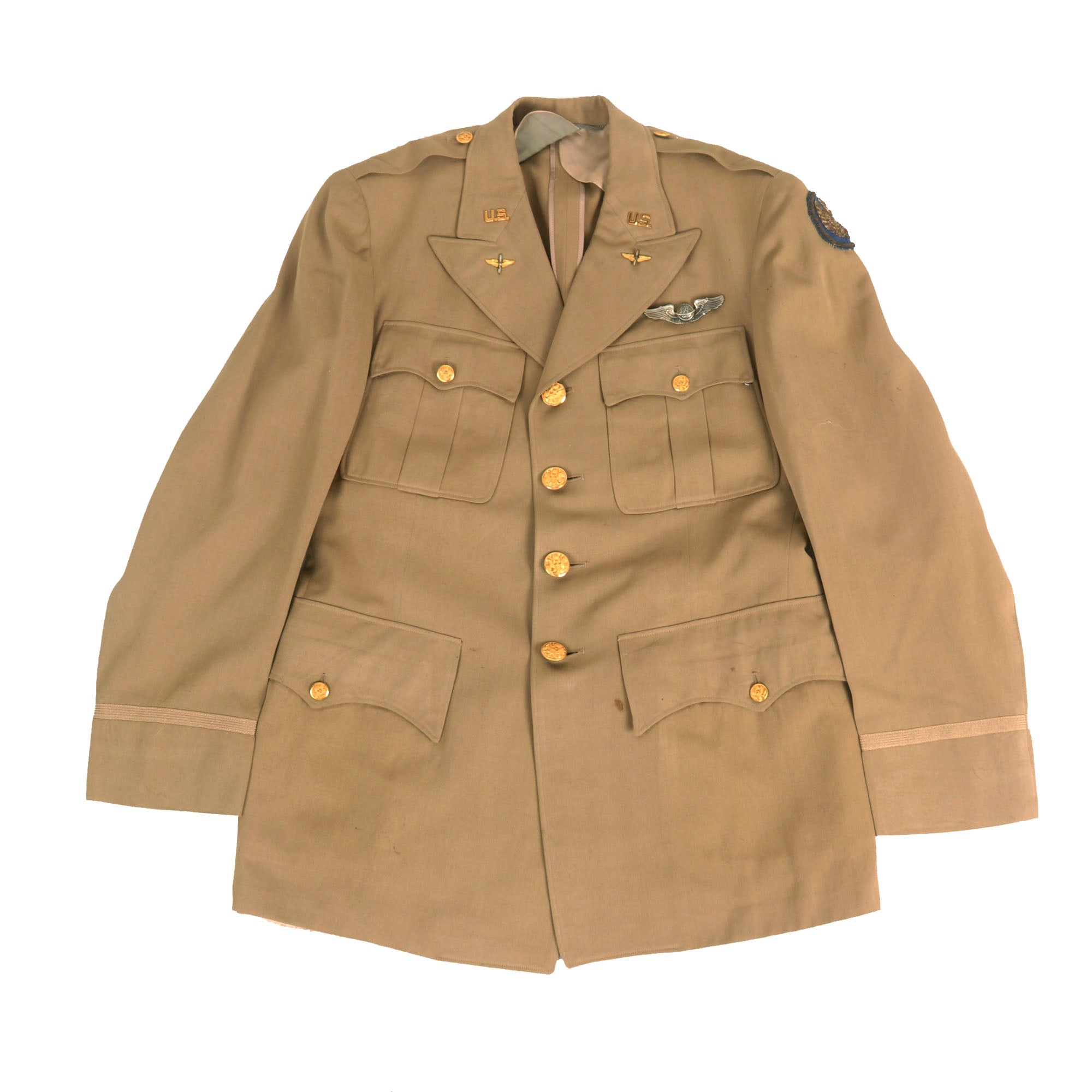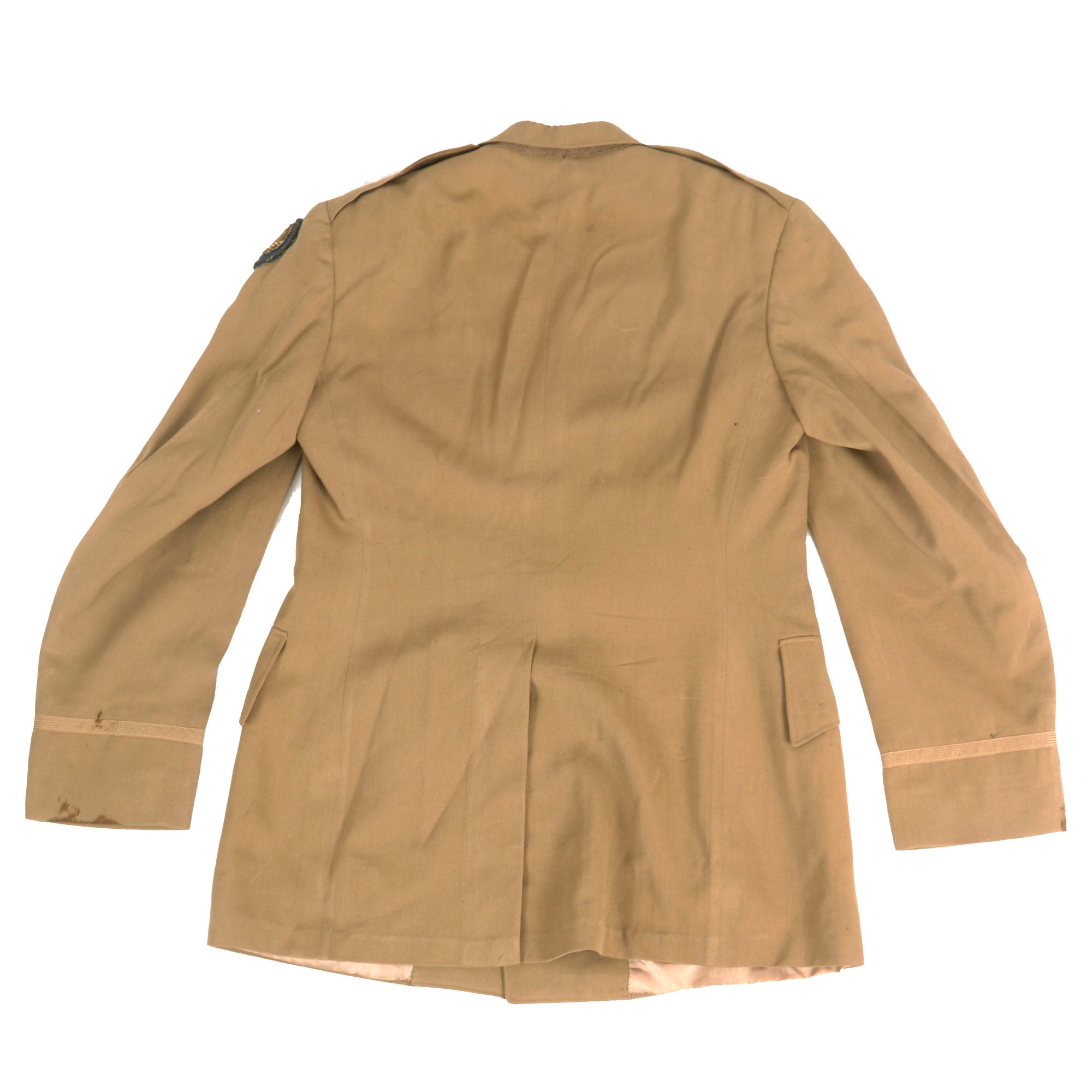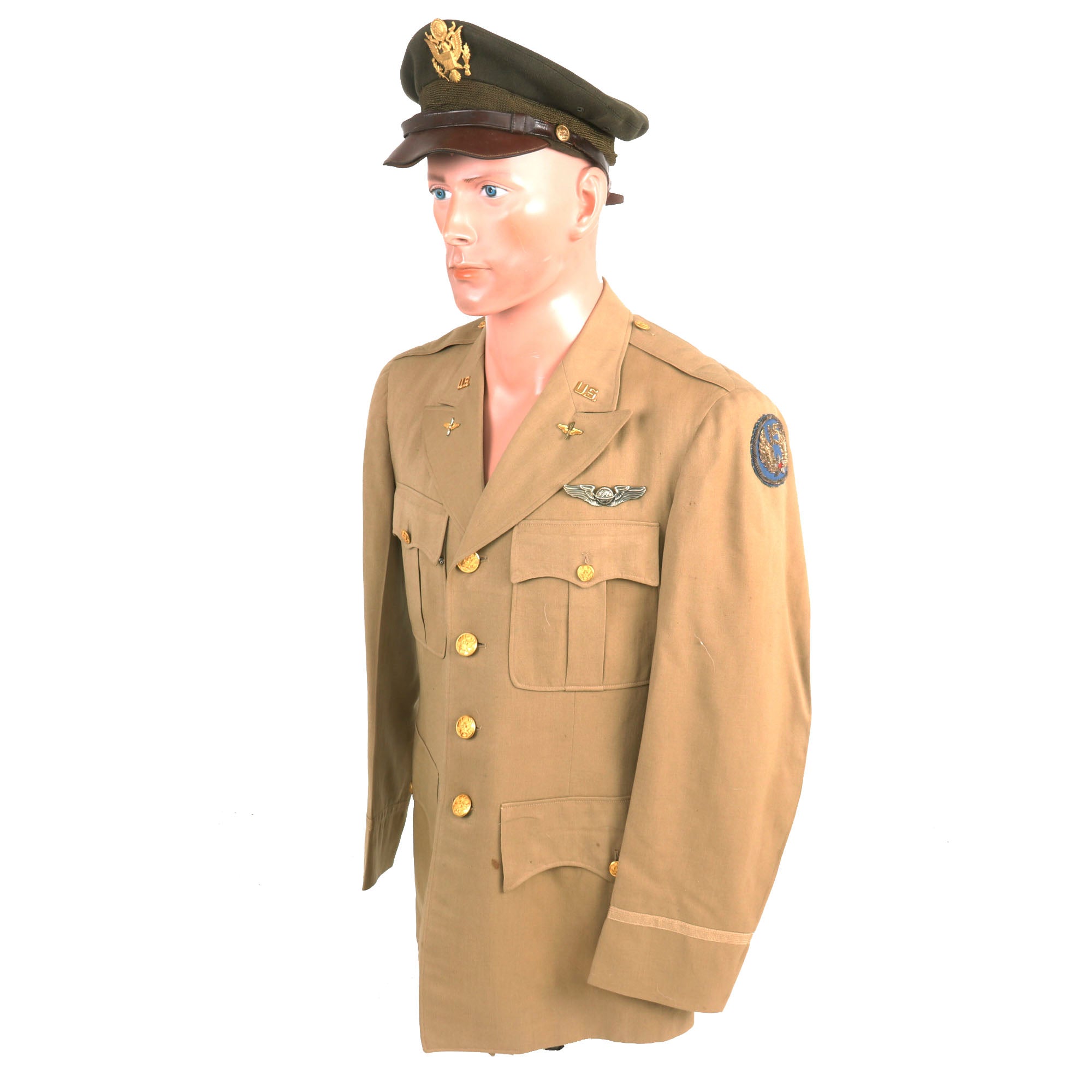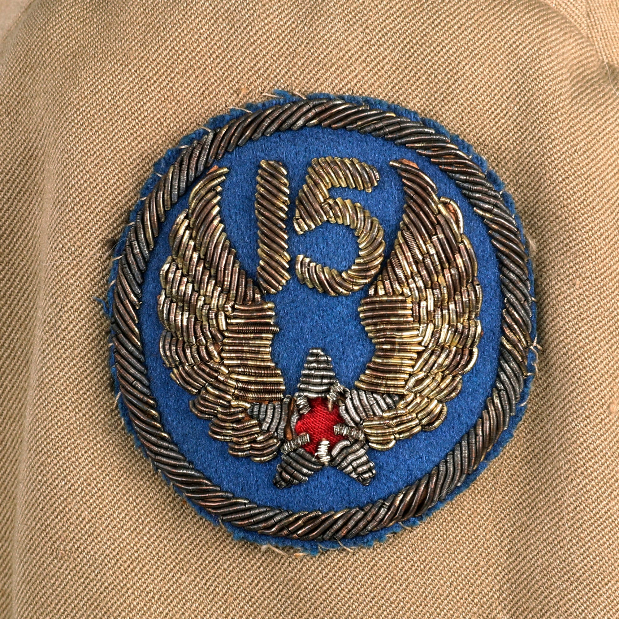 - Summer Service Dress Uniform: This exquisite uniform jacket is in superb condition and boasts a striking 15th Air Force Bullion Embroidered shoulder sleeve insignia on the left. The insignia is skillfully embroidered with fine gold and silver wire onto a blue felt base, giving it a luxurious and captivating appearance.