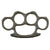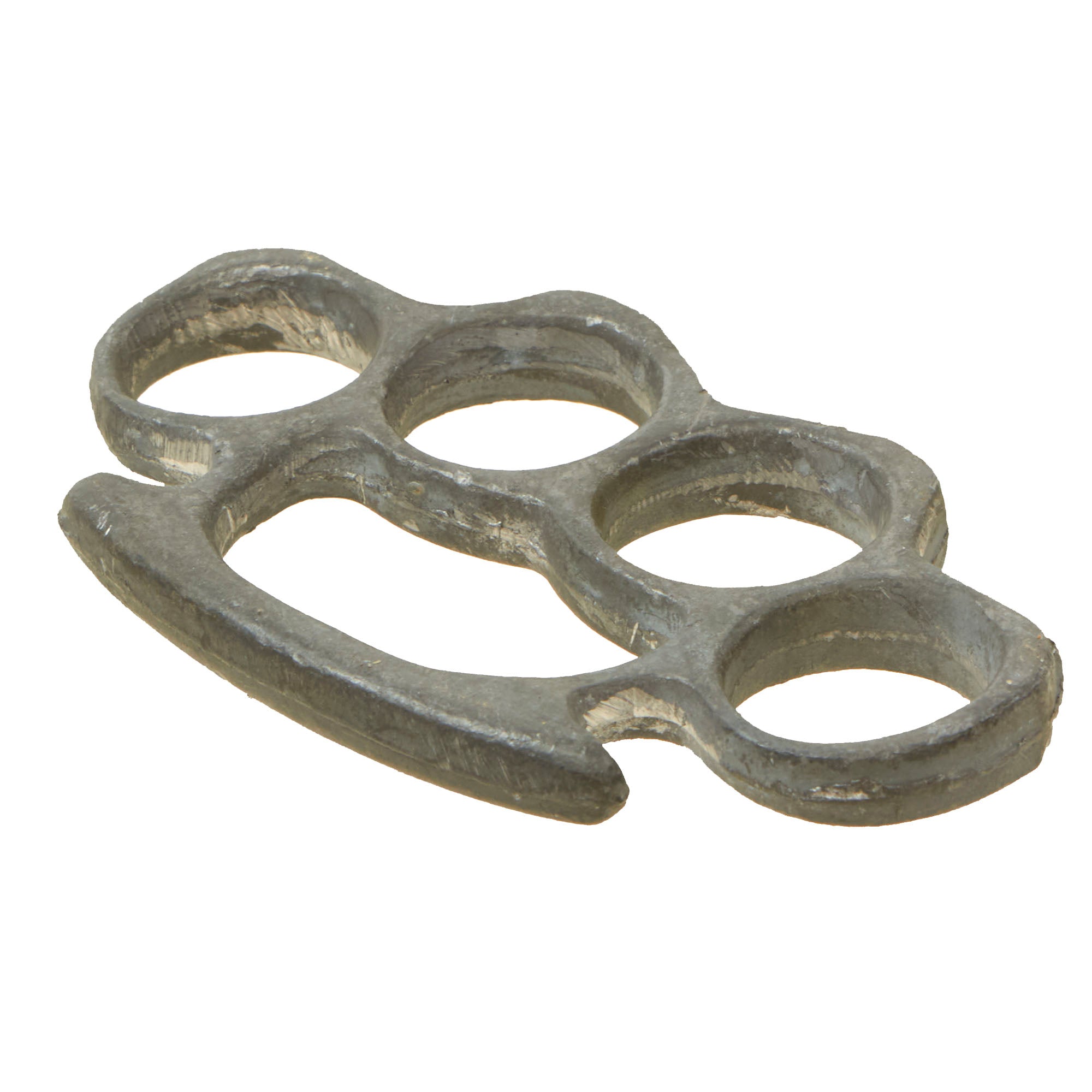 Brass knuckles, variously referred to as knuckles, knucks, brass knucks, knuckle busters, knuckle dusters, knuckle daggers, English punch, iron fist, paperweight, or a classic are "fist-load weapons" used in hand-to-hand combat. Brass knuckles are pieces of metal shaped to fit around the knuckles. Despite their name, they are often made from other metals, plastics or carbon fibers. Designed to preserve and concentrate a punch's force by directing it toward a harder and smaller contact area, they result in increased tissue disruption, including an increased likelihood of fracturing the intended target bones on impact. The extended and rounded palm grip also spreads across the attacker's palm the counter-force that would otherwise be absorbed primarily by the attacker's fingers, reducing the likelihood of damage to the attacker's fingers. It also allows its user to break glass windows without injuring their hands, thus they are widely utilized in vehicle theft to break car windows.