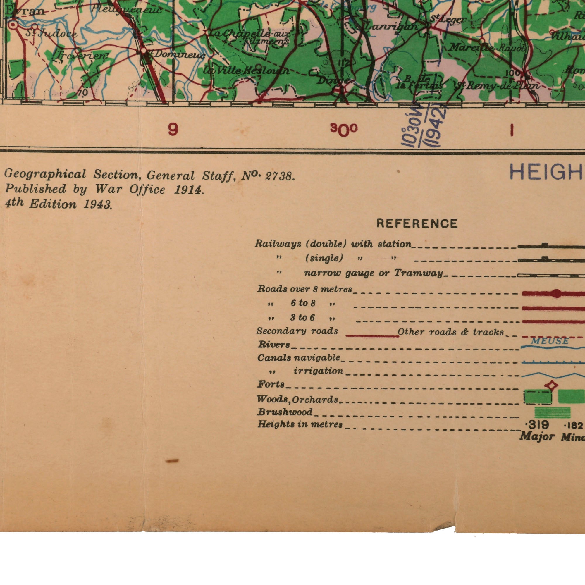 Original Item: Only One Available. British made Geographical Section, General Staff, No. 2738 Published by the War Office 1914, 4th Edition 1943.