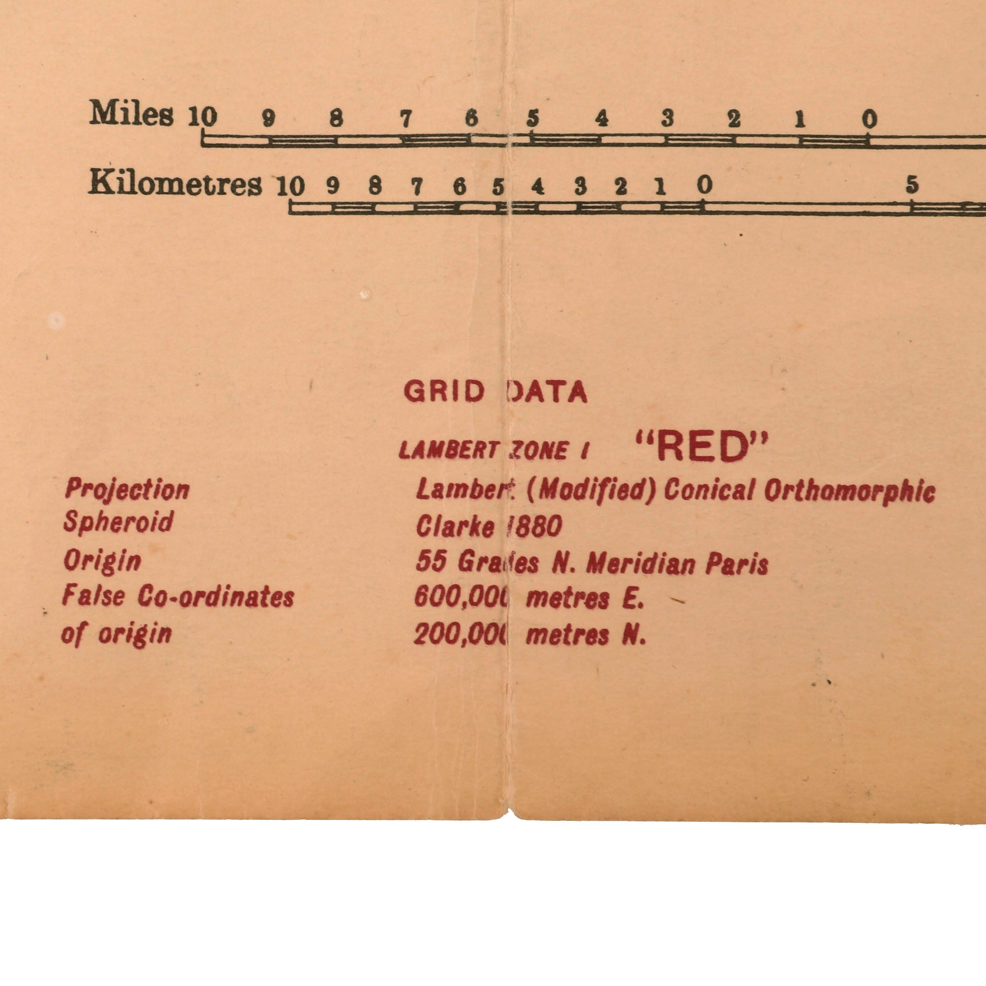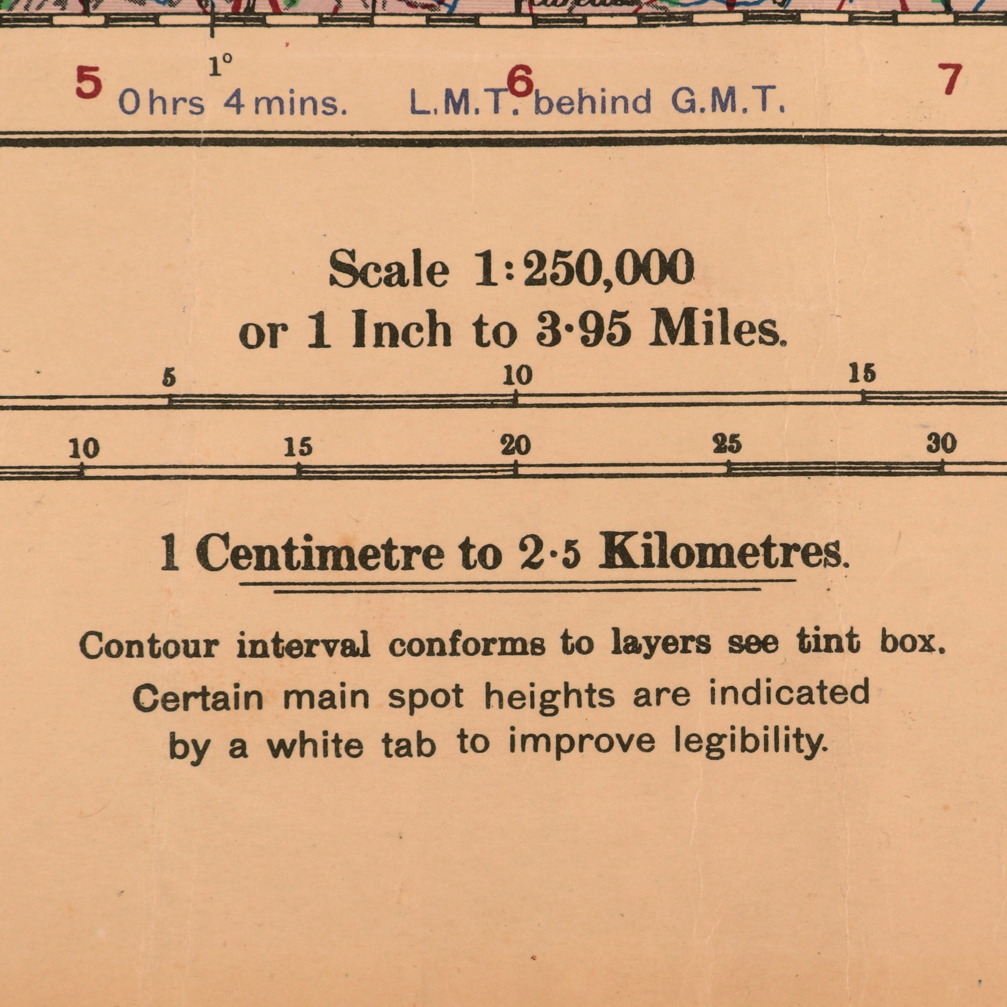 The map is 1 : 250,000 scale and measures approximately 34" x 32". There is some damage to the edges as shown and it has been folded several times which creates creases. This example would be best displayed in a frame. Overall condition is very good.