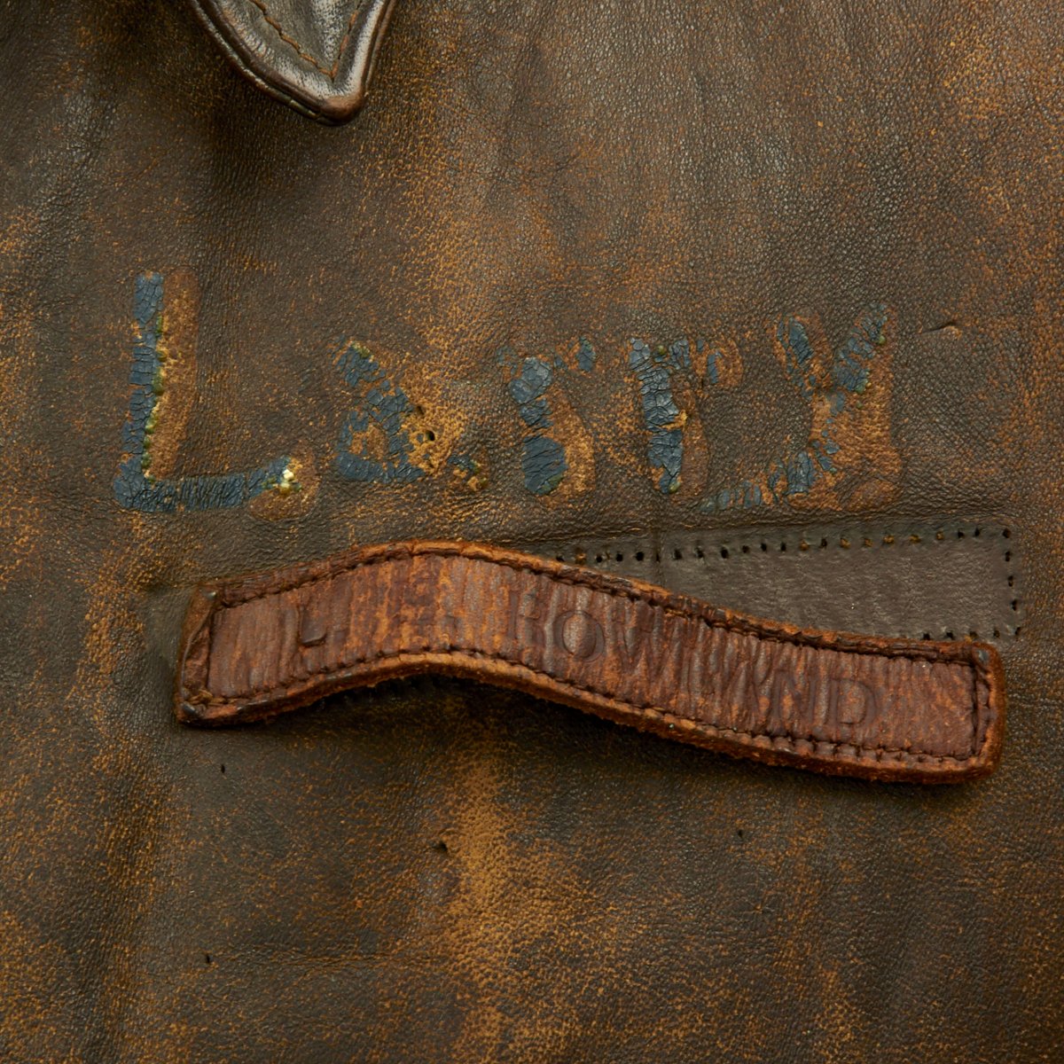Front of jacket has a painted script Larry and a leather embossed named tag the read L.E. ROWLAND.