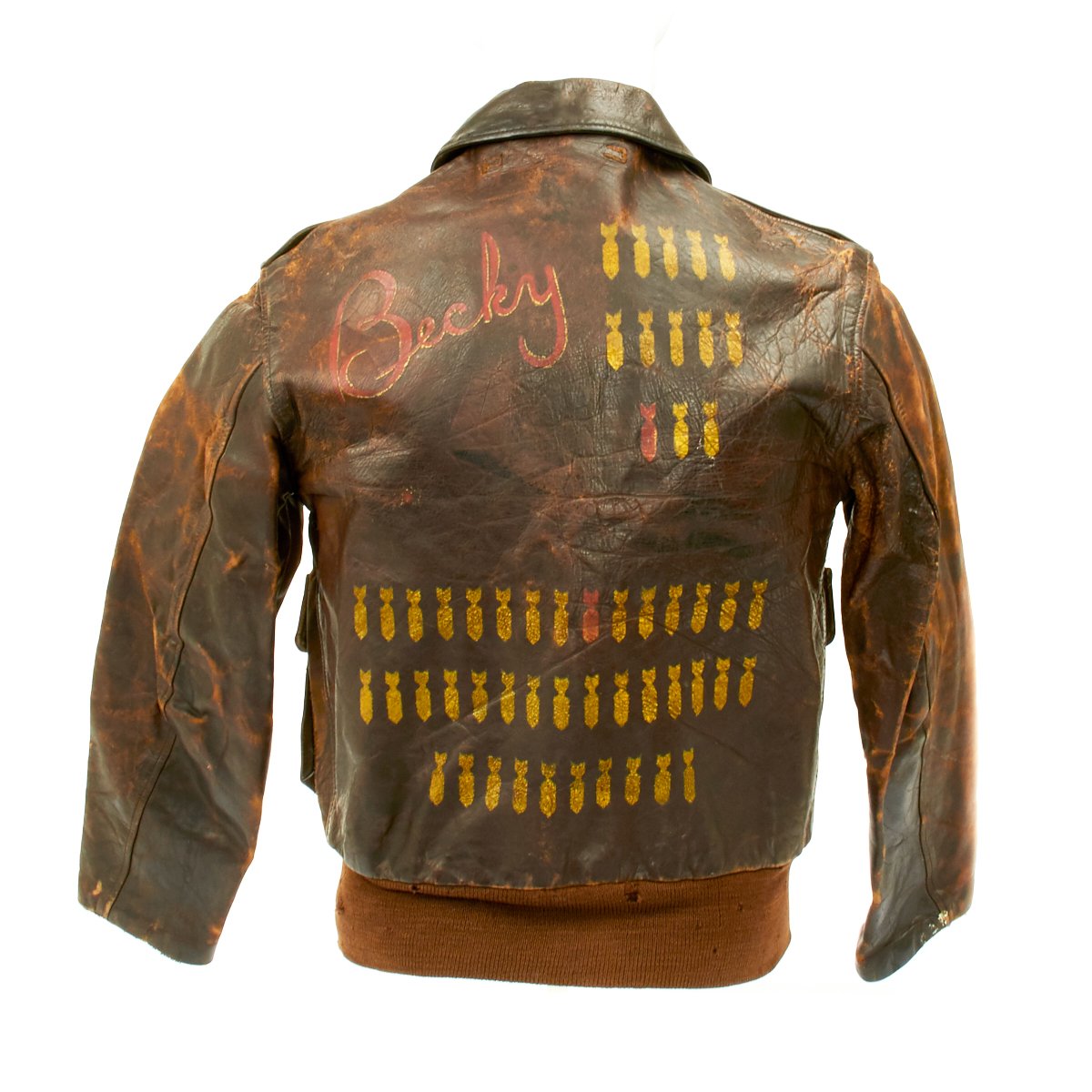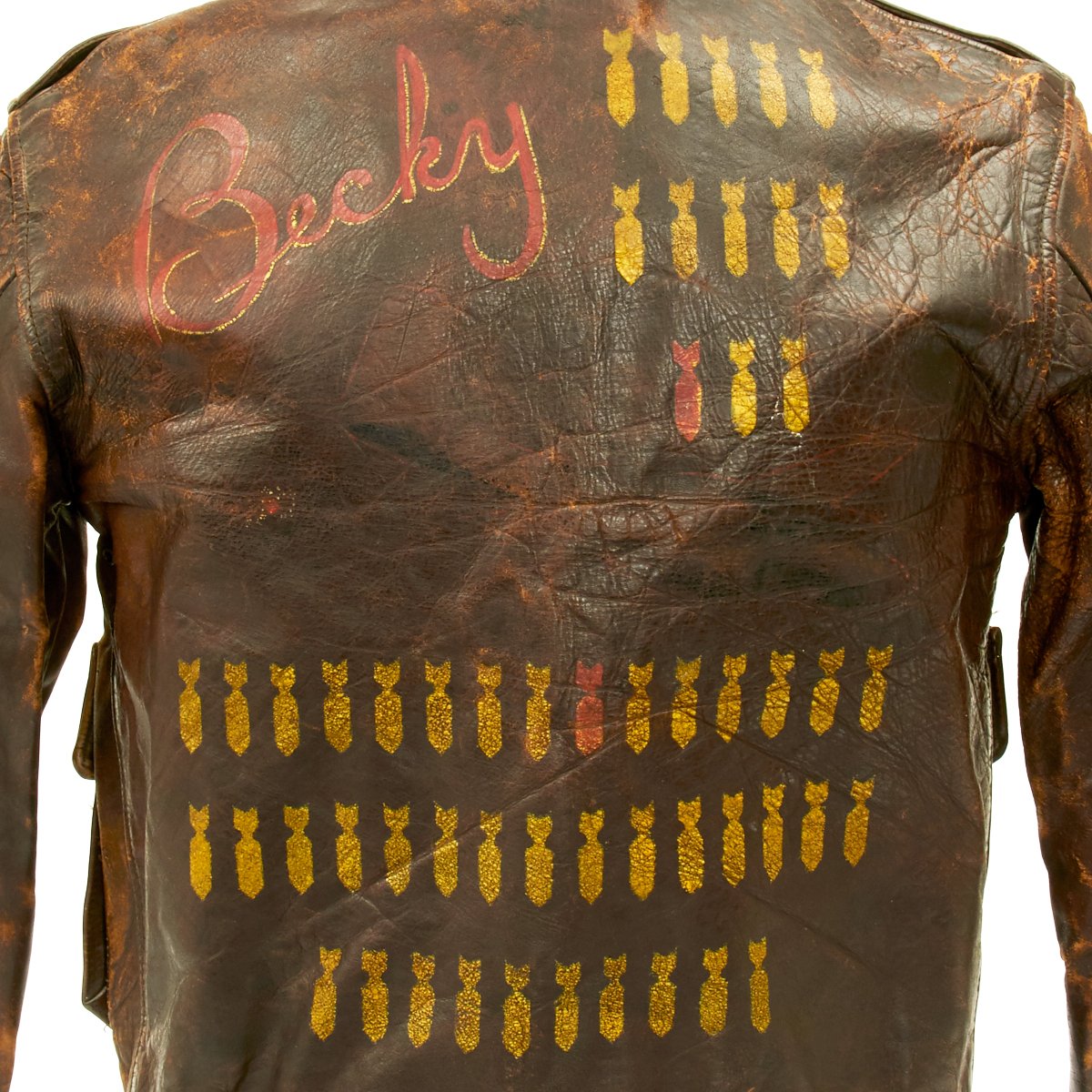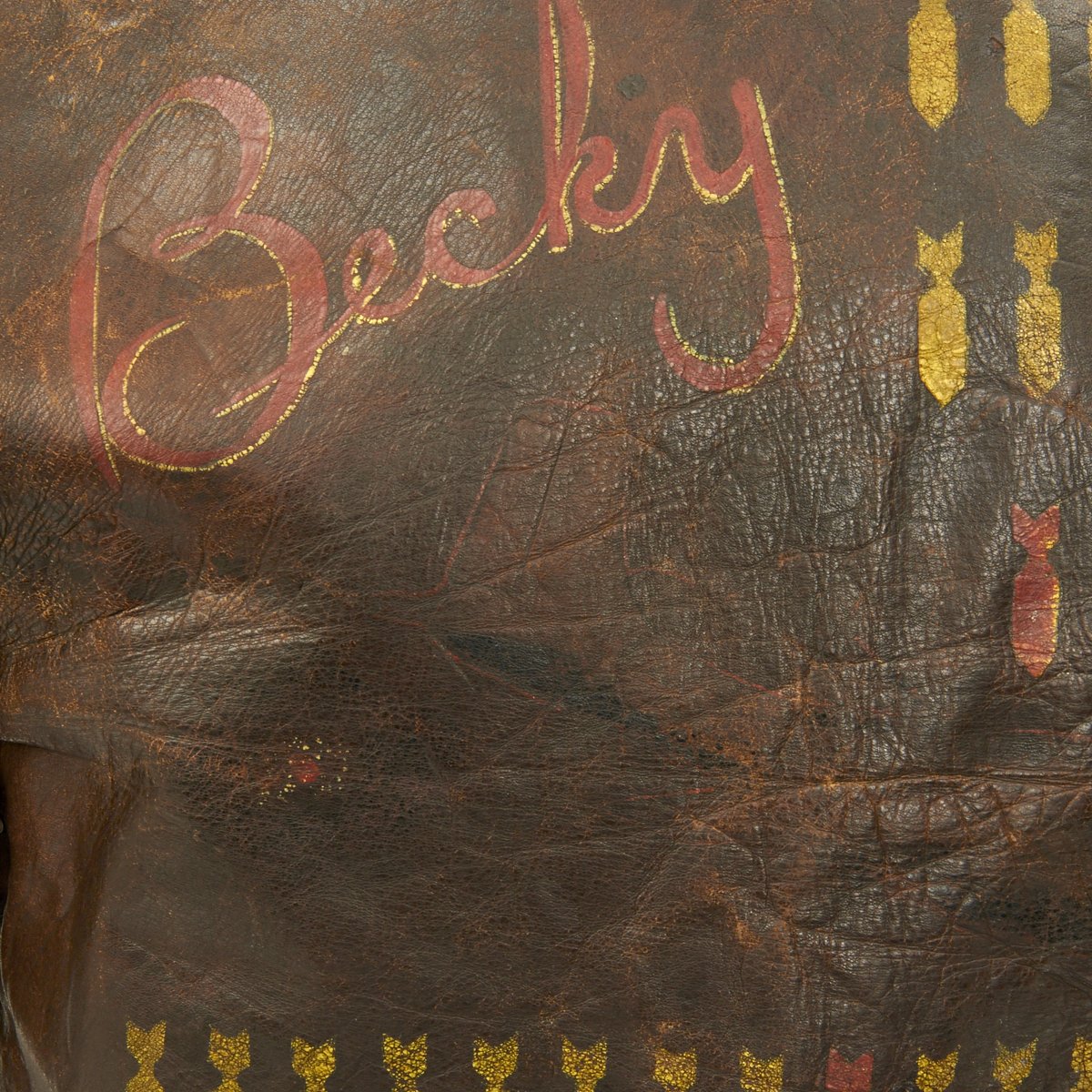 Painted art on the reverse featuring the A-20 Havoc’s name Becky along with 51 yellow bombs (indicating successful missions flown) and 2 red bombs which signify a bombing mission flown on D-Day and the first mission flown for target in Germany.