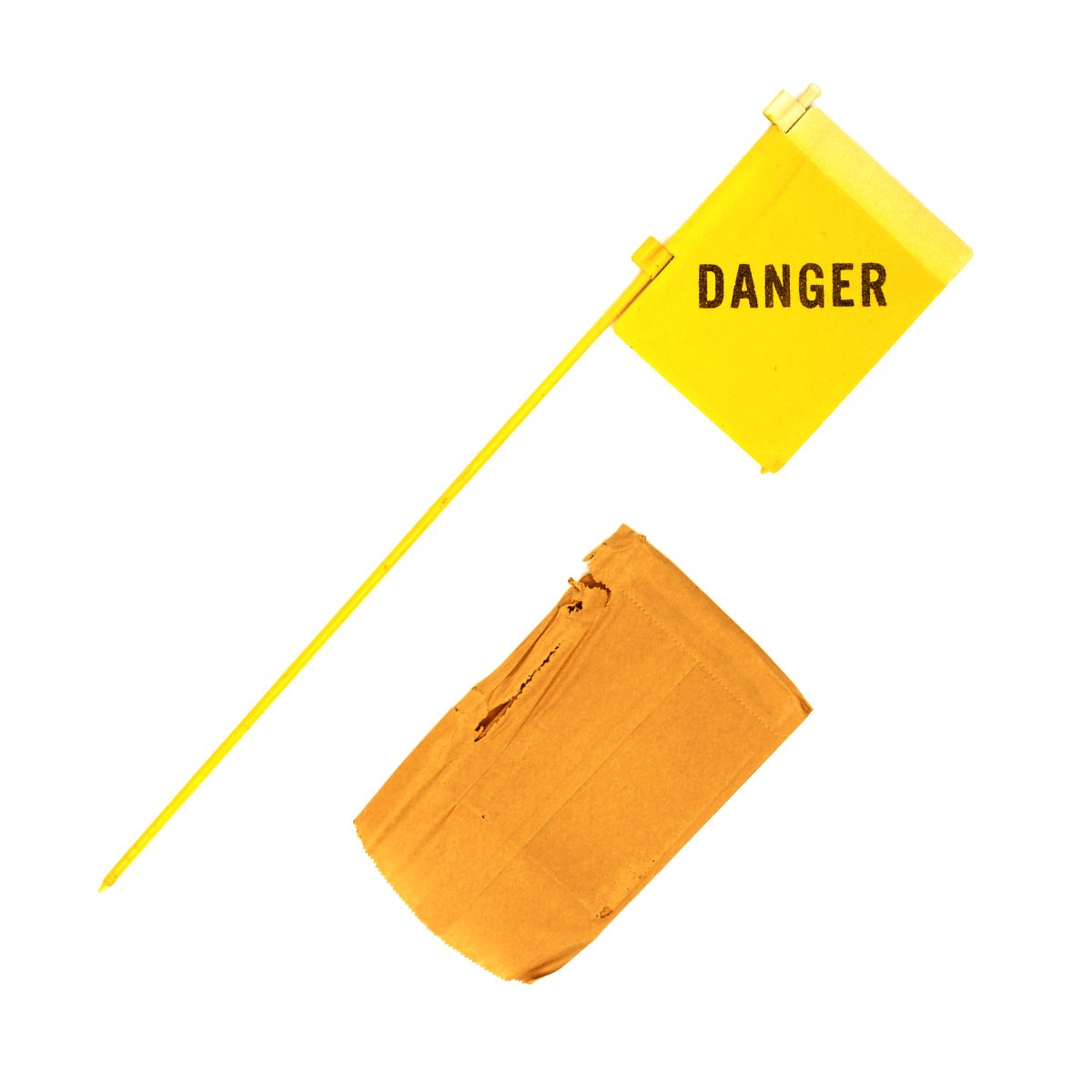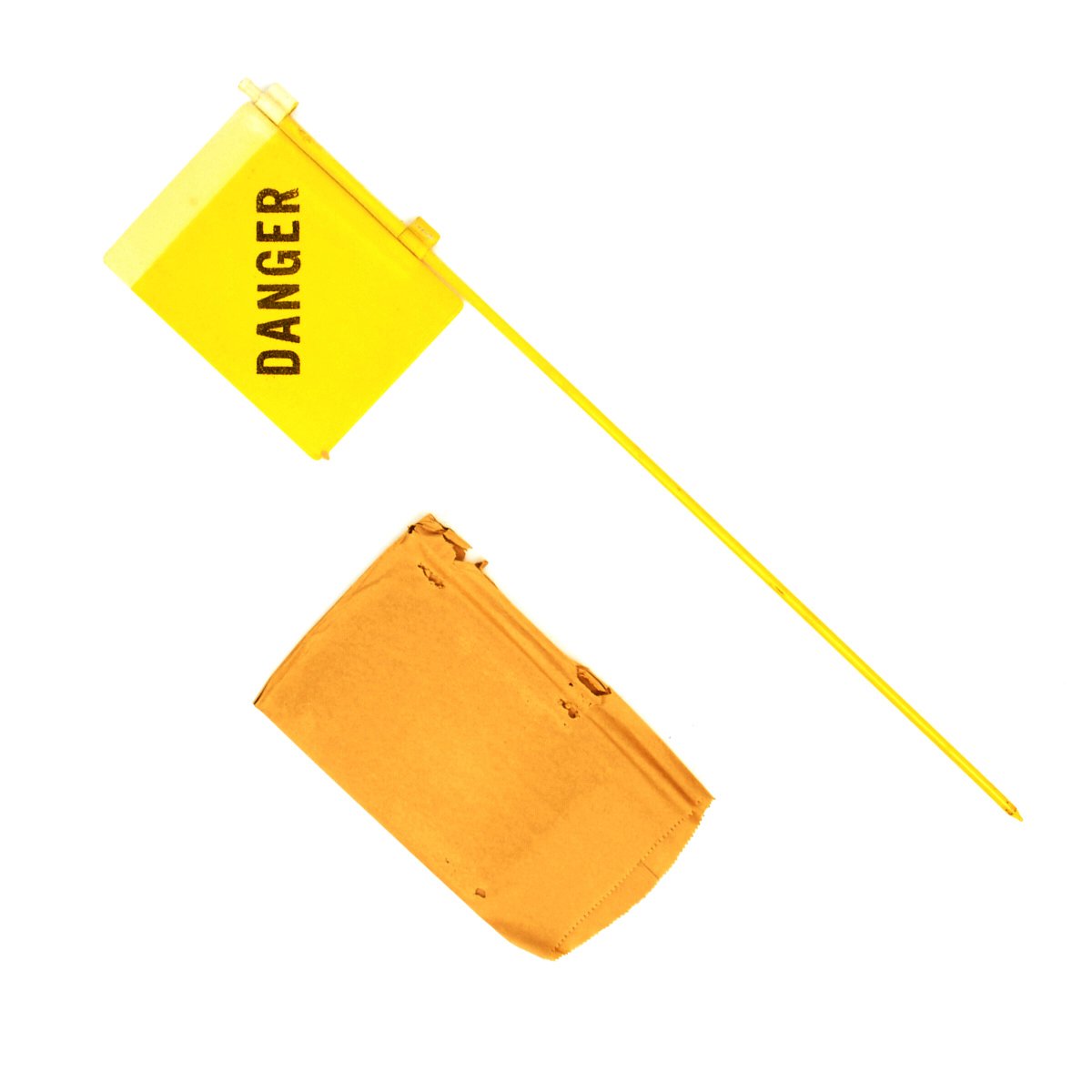 - Original Item: Very Few Available. Issued in WWII as part of the Army WWII mine field marking kit these are unissued New Old Stock 5 1/2" x 4 1/4" metal yellow fluorescent flags marked DANGER on 20" metal posts. Most have original paper wrapping. These markers were used by U.S. World War Two American mine detector teams to mark the location of enemy landmines. Very useful!
