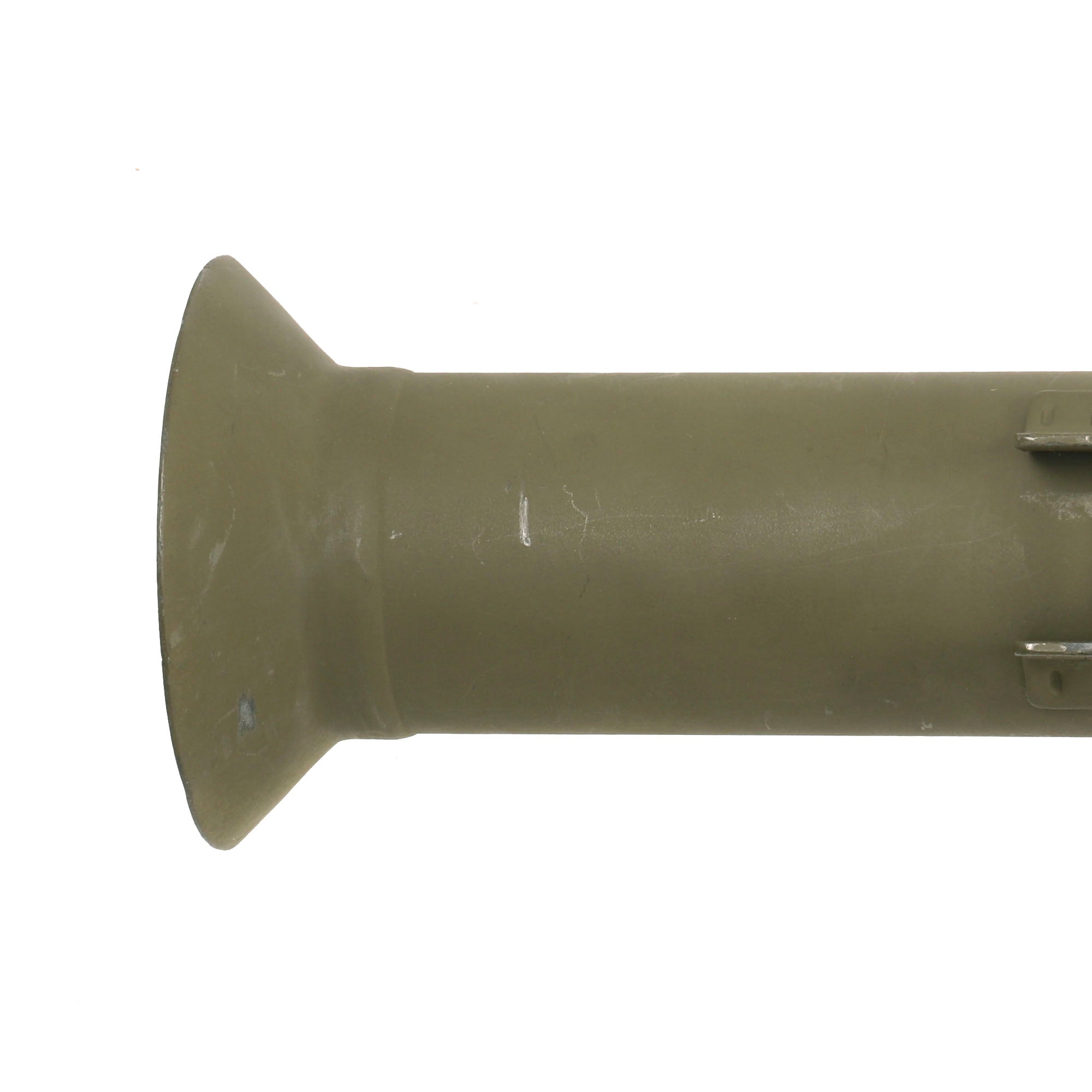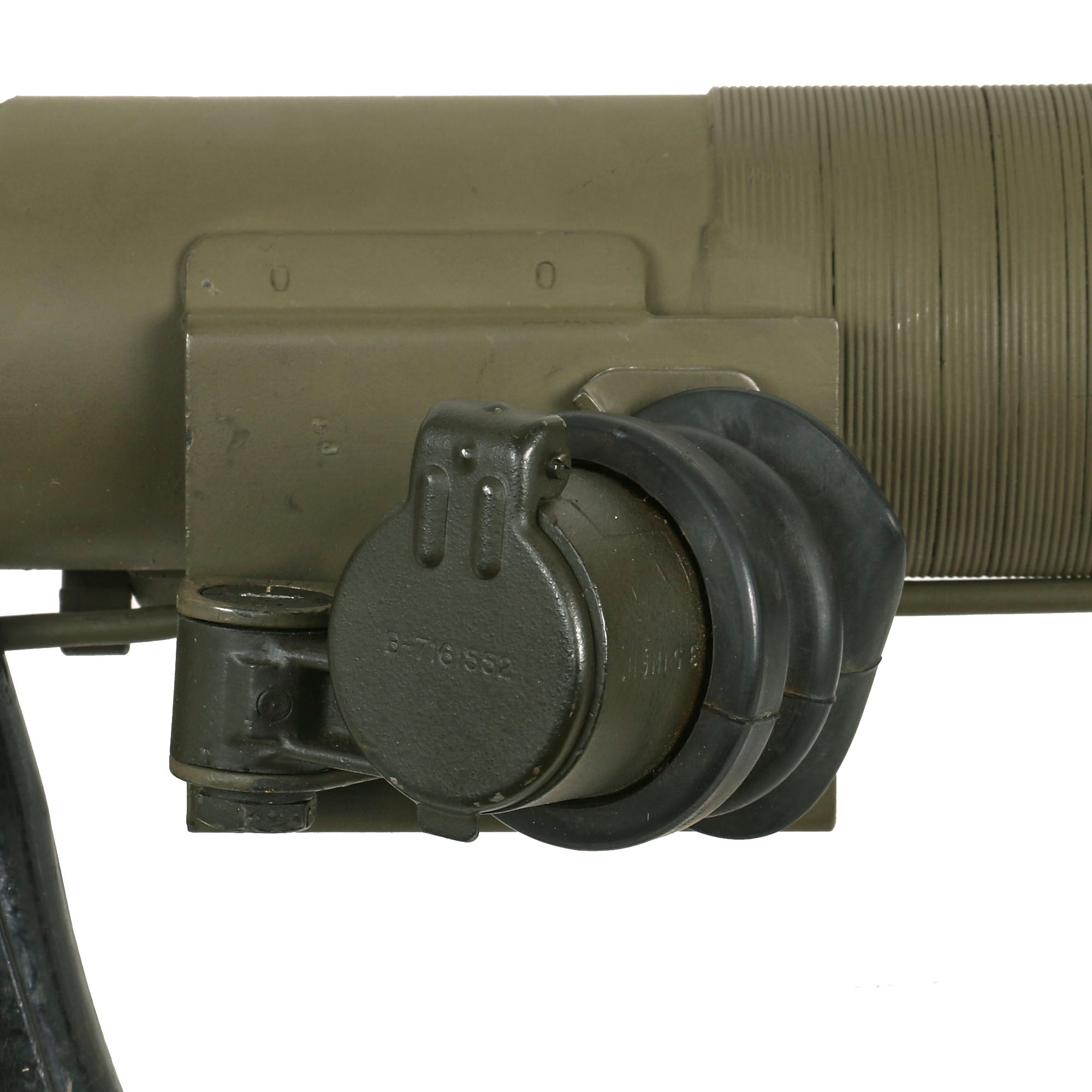 The tube is marked with serial number 92676, though we cannot see any maker marking. It is also marked M9A1 in several locations by the connector joint on the front portion. It has the original optical sight present, and even has an original rubber eye cup, which is still soft! It looks to have been completely stripped and repainted after demilitarization using period correct paint, giving it at fantastic look.