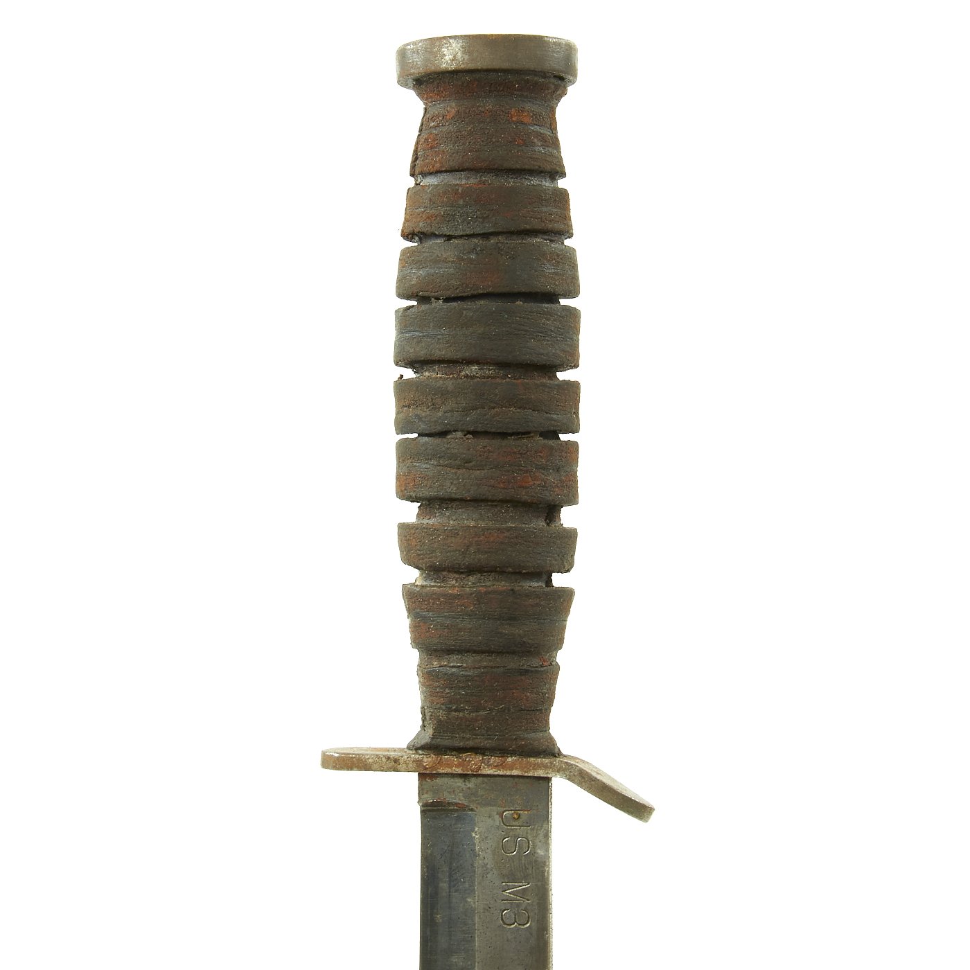 A very nice example of an early issue blade marked M3 knife from a very scarce maker, in an early leather scabbard. Ready to add to your WWII edged weapon collection!