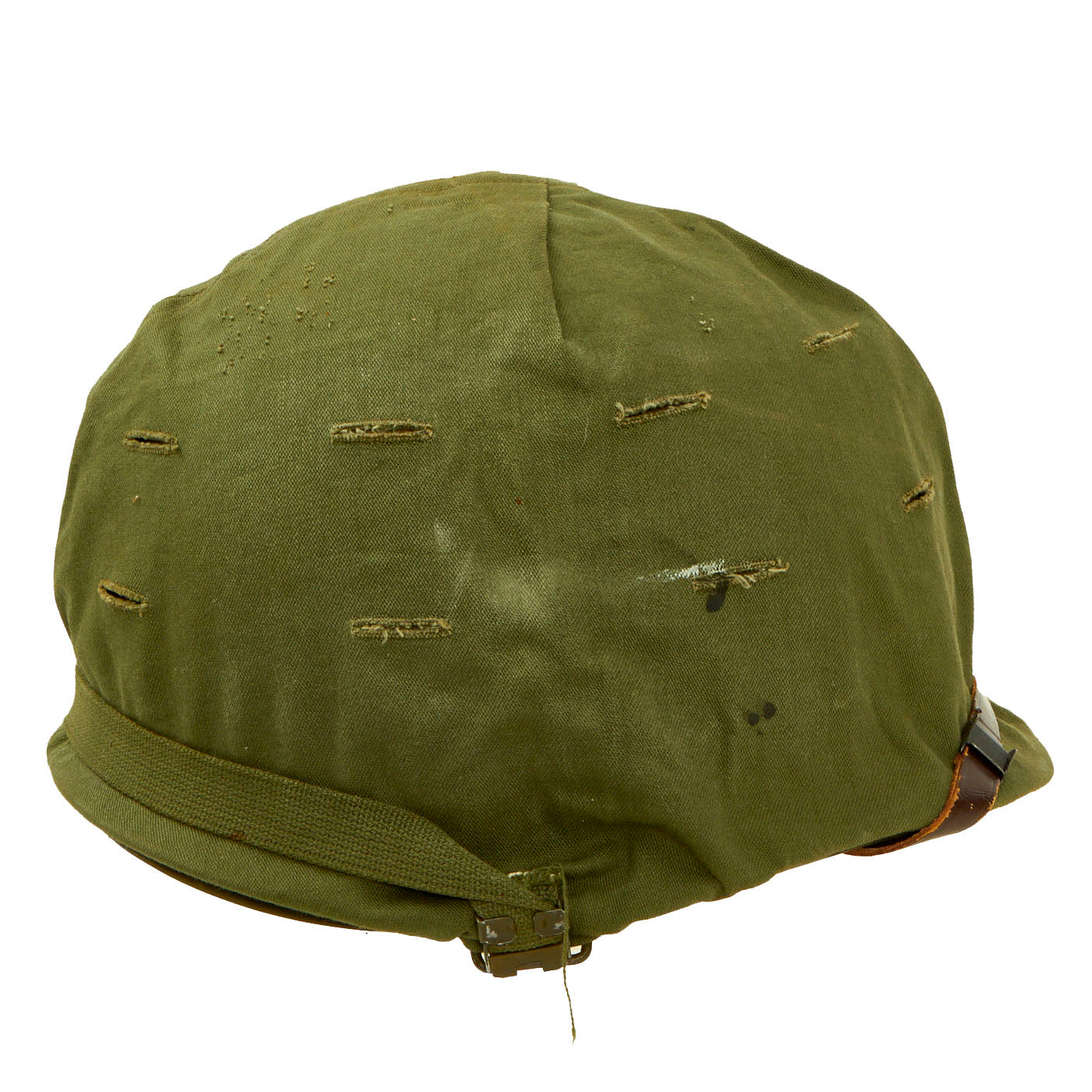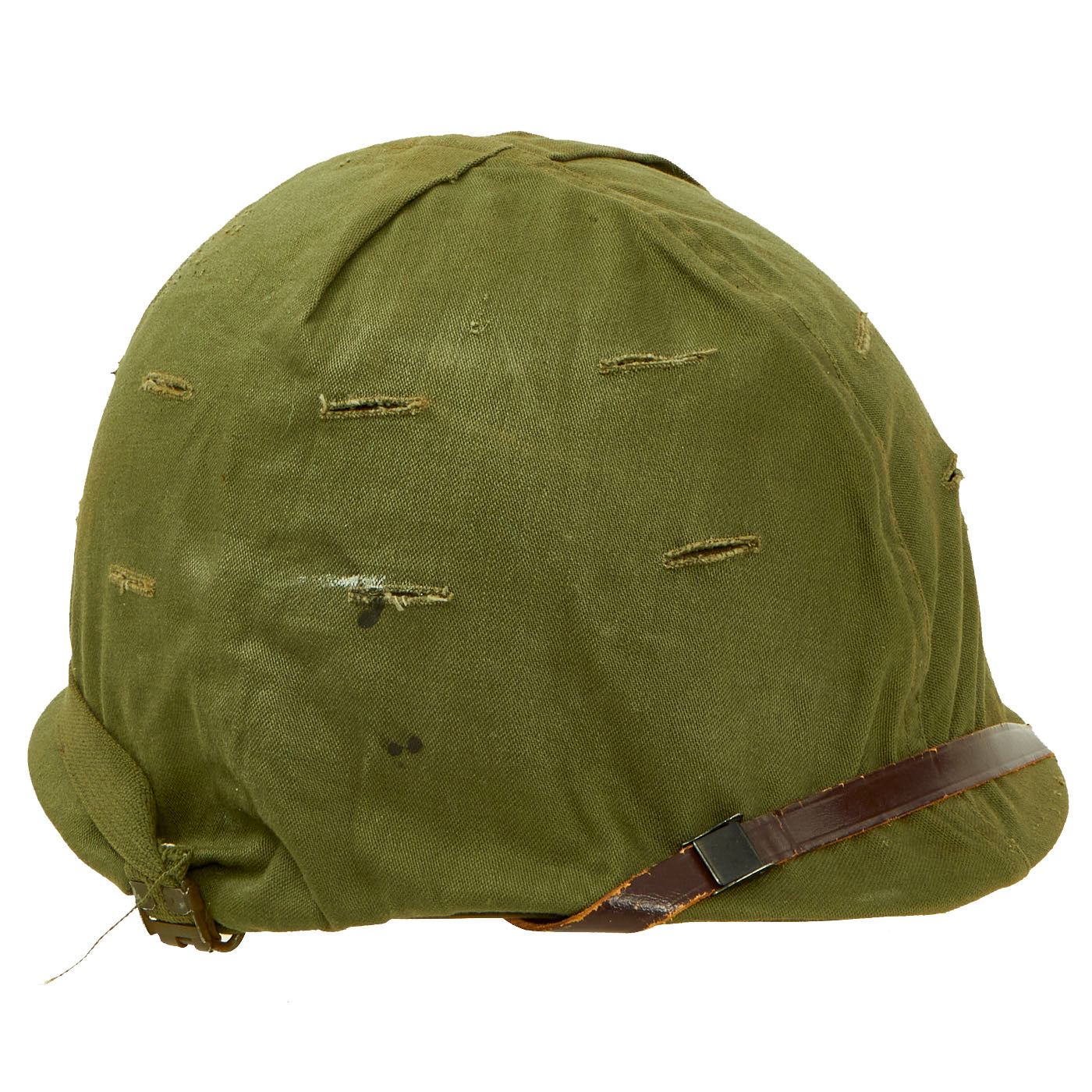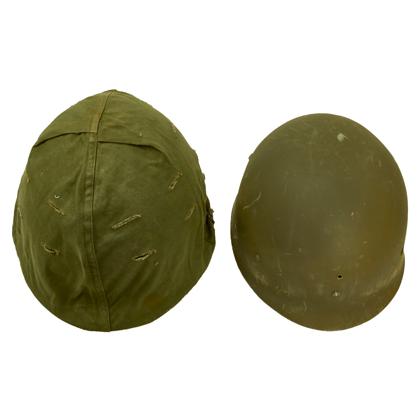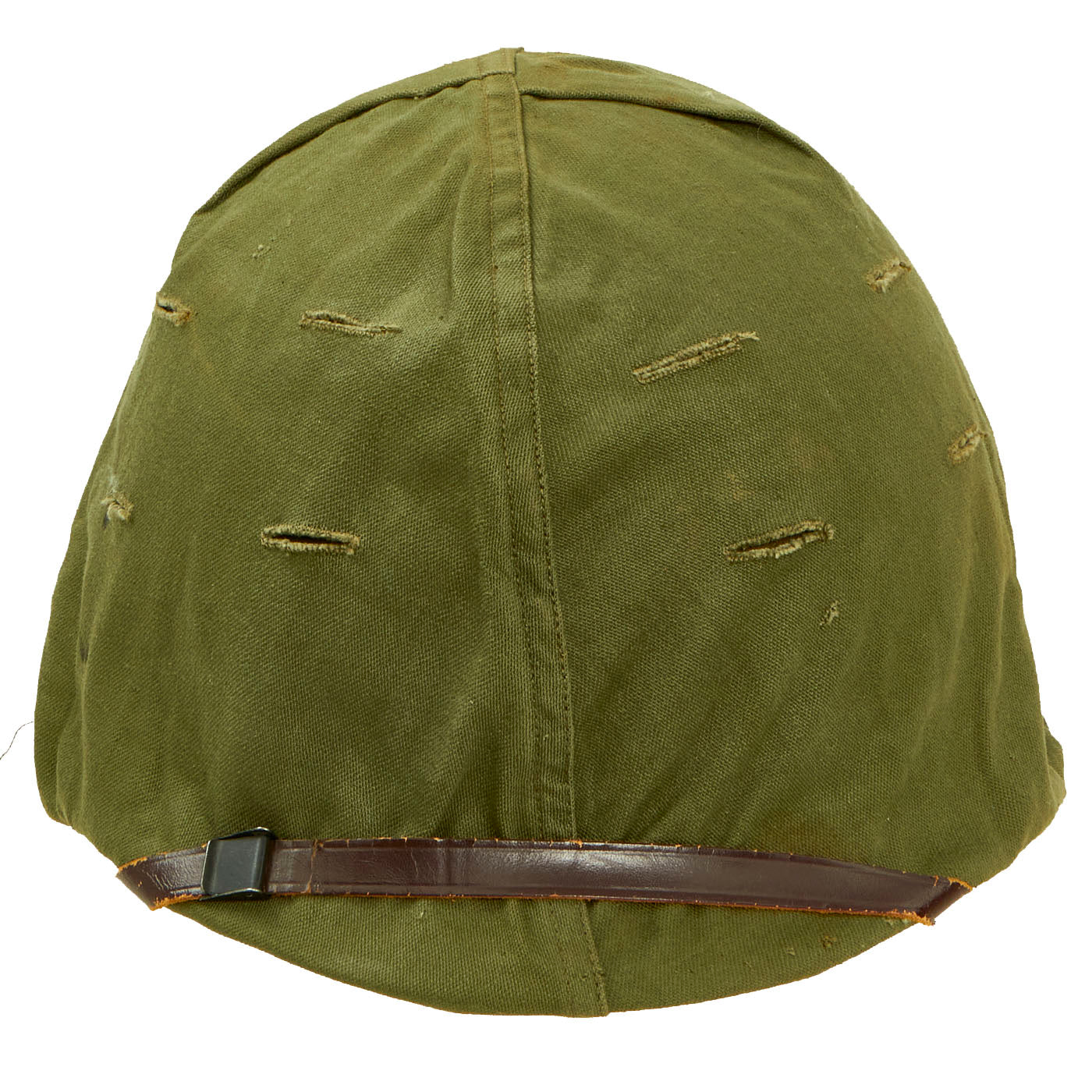Original Item: Only One Available. This is a very nice WWII McCord M1 Helmet shell which was depot refinished for use during the Korean War. The helmet is matched with a lovely 1951 dated CAPAC liner. The OD Green helmet cover is an early Vietnam War example and is in lovely condition, this was not an uncommon site to see in Southeast Asia in the early 1960s.