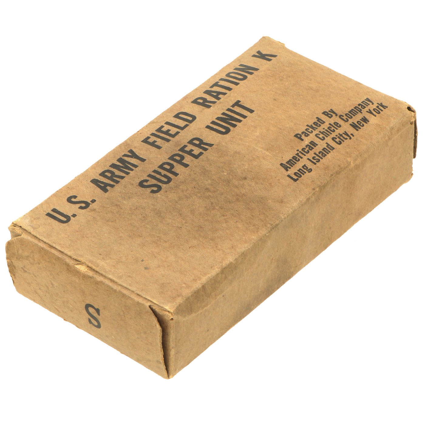 Original Items: Only One Available.The K-ration was an individual daily combat food ration which was introduced by the United States Army during World War II. It was originally intended as an individually packaged daily ration for issue to airborne troops, tank crews, motorcycle couriers, and other mobile forces for a short duration. The K-ration provided three separately boxed meal units: breakfast, dinner (lunch) and supper (dinner).