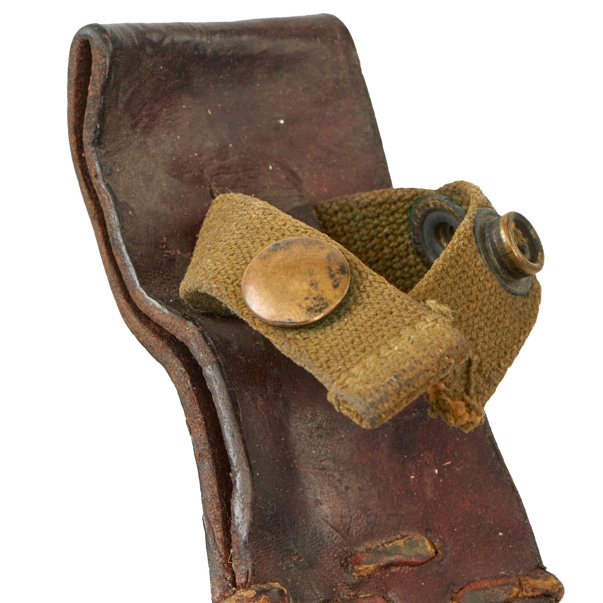 This sheath is in lovely condition, showing some age, but still fully functional. It is a “theater made” example and fits the knife nicely.