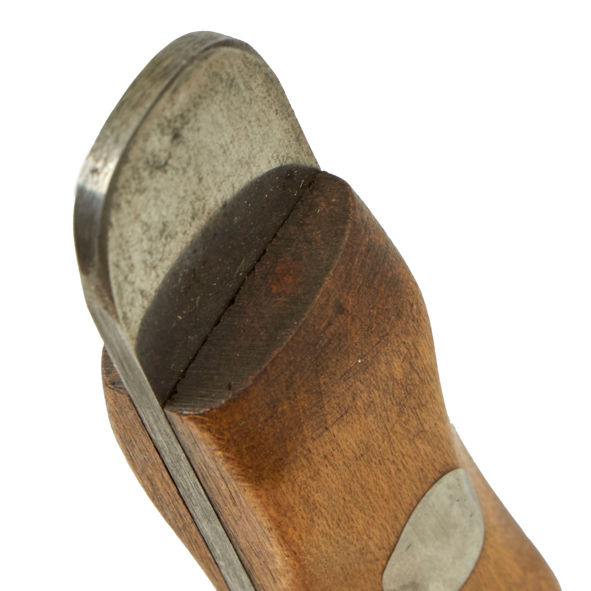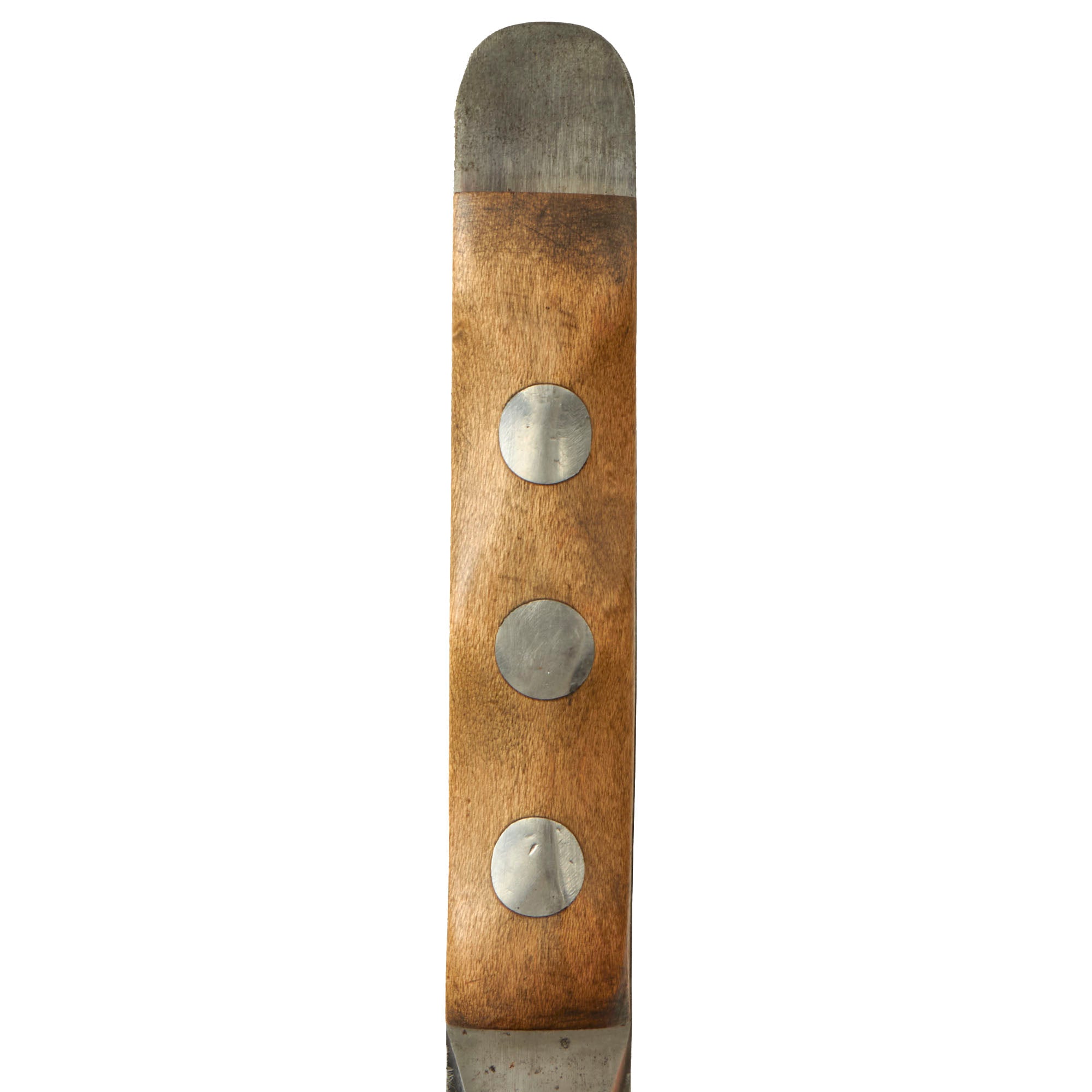 The original EK knives were made of Nickel-Chrome-Molybdenum Steel, likely 4340, which provided durability and some rust resistance. During the war, 4340 steel was scarce as it was commonly used in aircraft manufacturing. The government's decision to allow EK to continue using this steel in his knives was a testament to their quality. EK opted to use maple wood handles in place of compressed leather washers and affixed them to the full tang with lead-filled rivets, which could be pounded back into the handle if it became loose. EK believed that wood handles would resist rot better than leather. Additionally, each knife came with sandpaper to allow soldiers to customize the grip to fit their hand as desired, rather than relying on a factory-made grip.