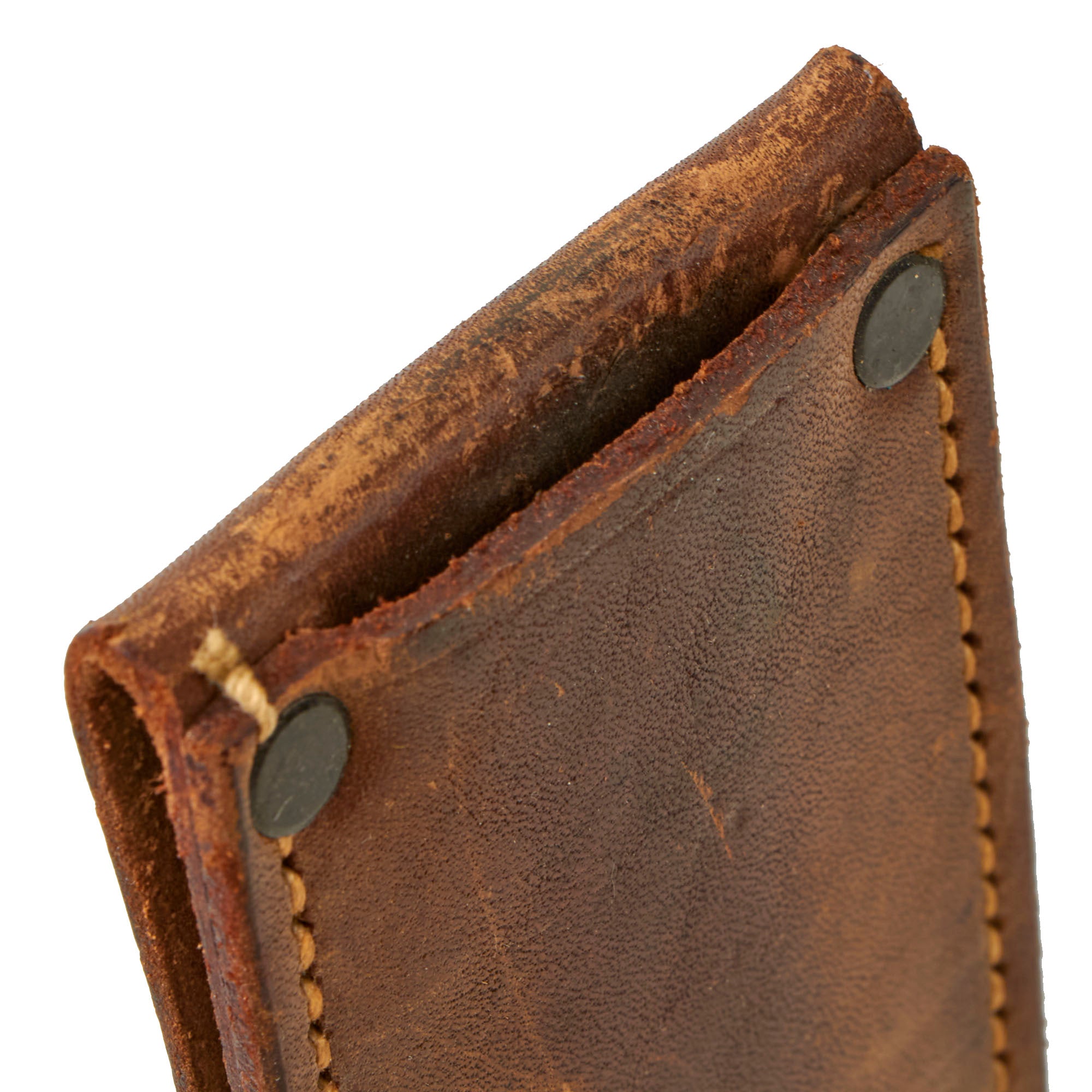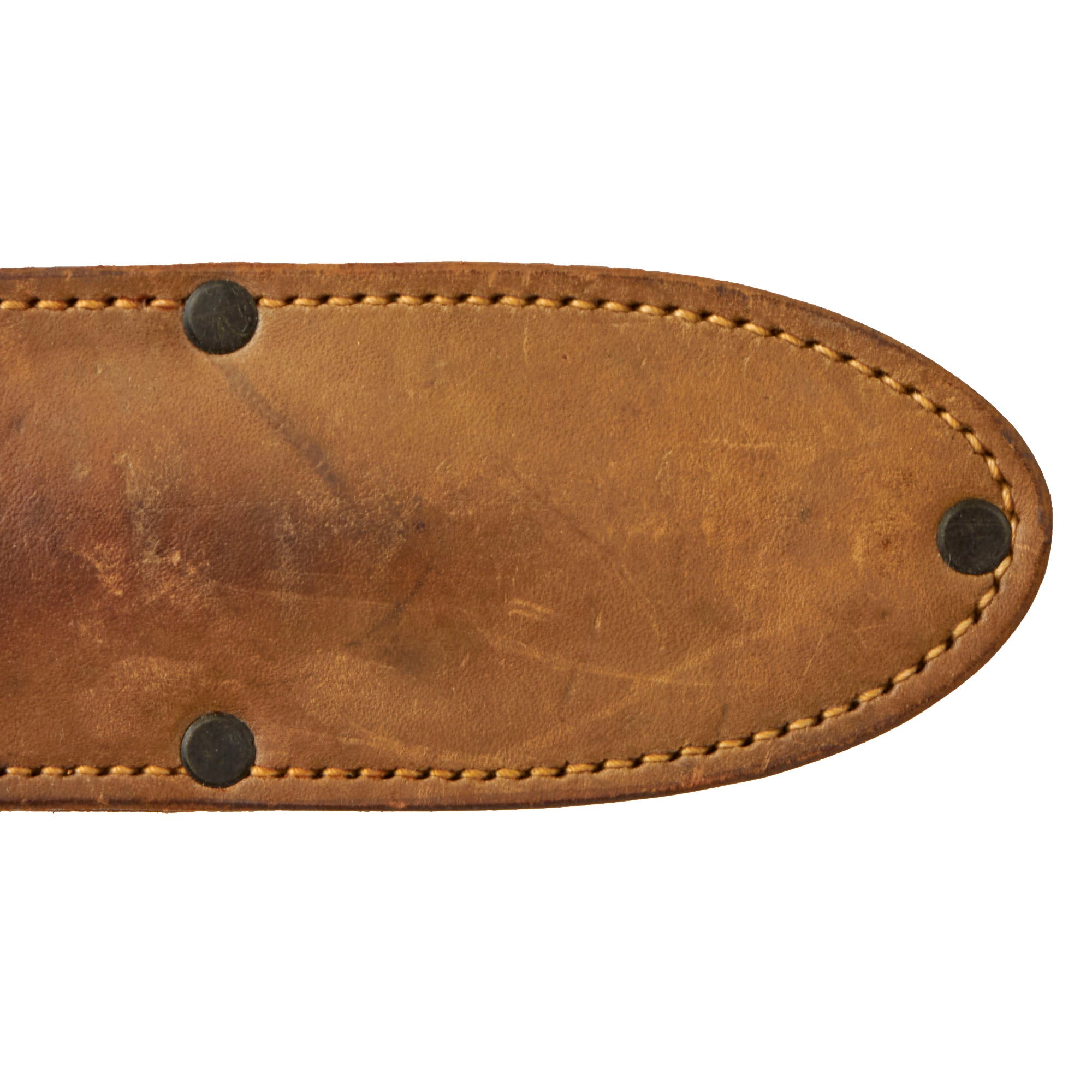 This sheath is in fantastic condition, while a correct Ek scabbard, this was seen being utilized with the very similar Ek Model 6. The leather is still soft with a lovely aged brown coloration and minimal staining. All five rivets are still present with tight stitching.