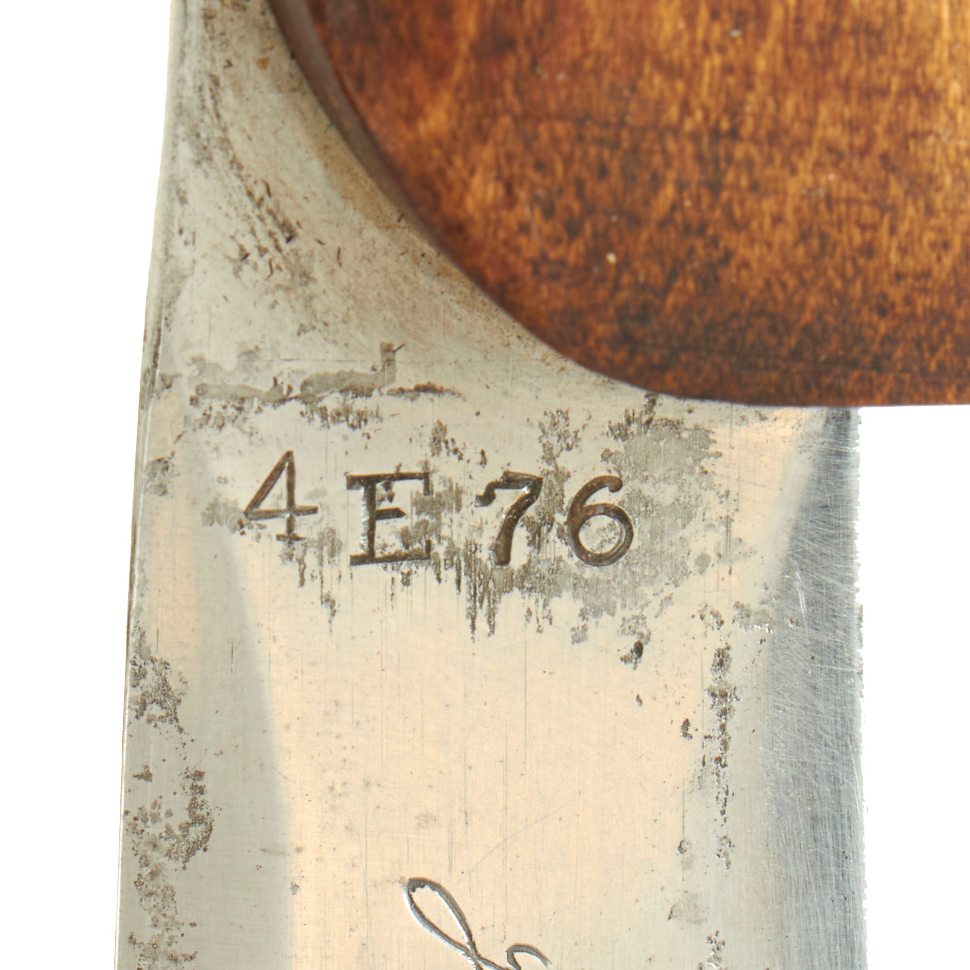 The first number on the blade is the model number (4); the subsequent numbers are the serial number, preceded by a letter of the alphabet (E76).