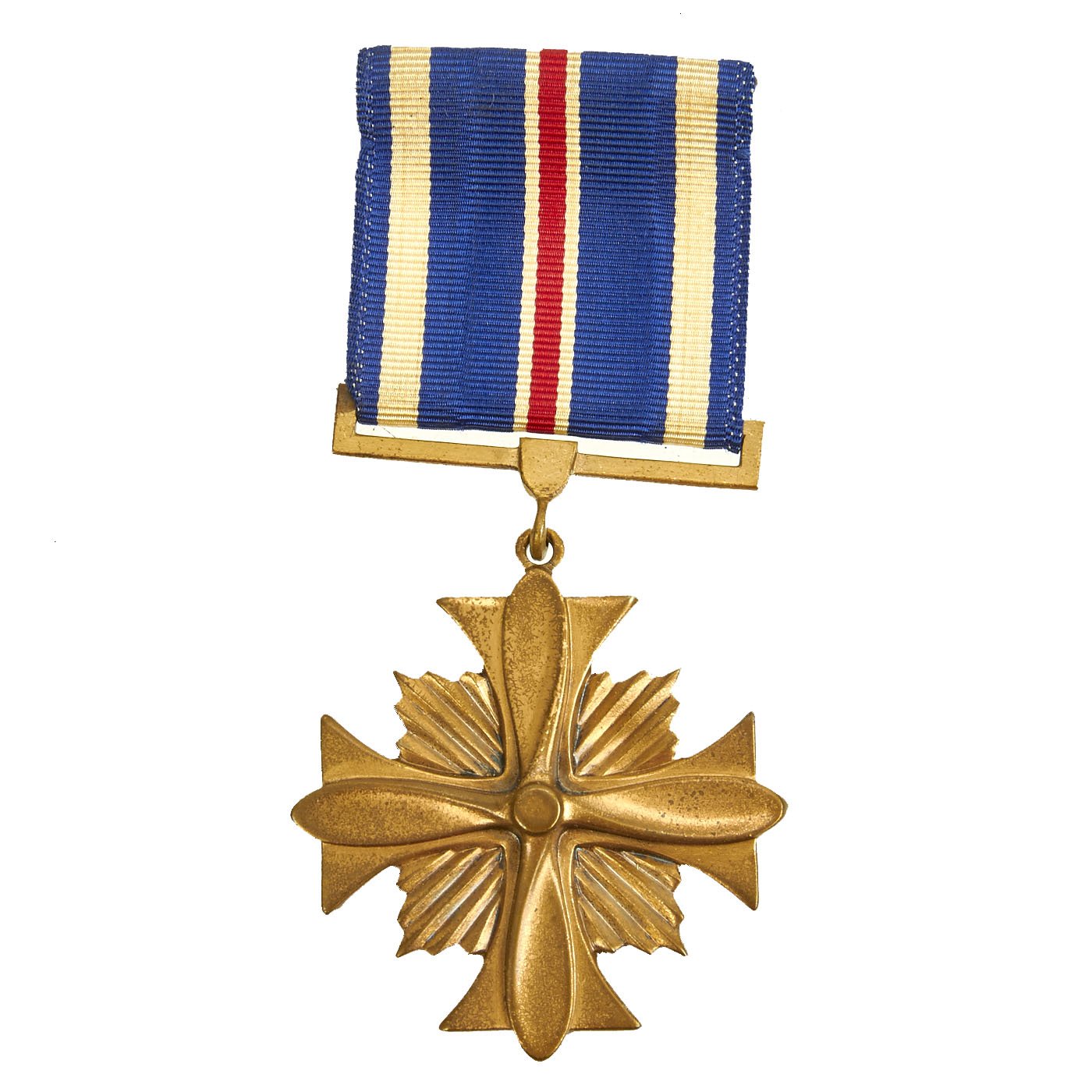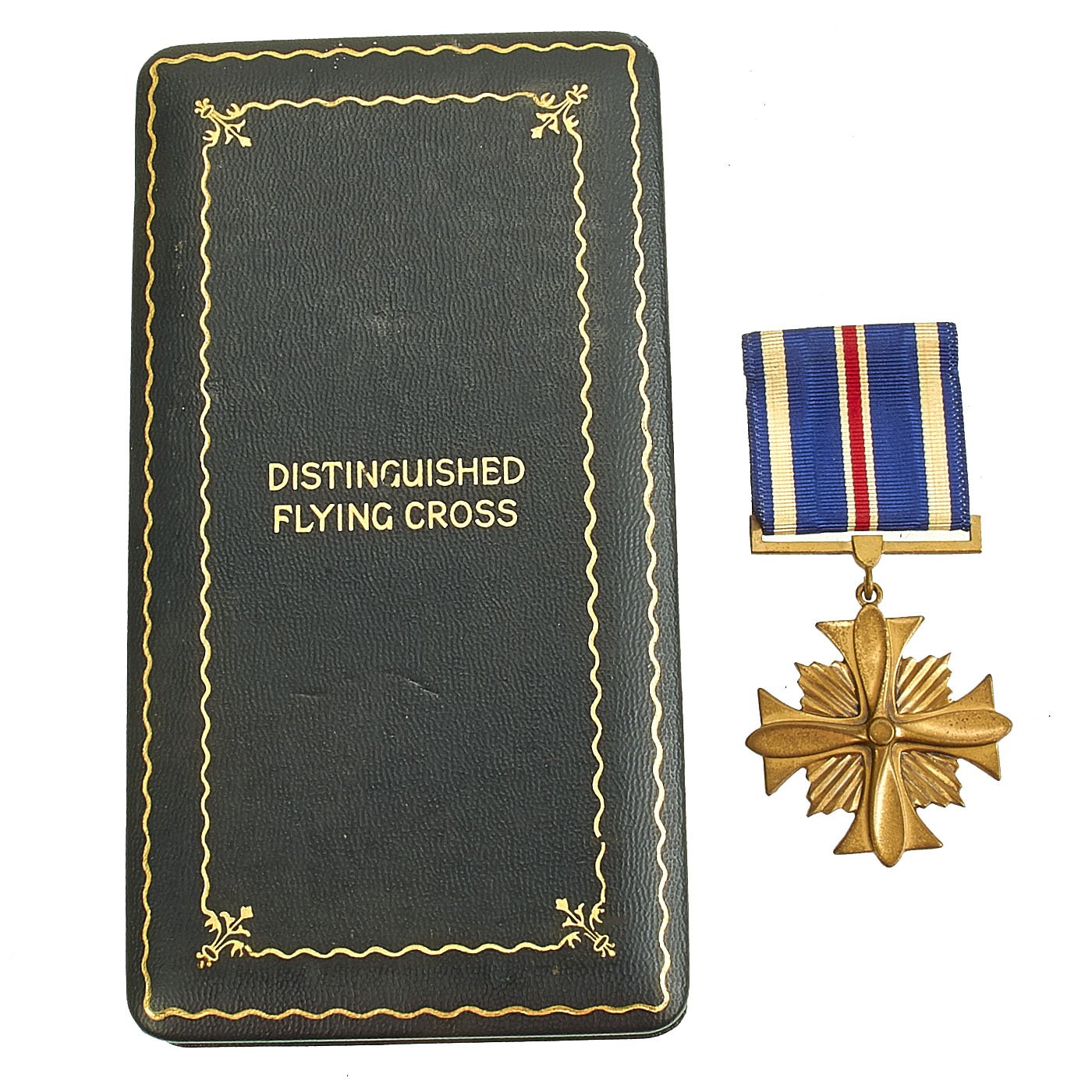 Original Item: One-of-a-kind. This is an excellent condition Distinguished Flying Cross (DFC) in original case its ribbon bar and buttonhole enamel badge. The media itself is engraved on the reverse: