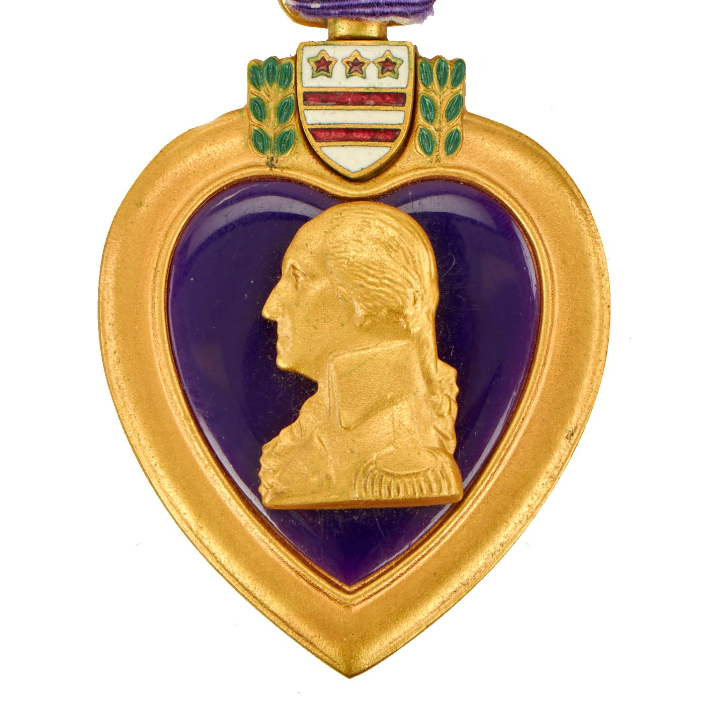 Original Item: Only One Available. The Purple Heart (PH) is a United States military decoration awarded in the name of the President to those wounded or killed while serving, on or after April 5, 1917, with the U.S. military. With its forerunner, the Badge of Military Merit, which took the form of a heart made of purple cloth, the Purple Heart is the oldest military award still given to U.S. military members – the only earlier award being the obsolete Fidelity Medallion. The National Purple Heart Hall of Honor is located in New Windsor, New York.