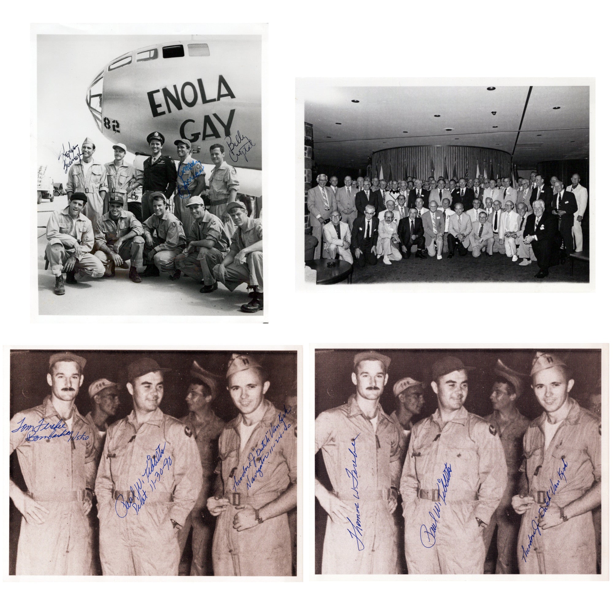 Original Items: Only One Lot Available. This is a wonderful set of Enola Gay photos that are live ink signed copies of the original period photos. These types of signatures were often acquired by individuals that attended airshows or other veteran events. It was quite common for these Veterans to be present at Militaria shows, air shows and even baseball card signing events. One of the photographs have the signatures dated during November 1990.