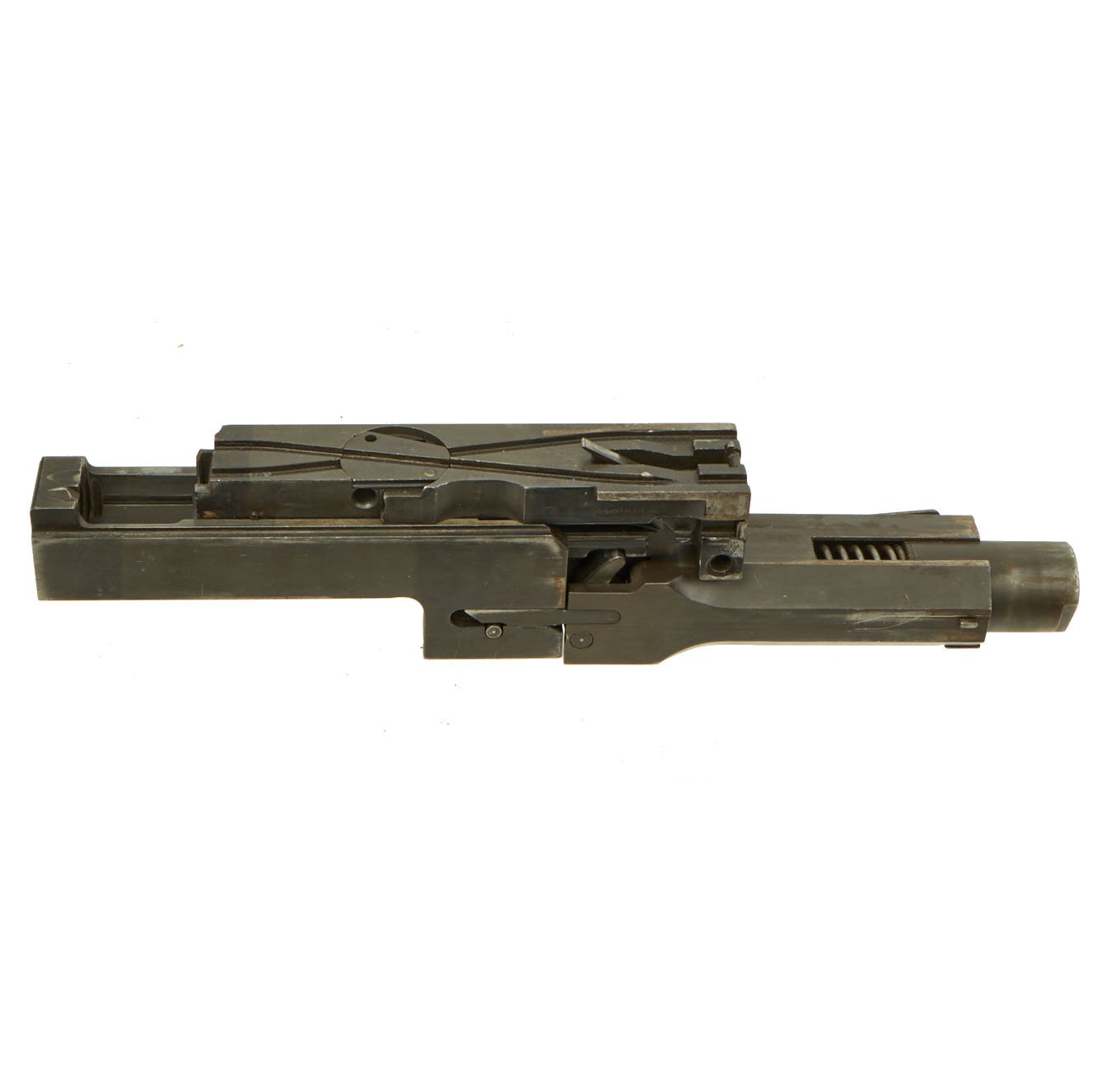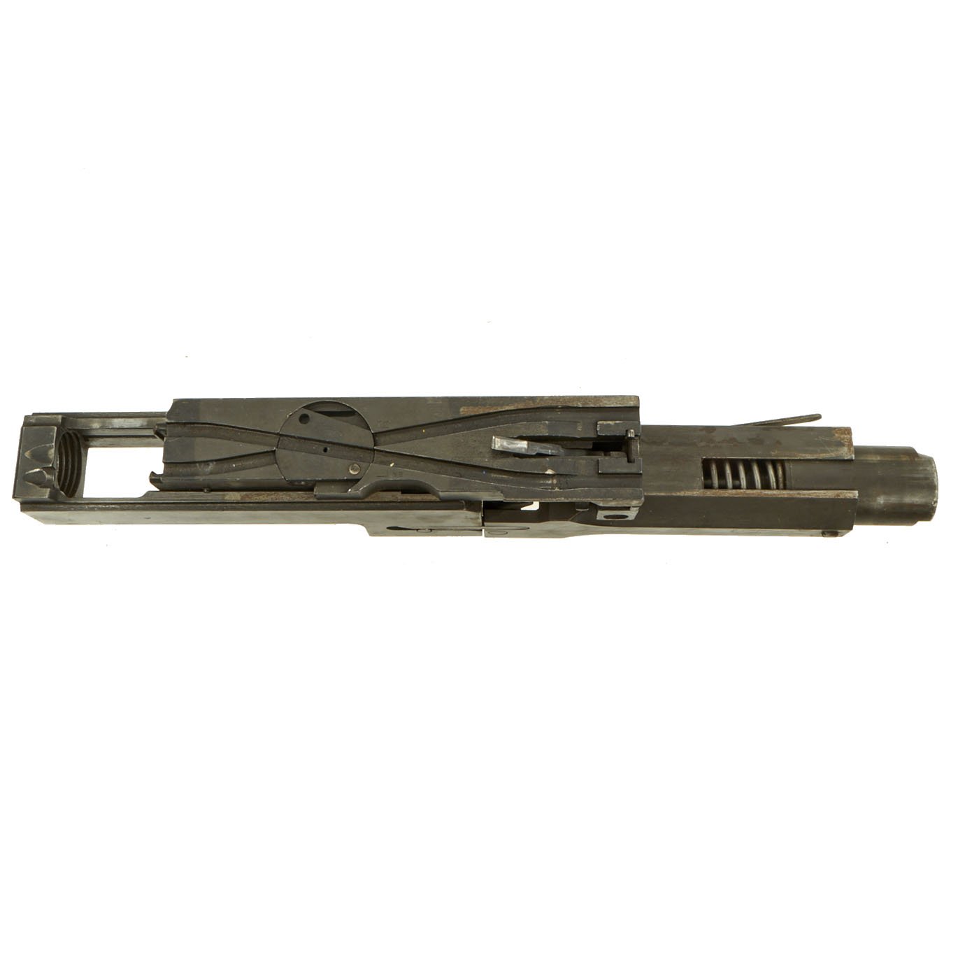 Many of the original internal components, including the bolt, barrel extension, and lock / buffer group were removed prior to deactivation, and we believe them to be intact. The top cover looks to be intact as well, and cocking handle assembly and frame parts look to be intact. There is no back plate included. All of the included parts are shown in the pictures.