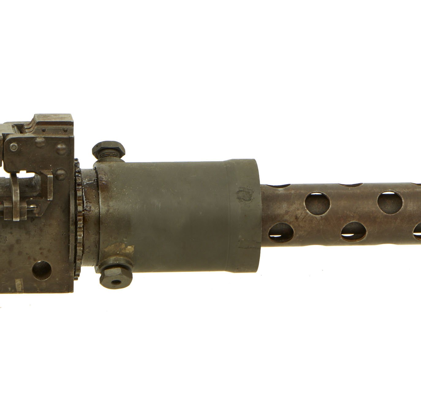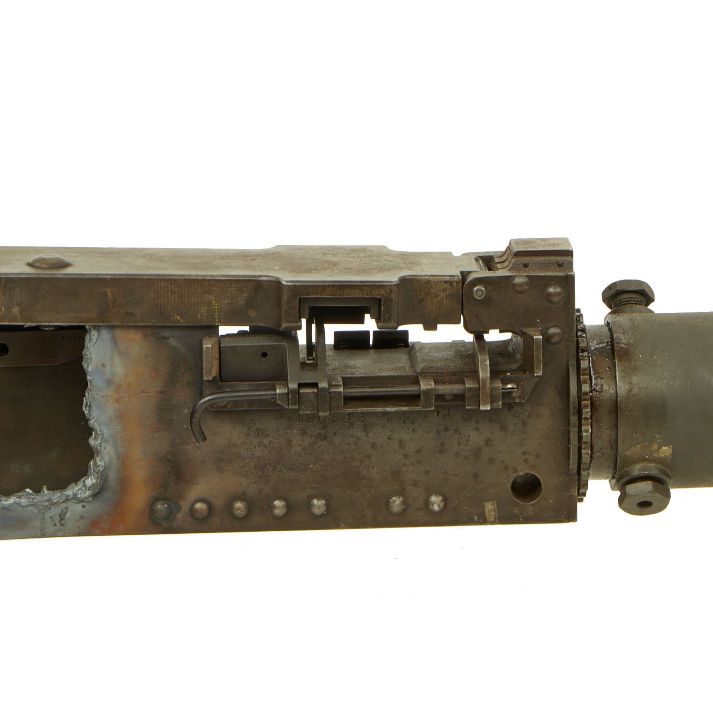 Original Item: Only One Available. Just purchased from a private collection, this is an incredible Browning AN/M2 Machine Gun parts set, partly assembled into a display gun. The right hand side plate has been destroyed per BATF requirements, cut away with a flame torch. The original barrel deactivated by welding up the chamber, and welded into the barrel trunion. The barrel jacket still looks to be intact, and has a rotating bushing for mounting into an aircraft setup.