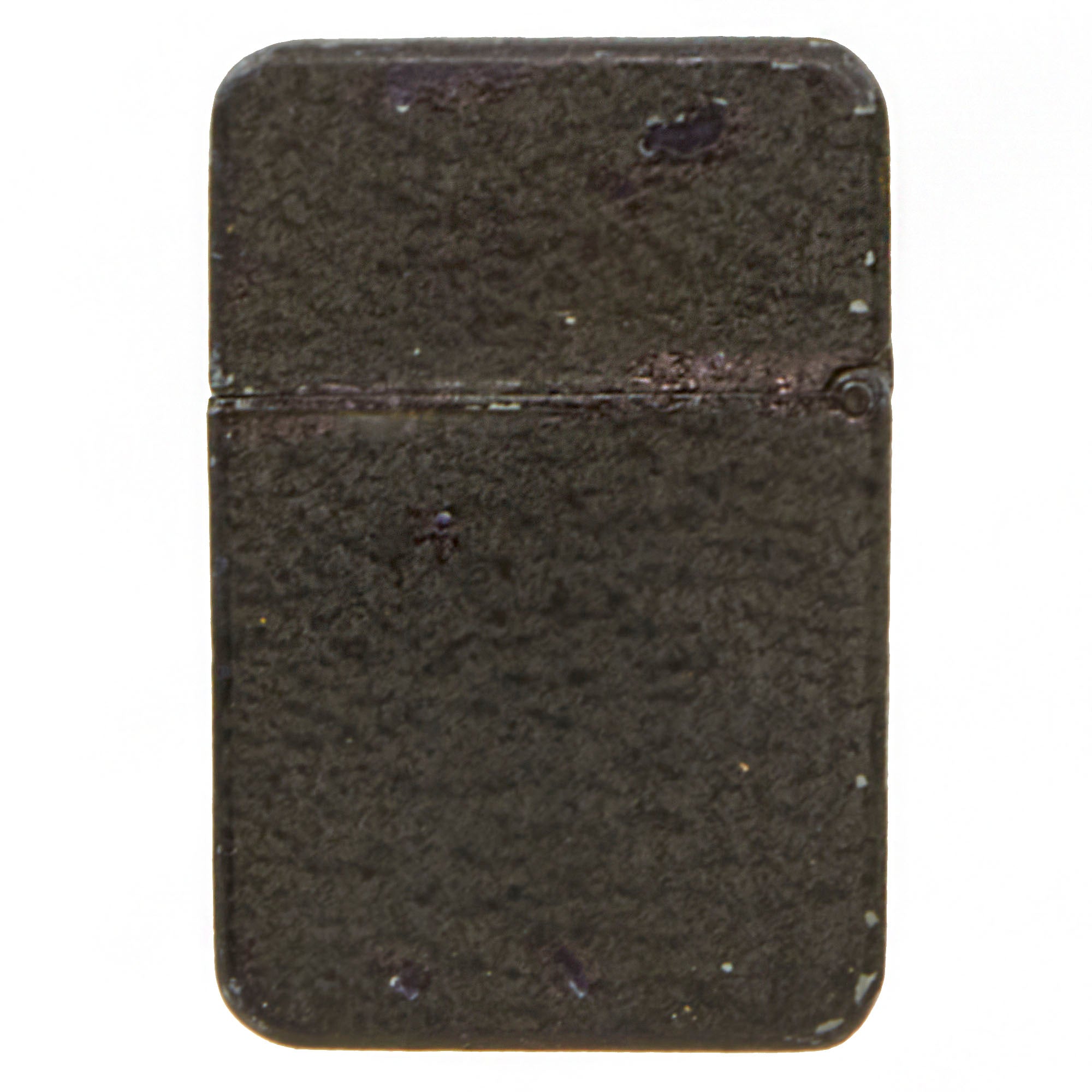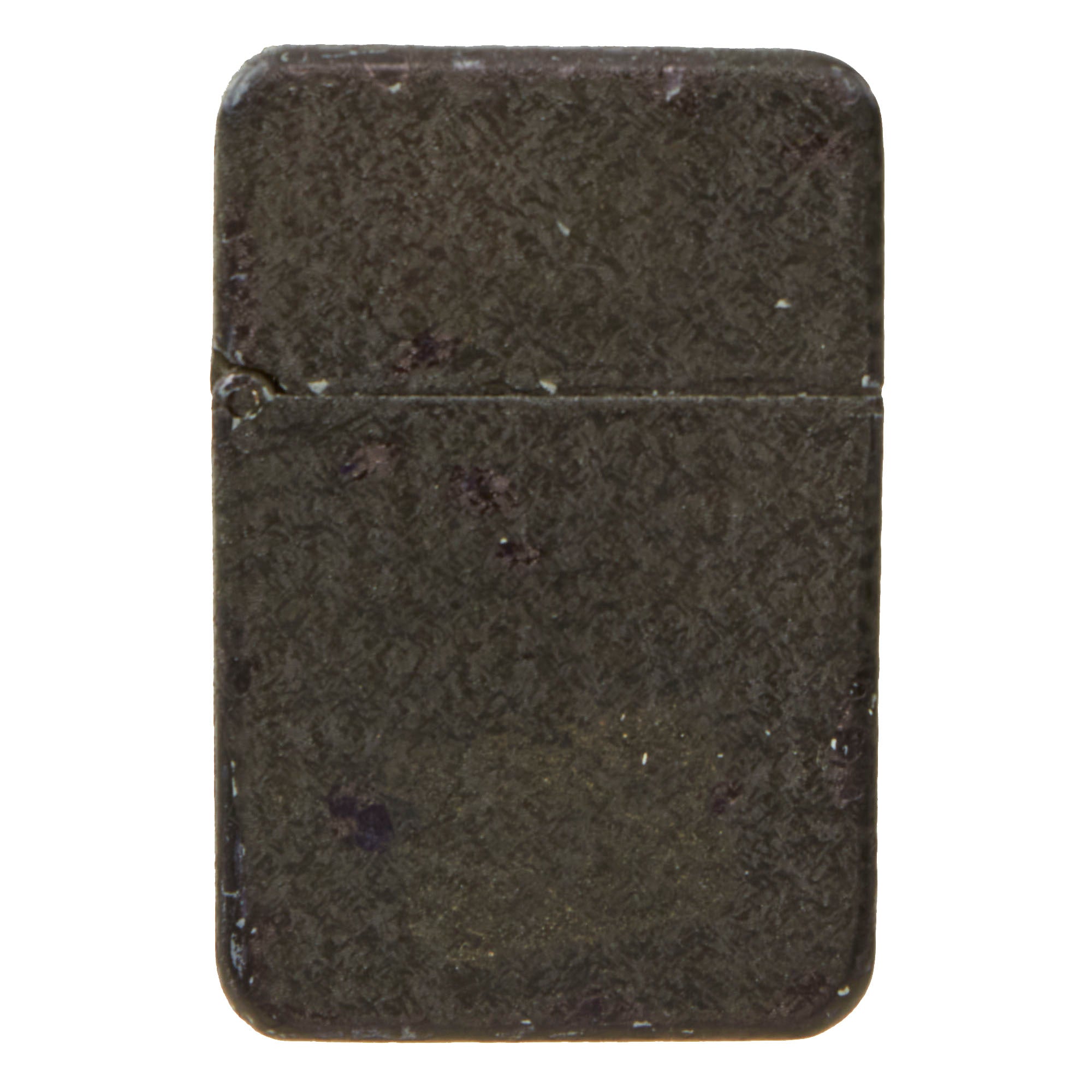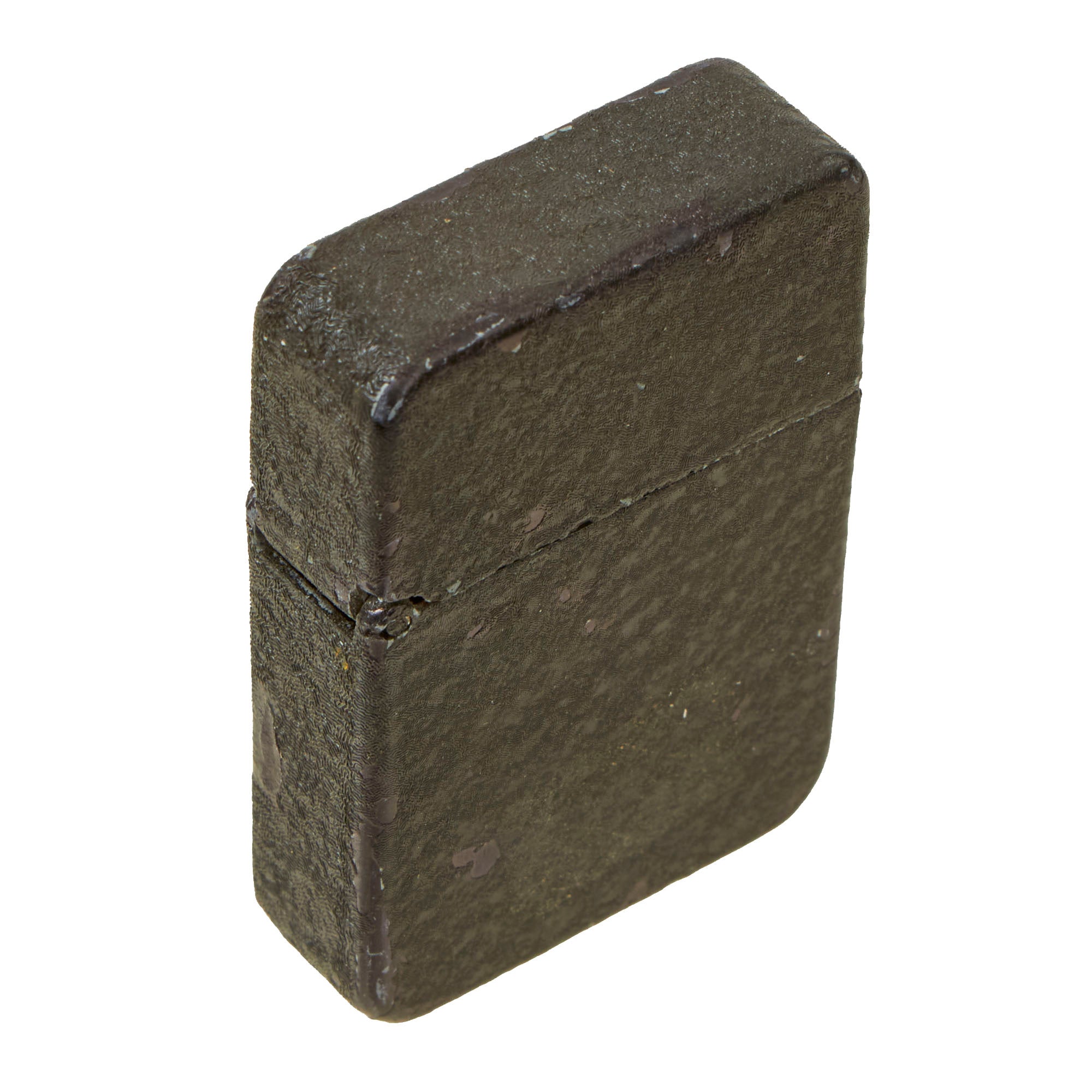 This lighter is a nice example of a WWII Zippo style flip top lighter in the desirable black crinkle finish. The lighter shows service use and does not currently function, the wheel not giving any resistance when spun. Could likely be restored for use.