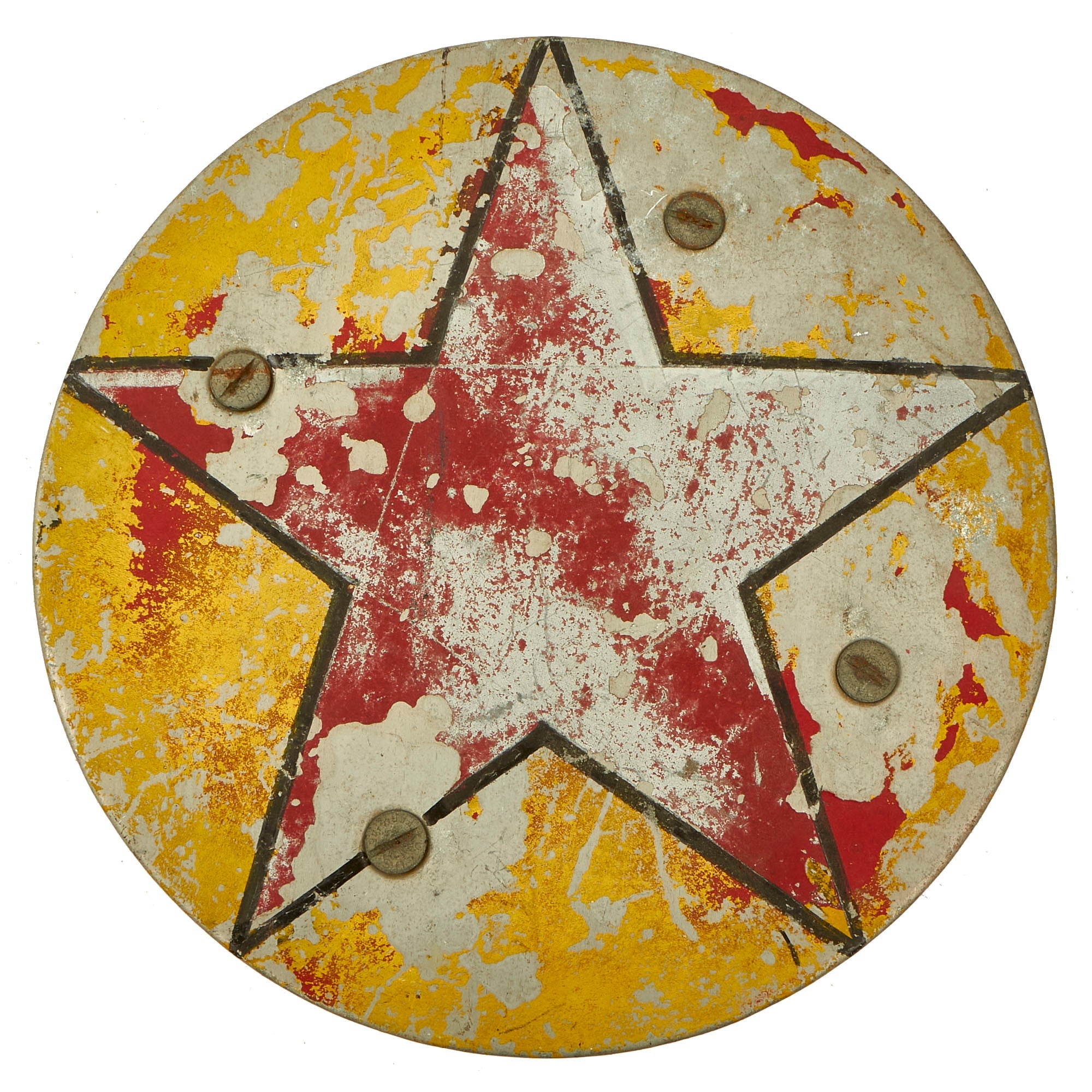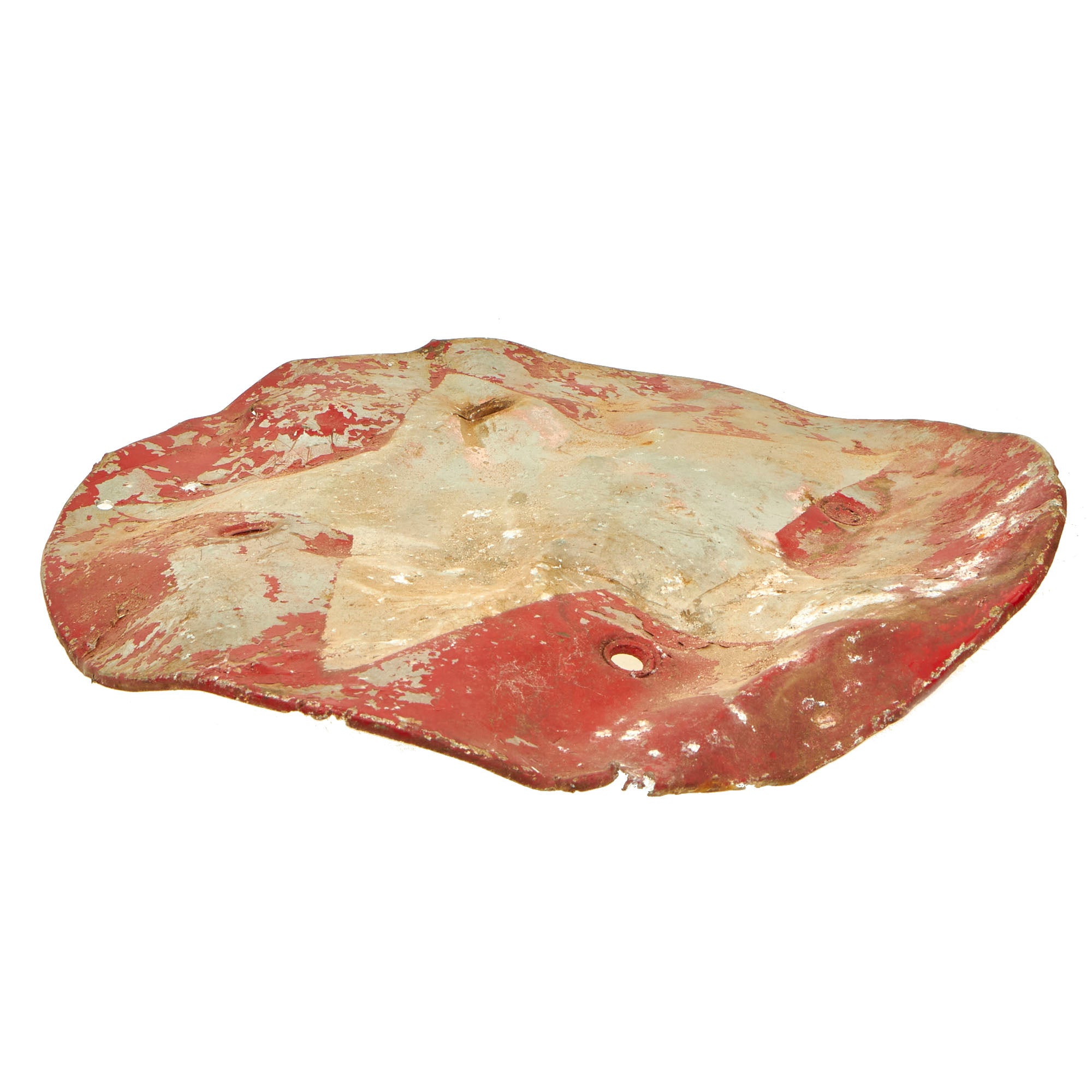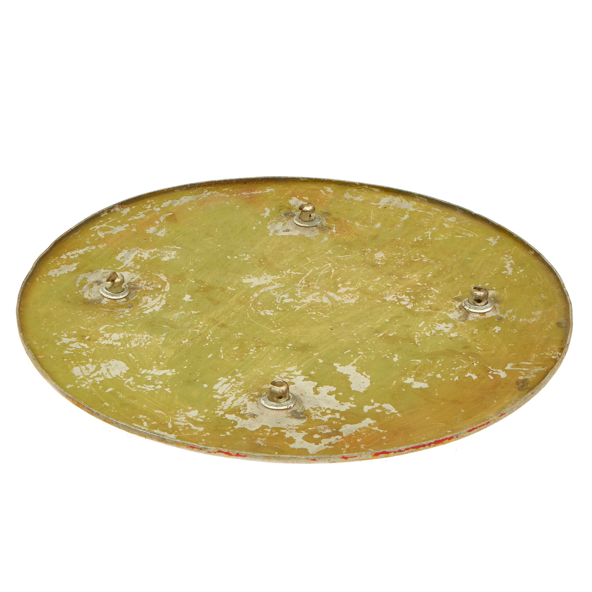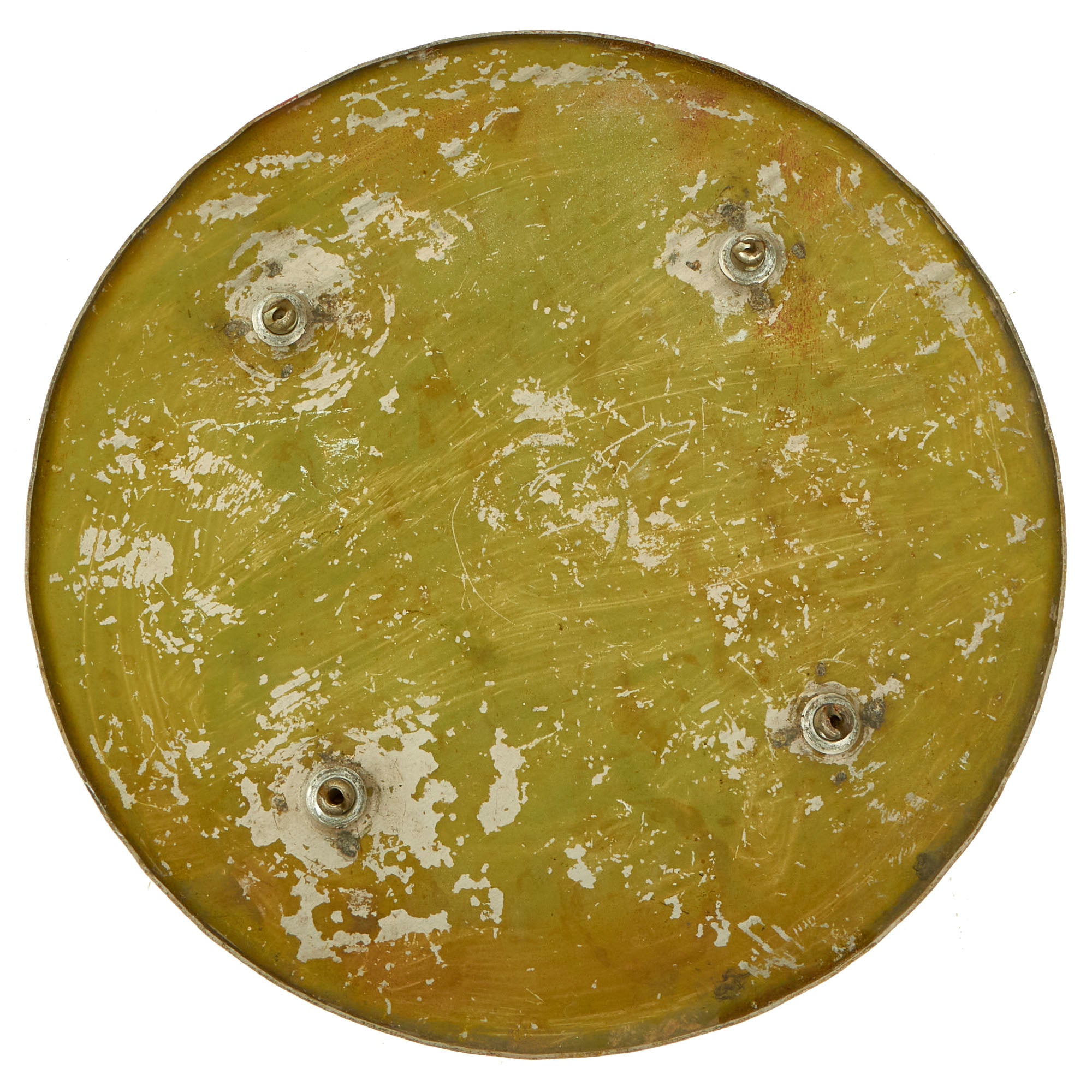 These two aluminum discs are essentially “hubcaps” for the Stearman Aircraft models. There are two covers in the lot with much of the original paint retained. Both have a diameter of approximately 12” though one of the caps does look larger due to its deformities.