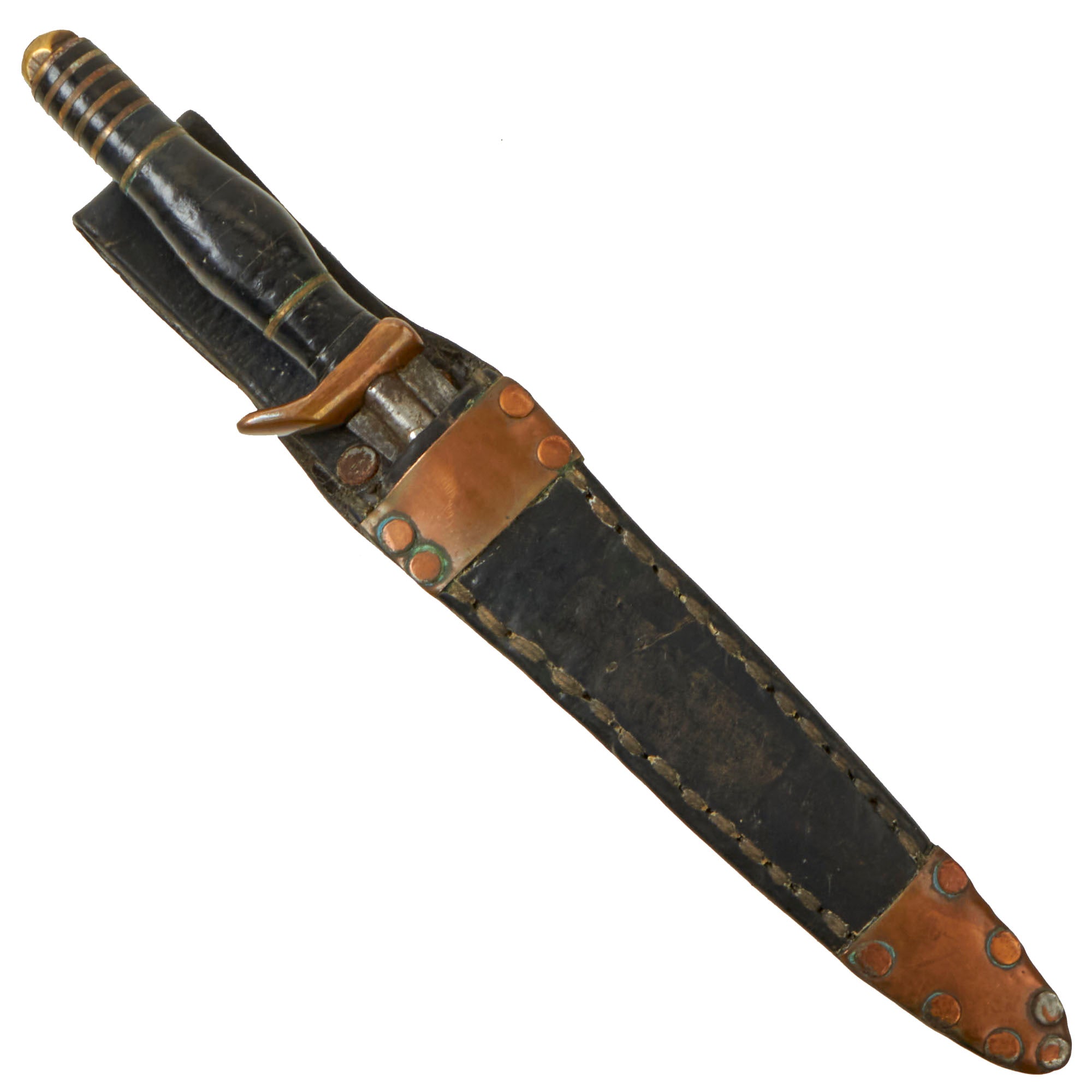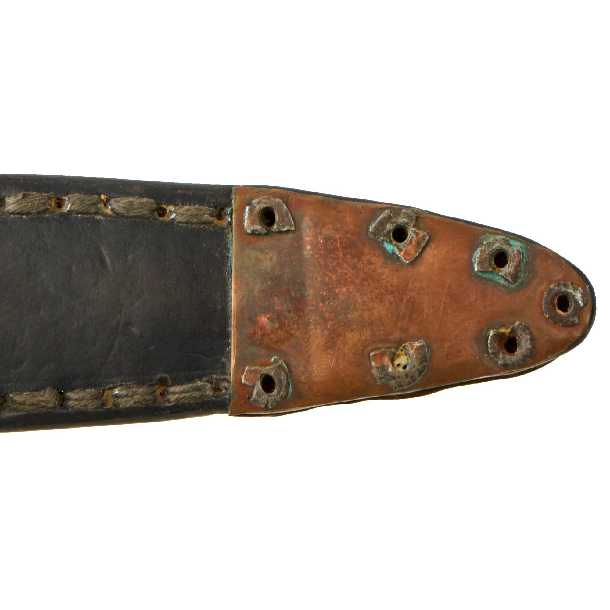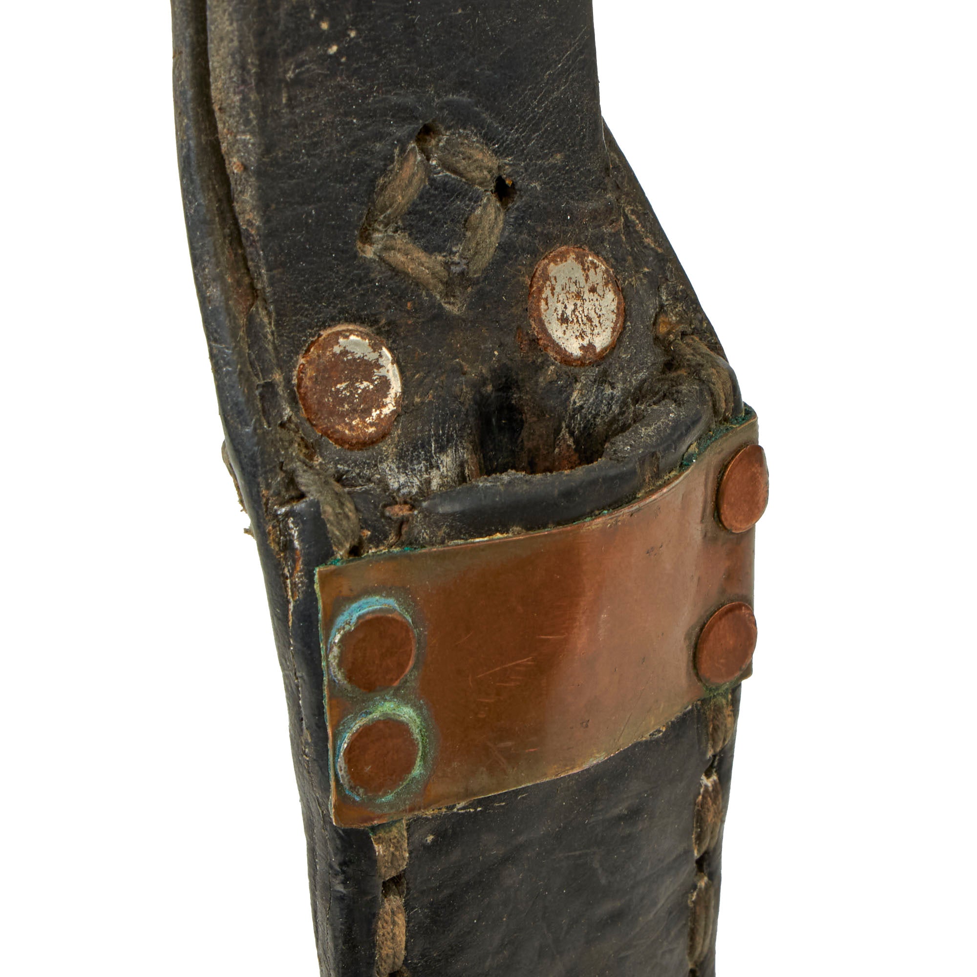 The original leather scabbard appears to be a period made for the knife. It is in lovely condition and still rather serviceable.