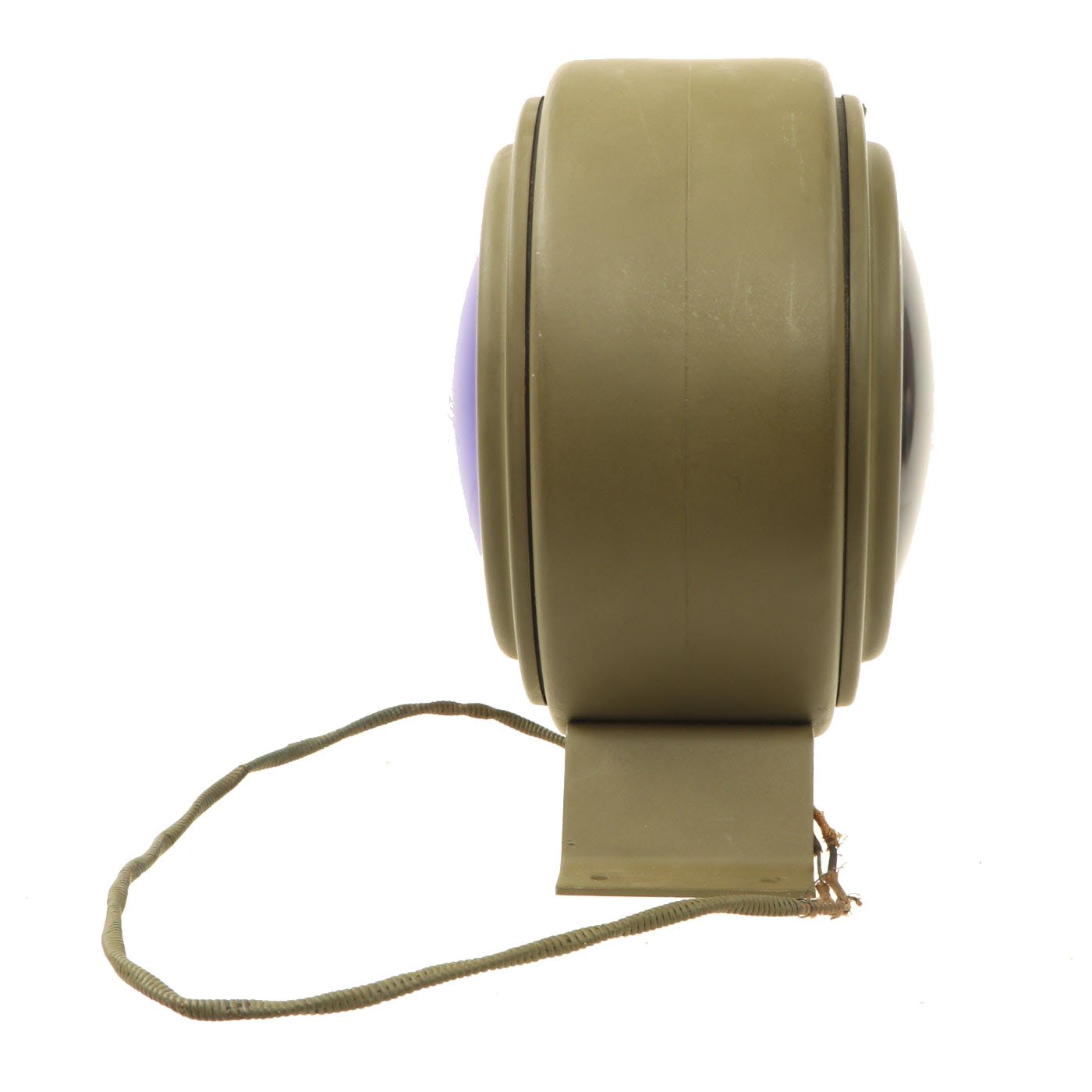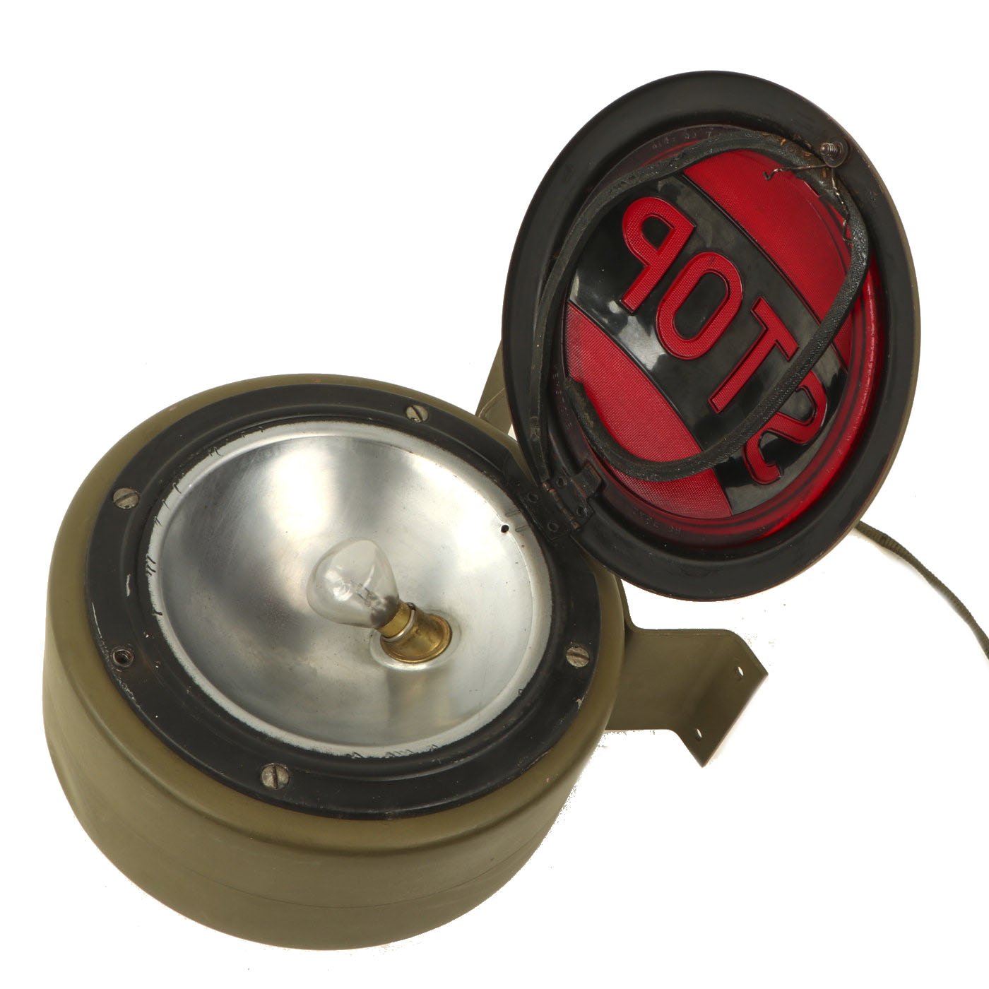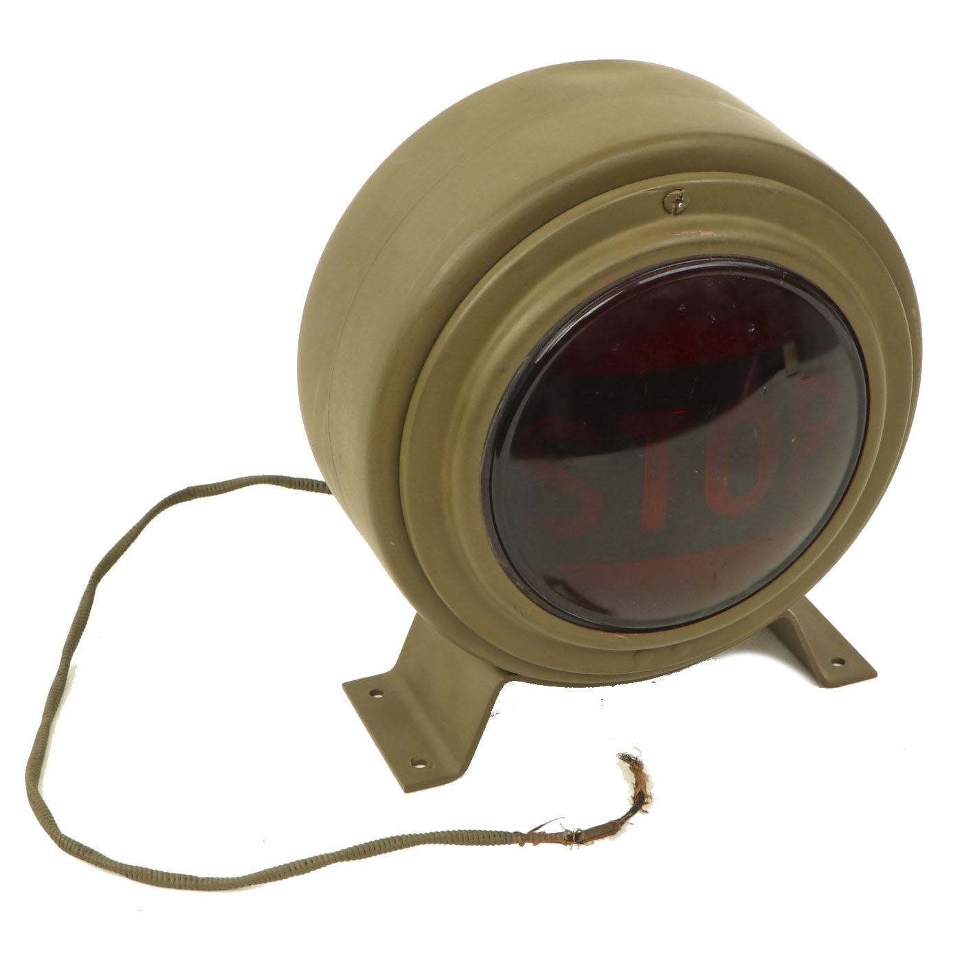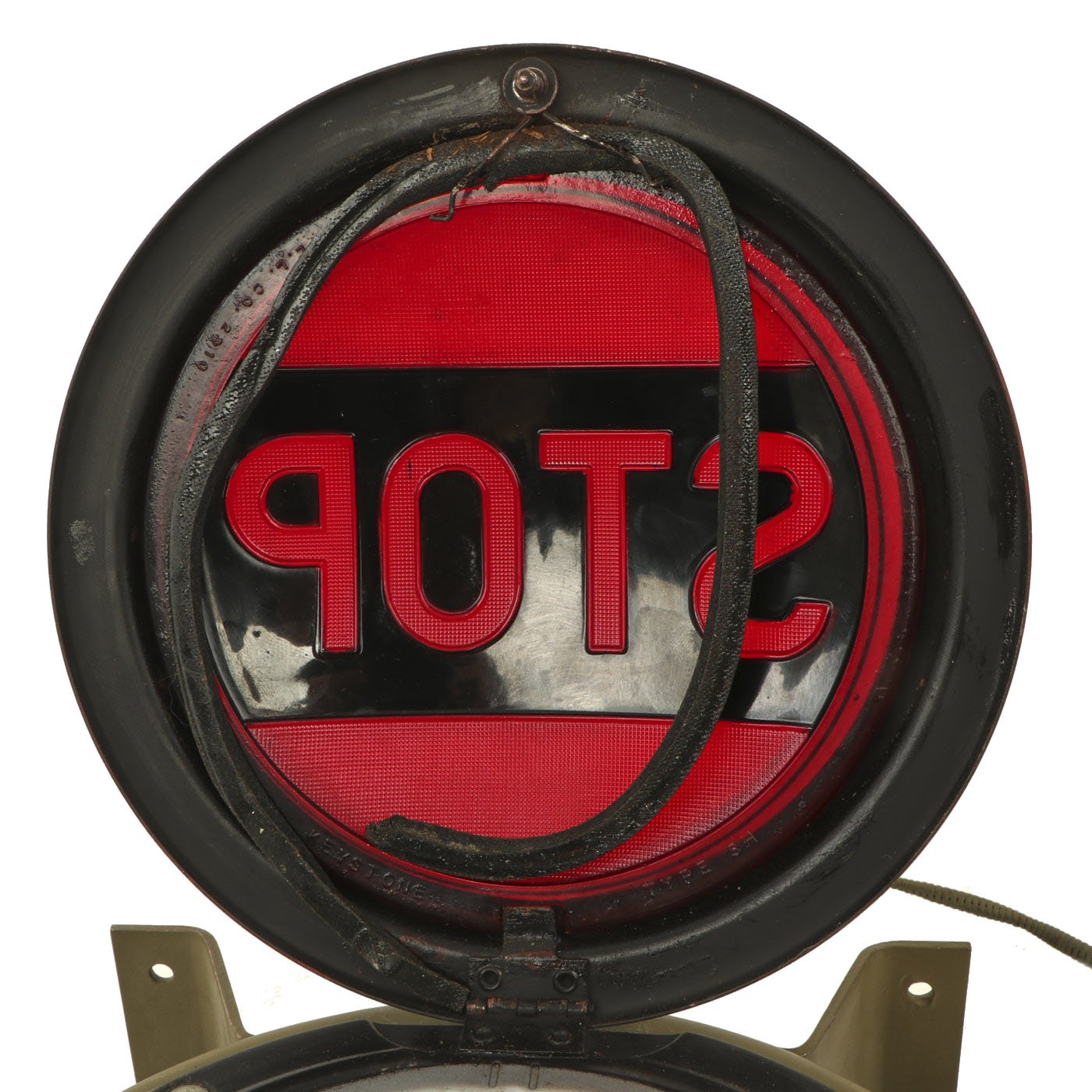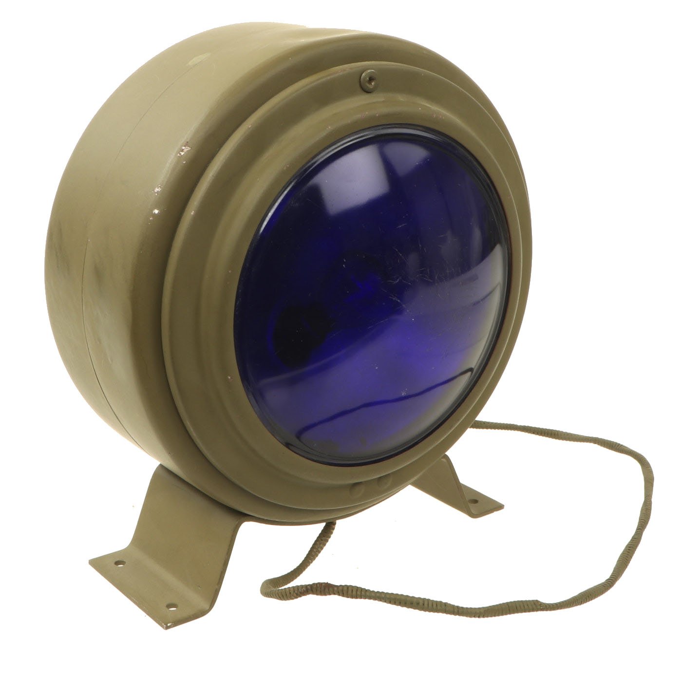 Original Item: Only One Available. We acquired this with a large Army Air Force collection and were told this was a runway airfield light. However, after further research we think it was more likely a flashing emergency vehicle stop light, perhaps for a military Ambulance, medical jeep, or firetruck. The light has a diameter 9". One side features a red glass lens with STOP etched to the interior, the other side has a plain blue glass lens. The red lens is marked "Keystone Type SH". Inside the light are two Tung-Sol flasher units, indicating that this light was designed to flash. There is a steel frame mount to the bottom of the instrument. Based on the wiring and internals this light appears to be from the World War Two era or perhaps just after the was until the 1950s and Korea. Light is offered in very good condition, but we do not know if it still functions. Undoubtedly can be made to work either as is or with replacement parts and a skilled electrician.