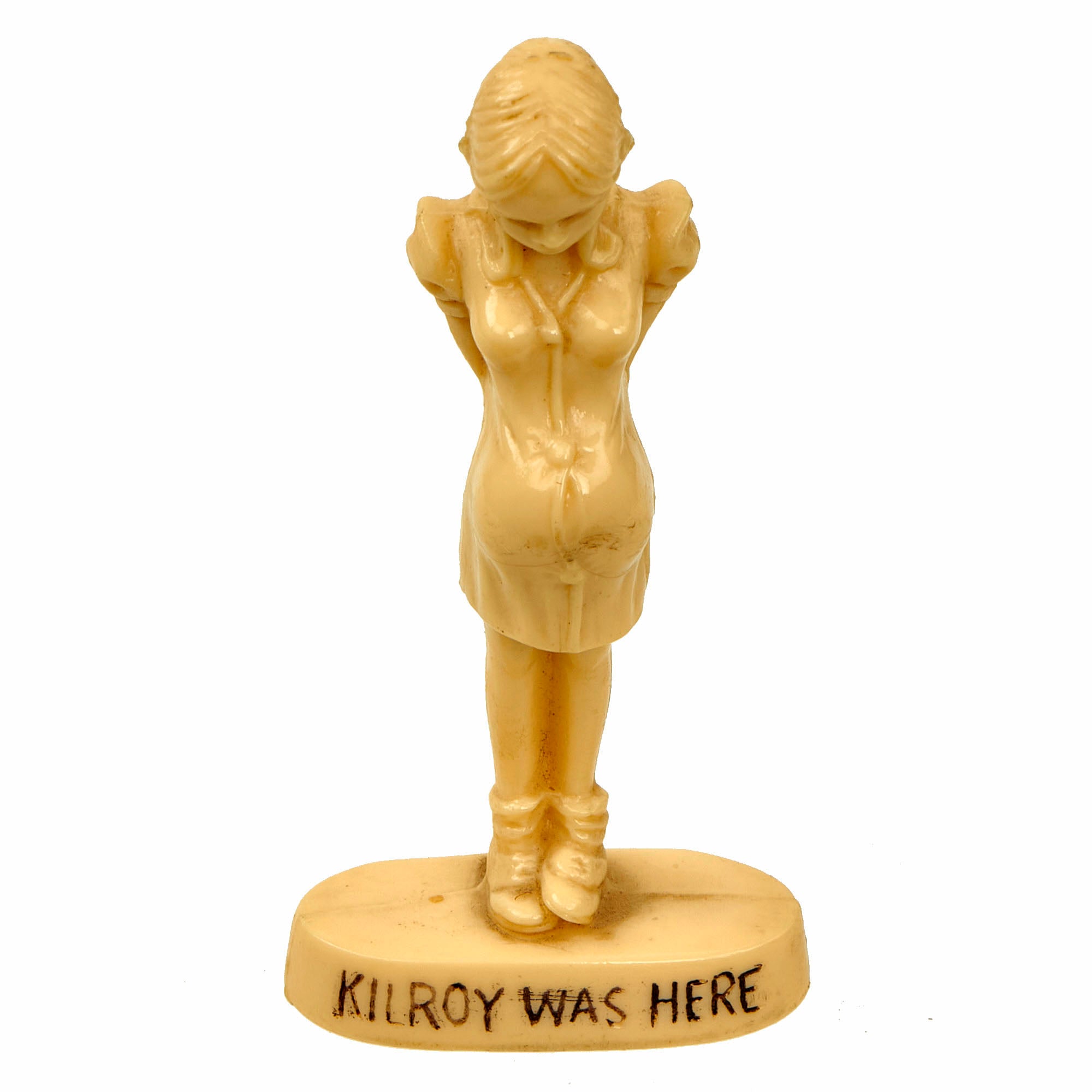 Original Item: Only One Available. This is a well preserved example of a WWII era novelty gift attributed to Hartland Plastics. Hartland Plastics, best known for its figurines of major league baseball players, is believed to have made some of the pregnant Kilroy figurines.